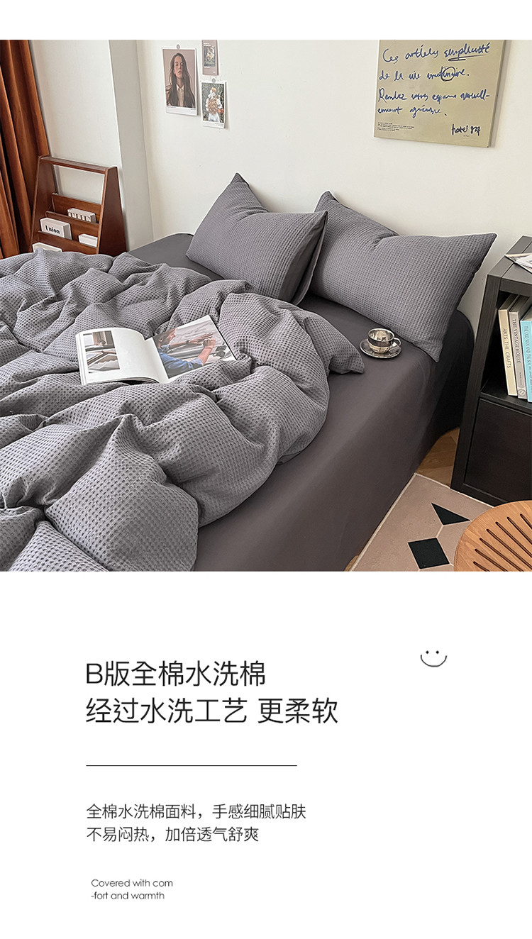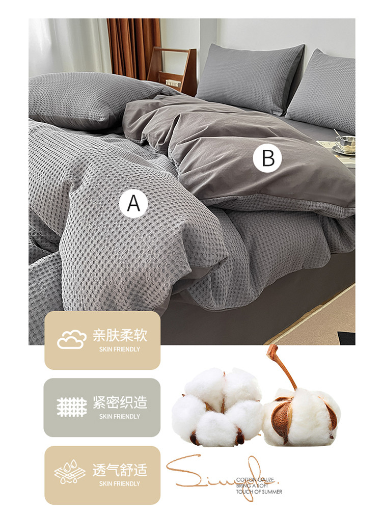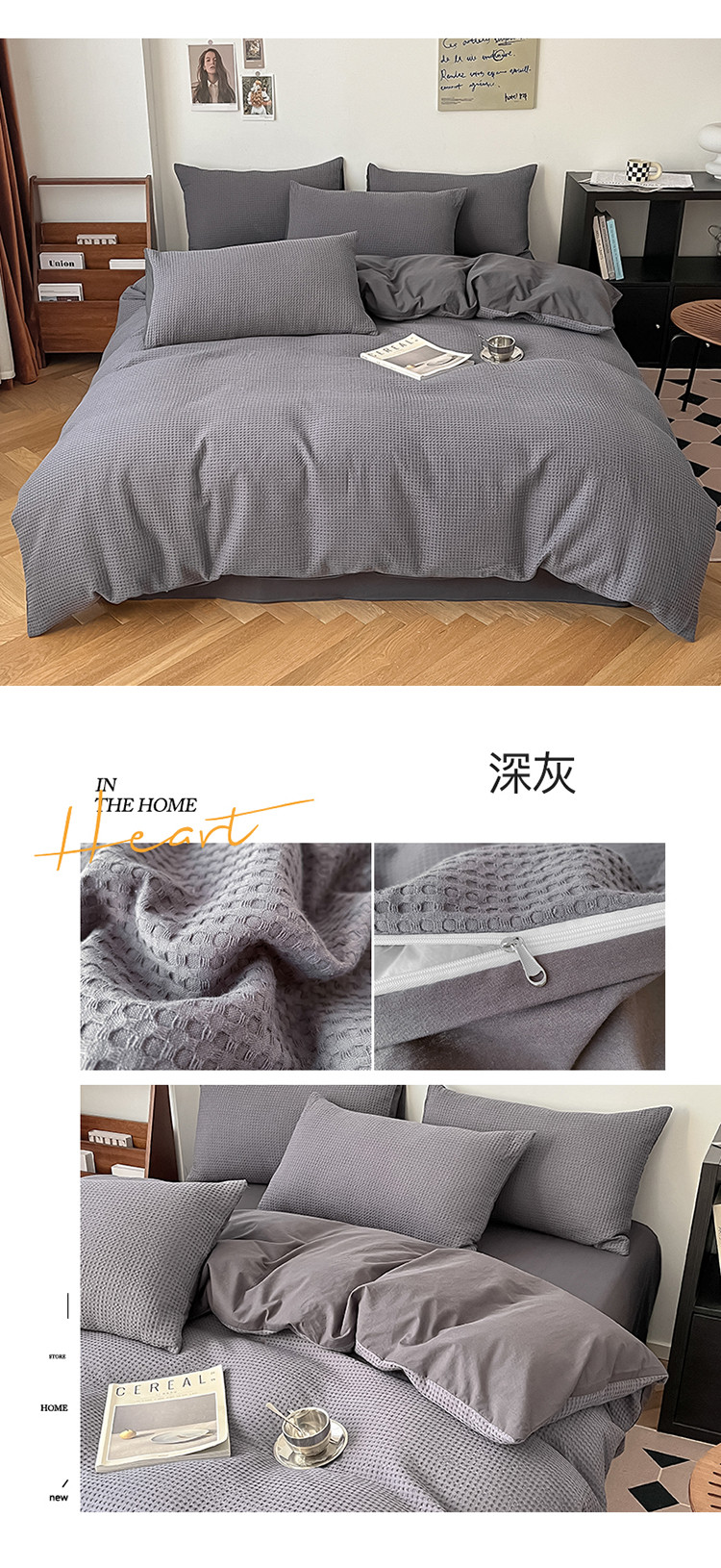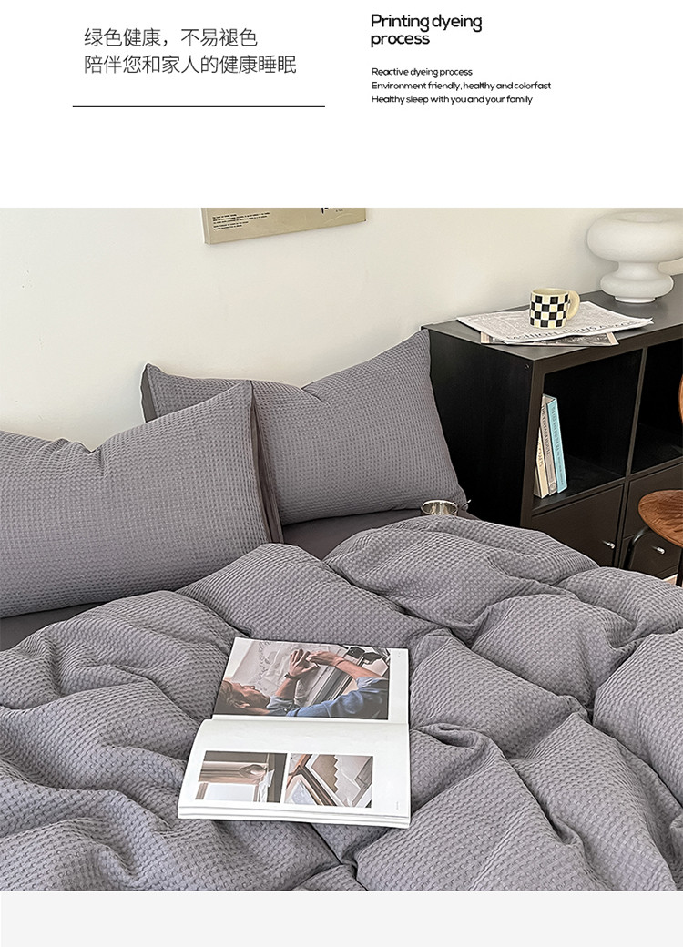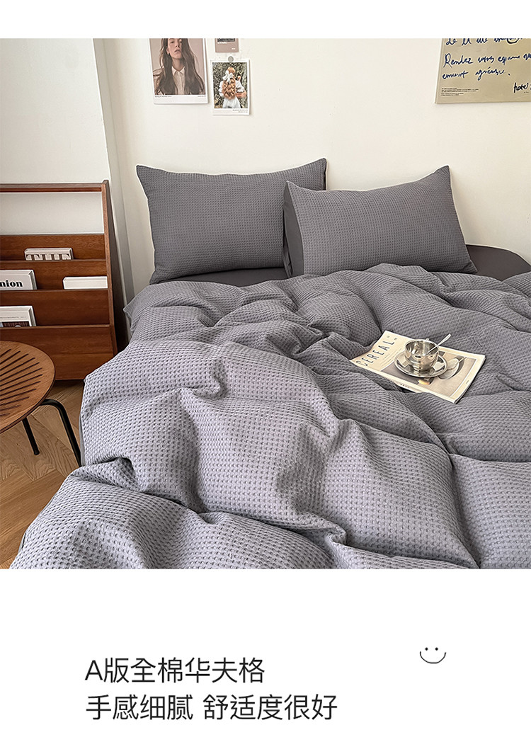 雅居纺家纺 2022新款全棉华夫格普通款四件套 深灰