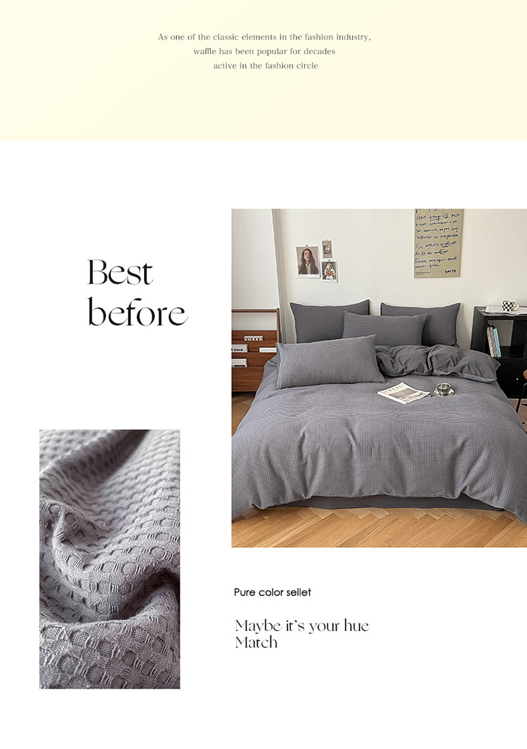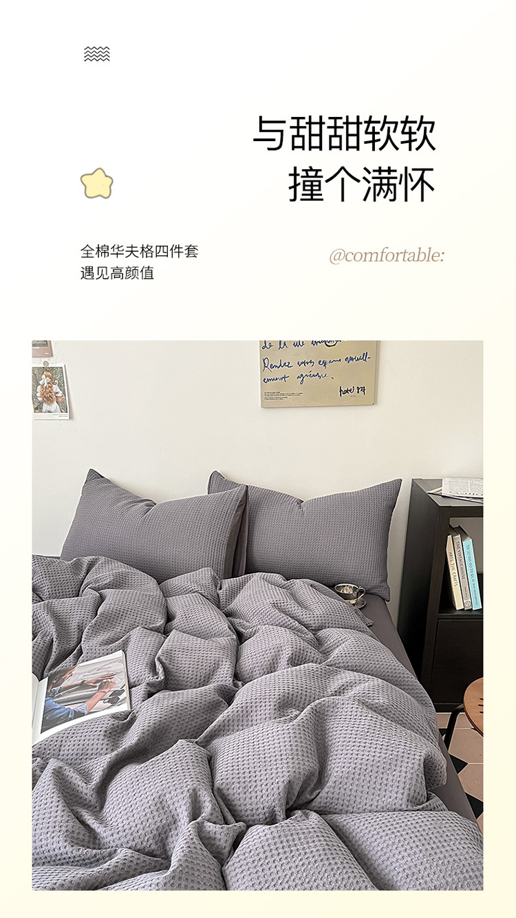 商品名称:雅居纺家纺 2022新款全棉华夫格普通款四件套 深灰
