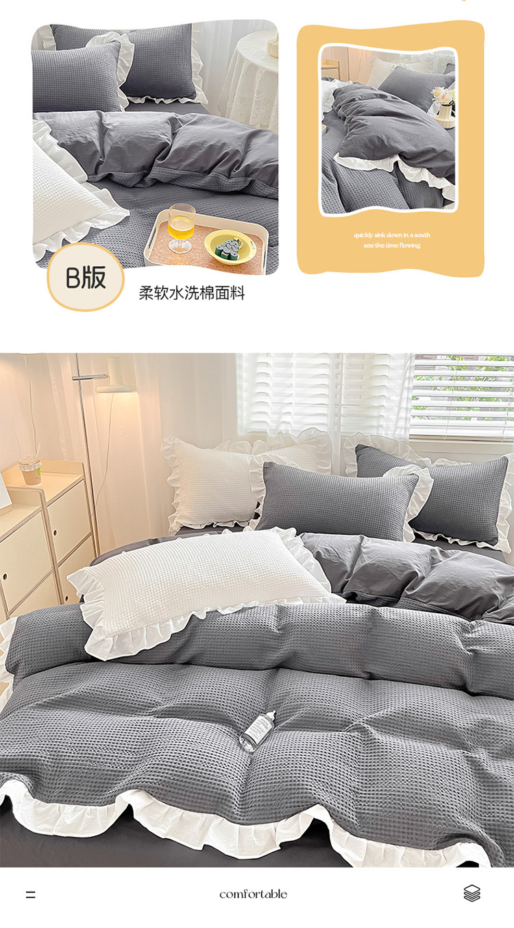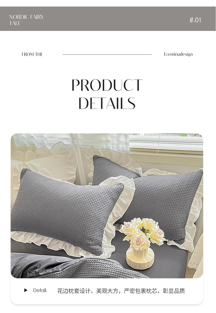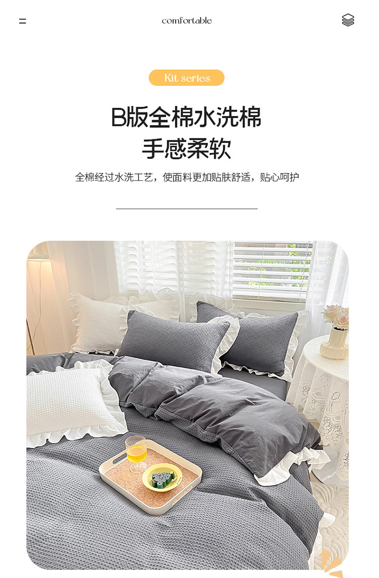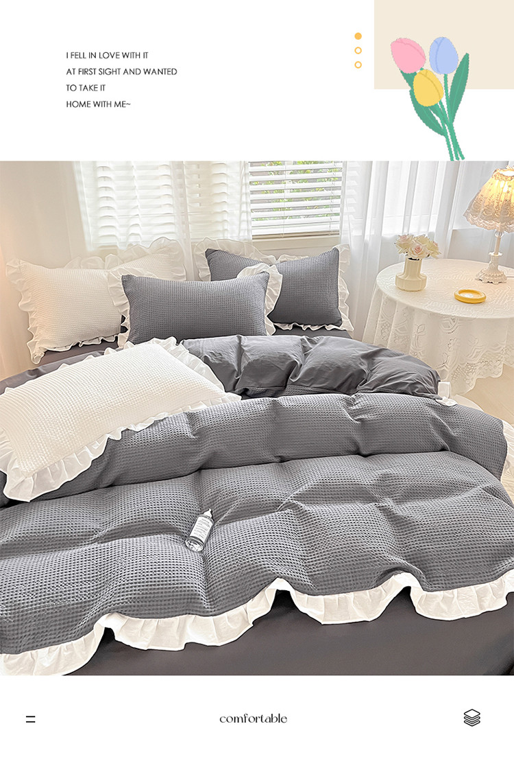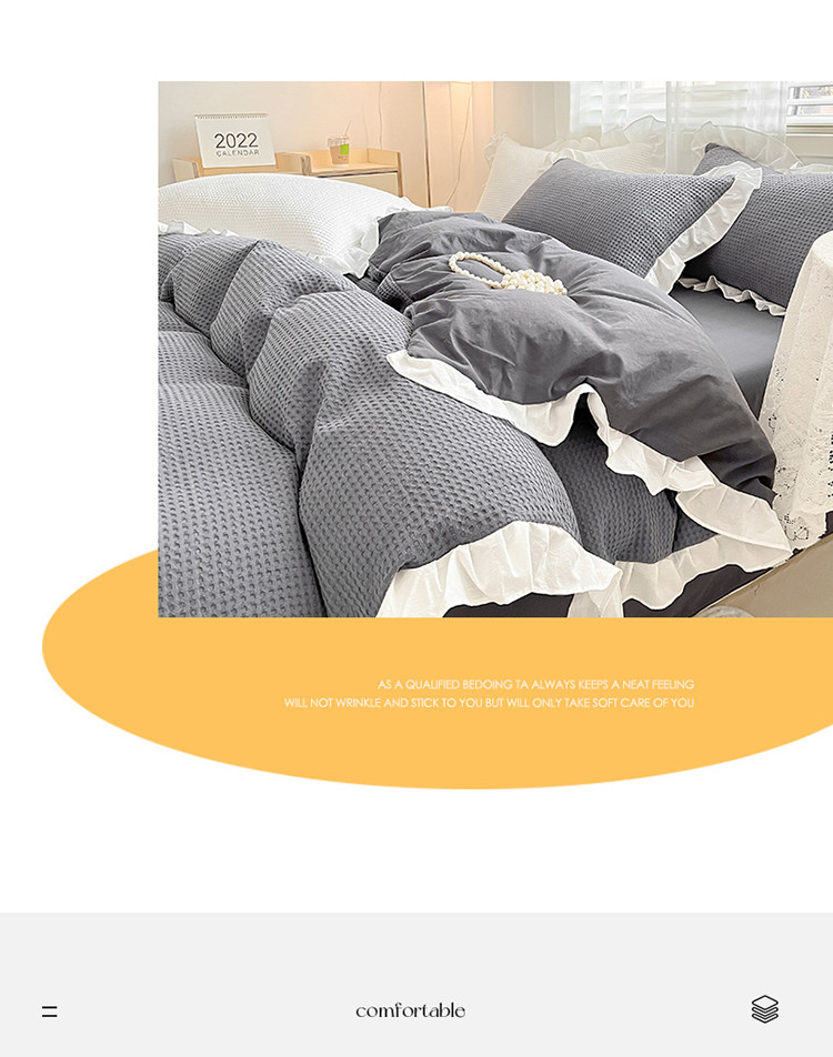 雅居纺家纺 2022新款华夫格花边款四件套 优雅灰