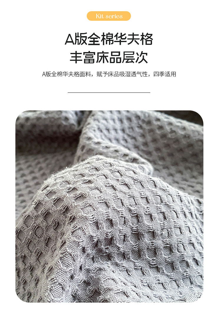 (总)雅居纺家纺 2022新款全棉华夫格普通款四件套,焦糖,米驼,奶油白,柔粉,深灰,雾蓝,月灰