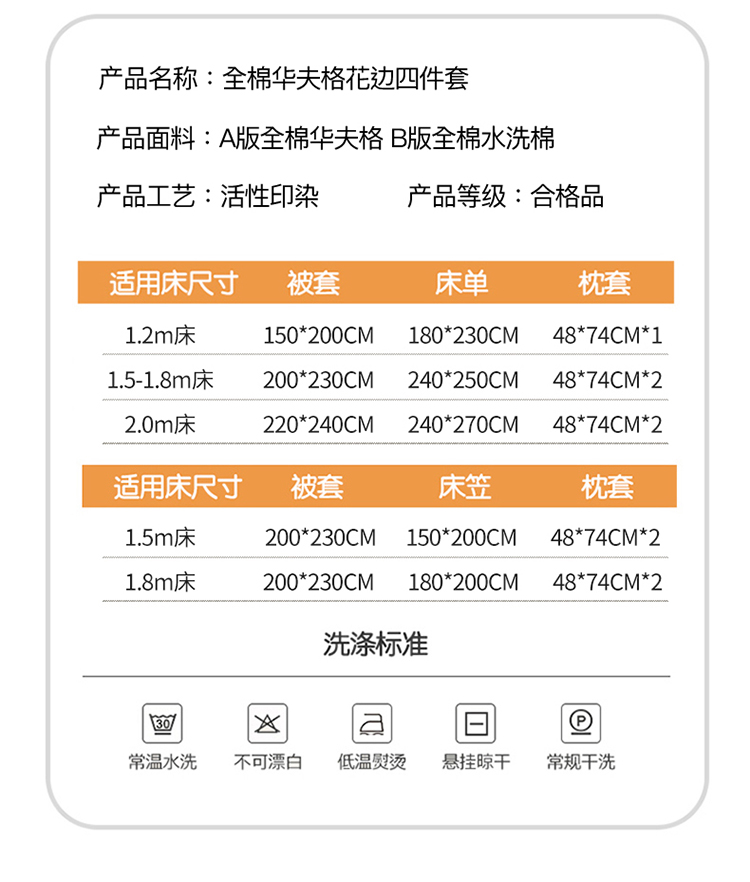 (总)雅居纺家纺 2022新款华夫格花边款四件套,梦幻蓝,橙色,纯白,米咖,浅粉,浅灰,优雅灰