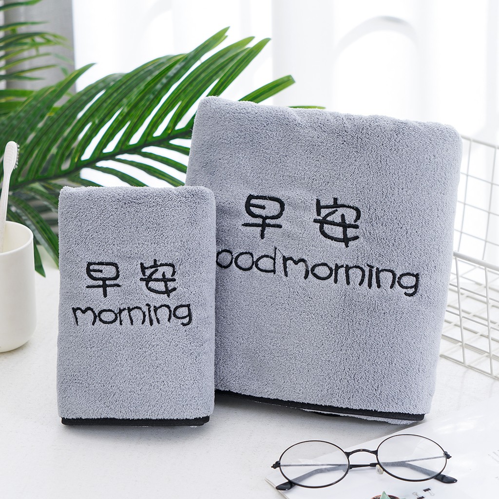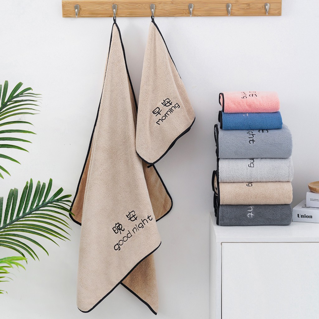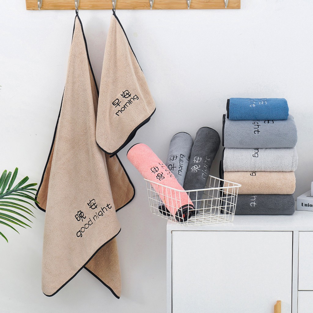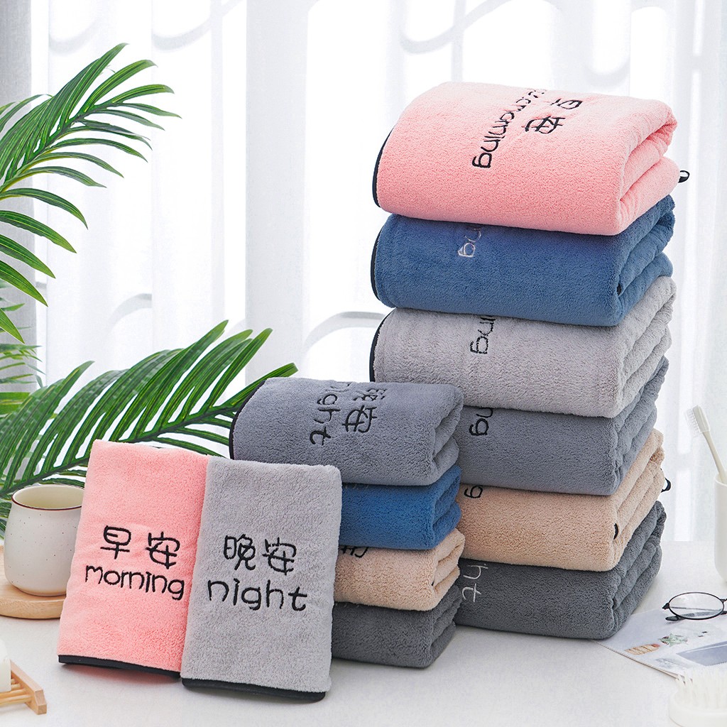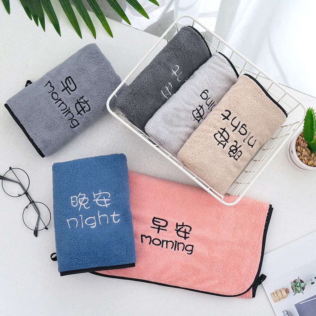 双梦毛巾 早晚绣花毛巾浴巾