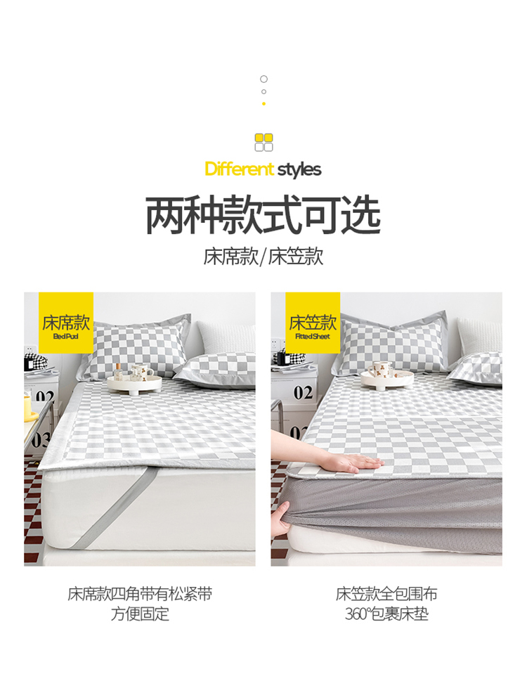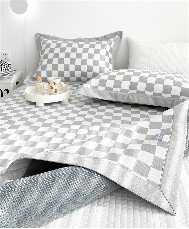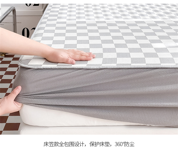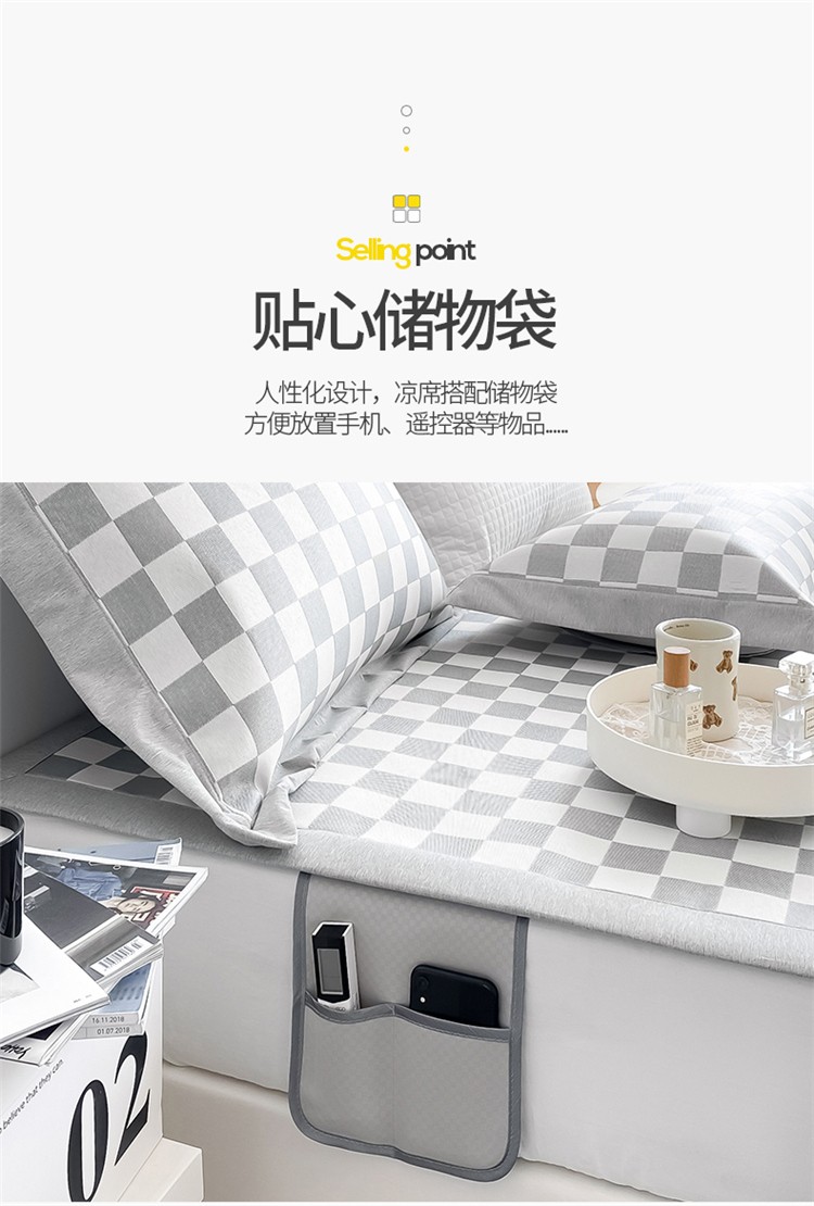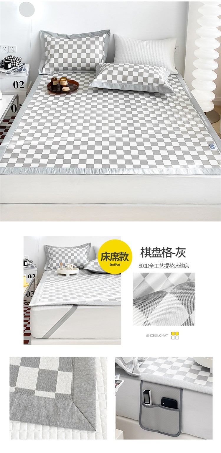 商品名称:懒猫 2022新款800D提花冰丝床席款凉席 棋盘格-灰