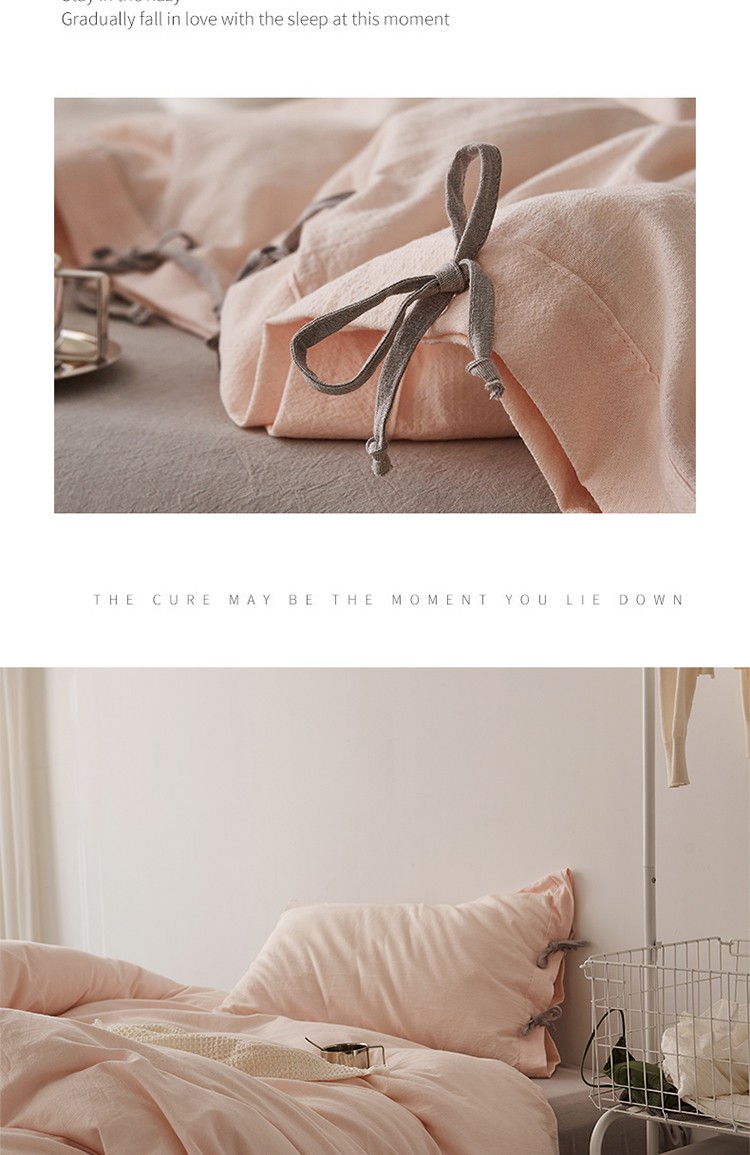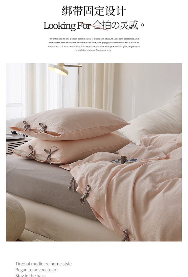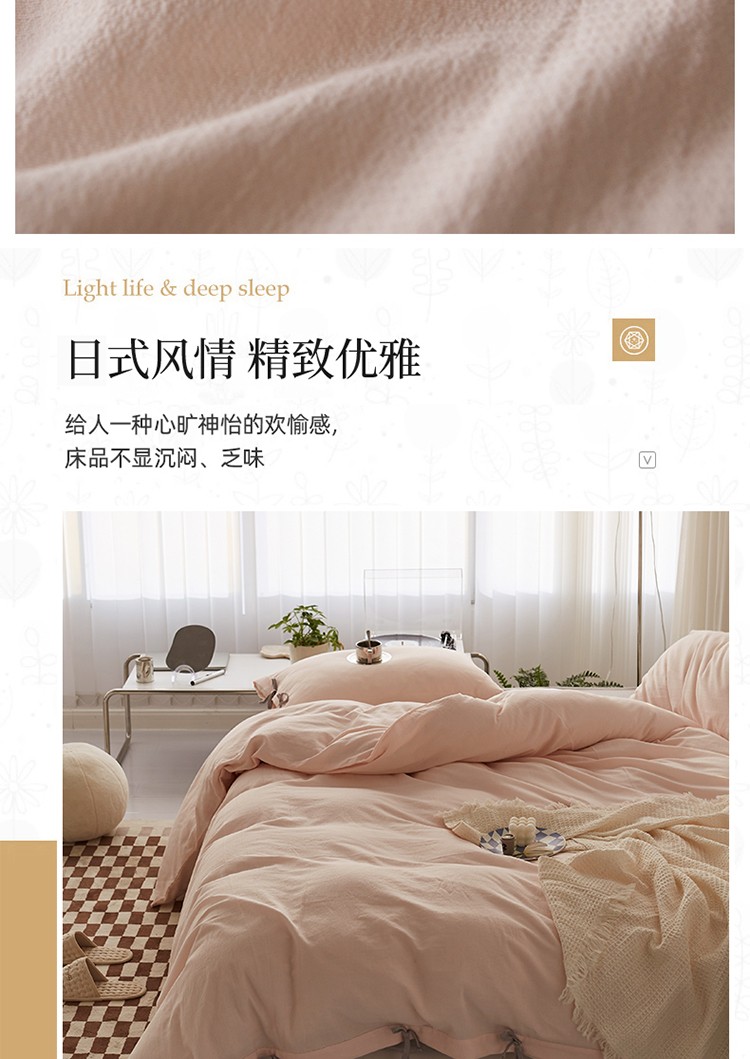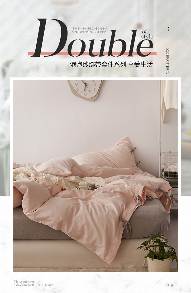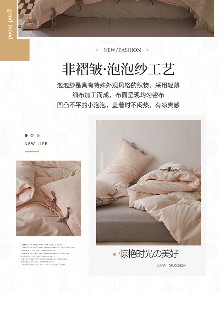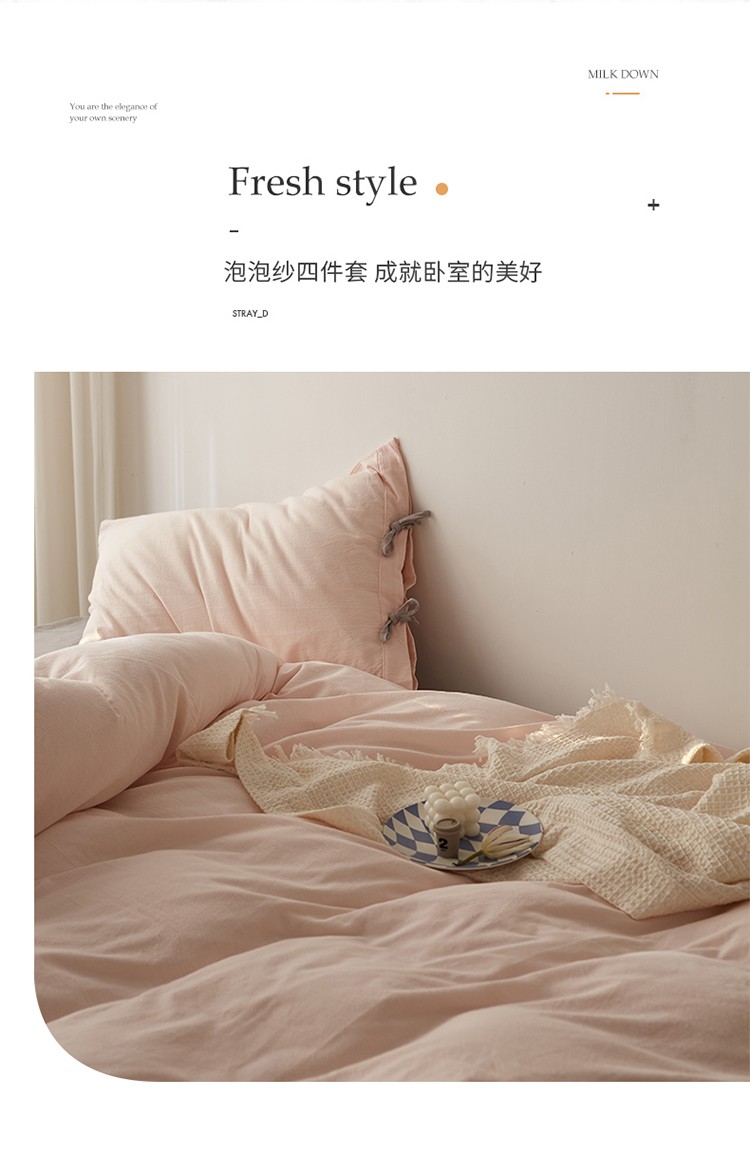 商品名称:安莱生活 2022新款春夏双股细支泡泡纱绑带款四件套 泡泡纱粉
