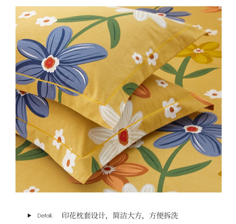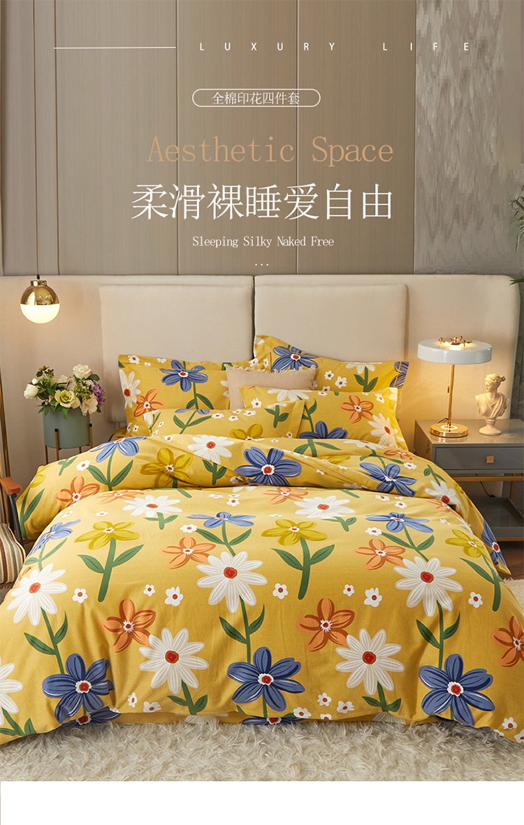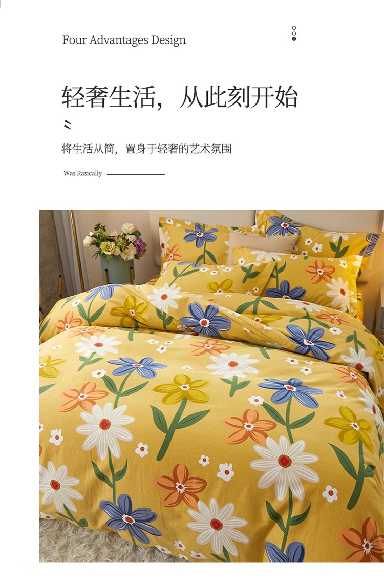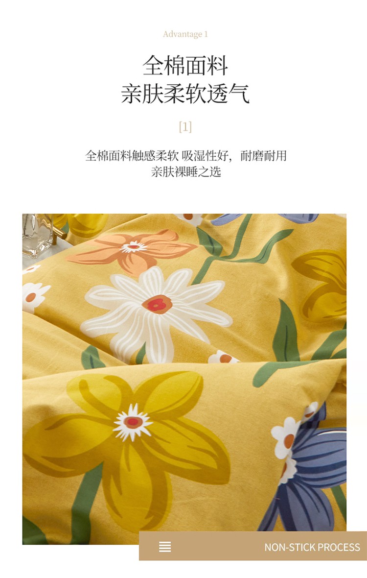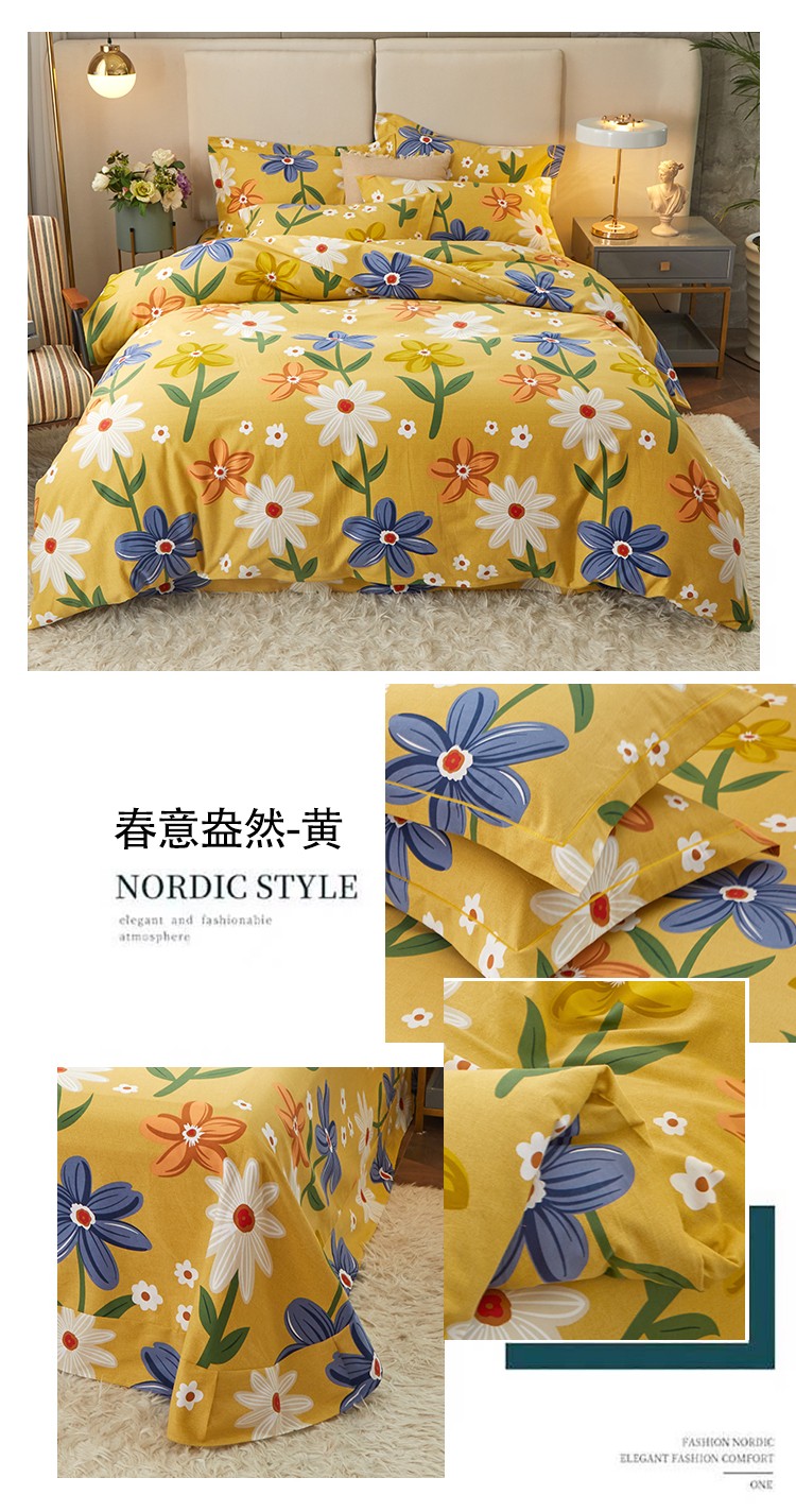 商品名称:金纱玉纺 2022新款全棉印花加厚磨毛四件套 春意盎然-黄