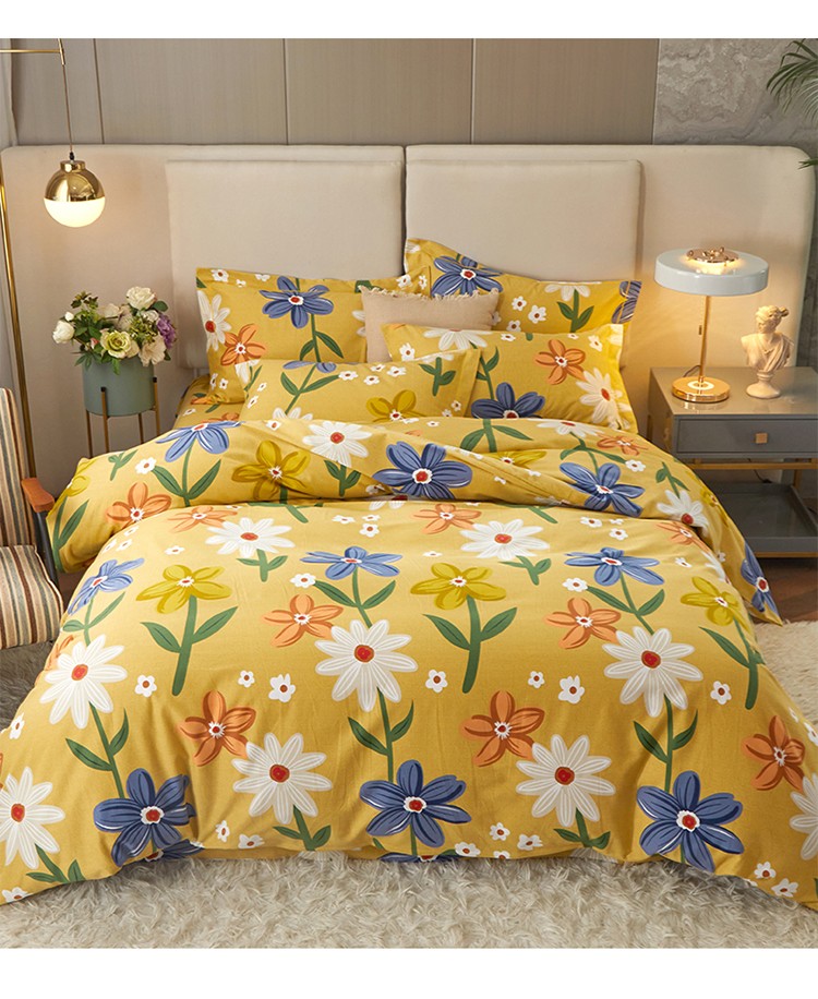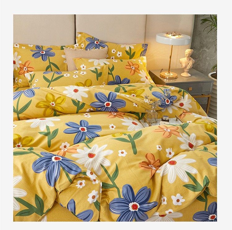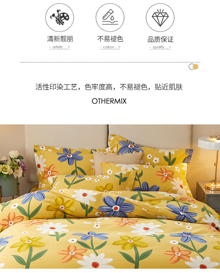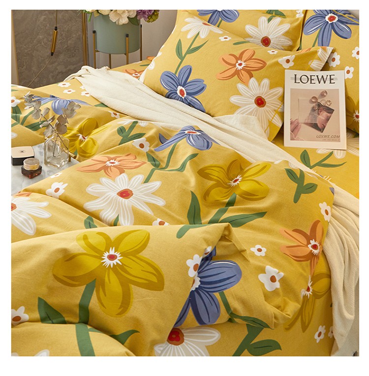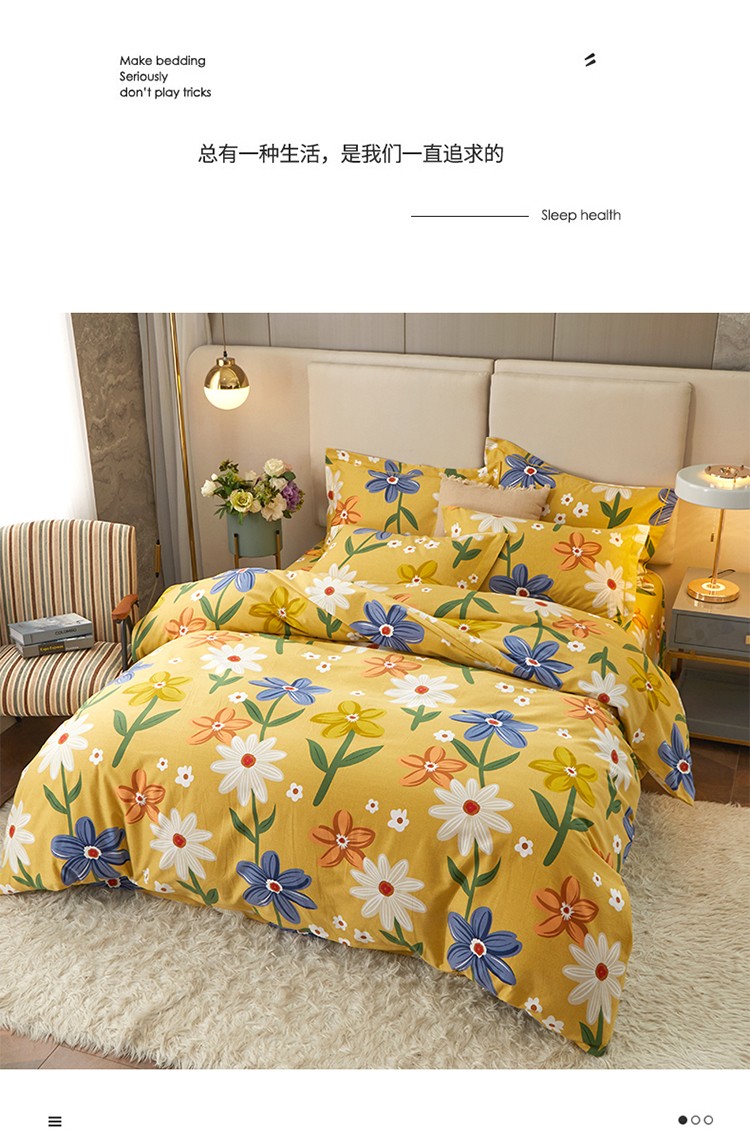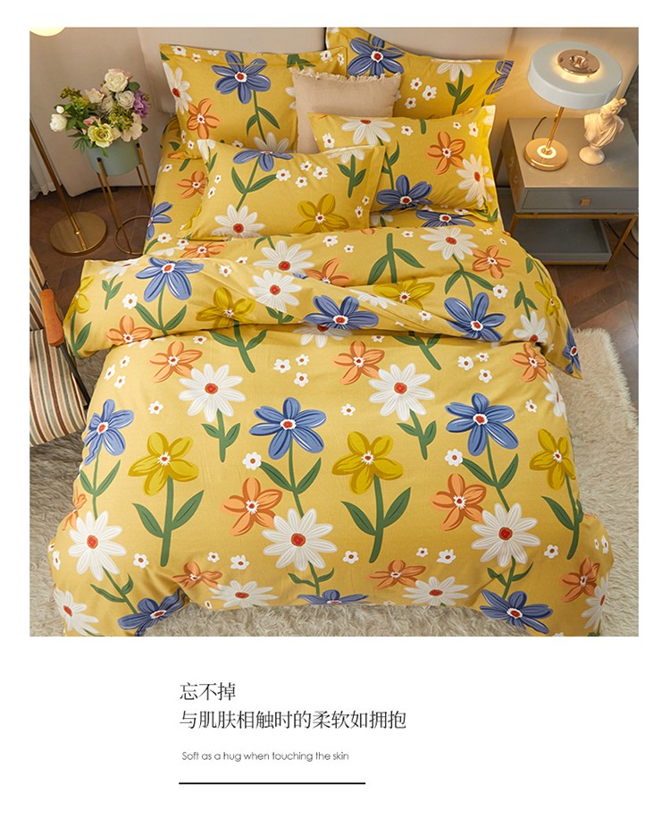 商品名称:金纱玉纺 2022新款全棉印花加厚磨毛四件套 春意盎然-黄