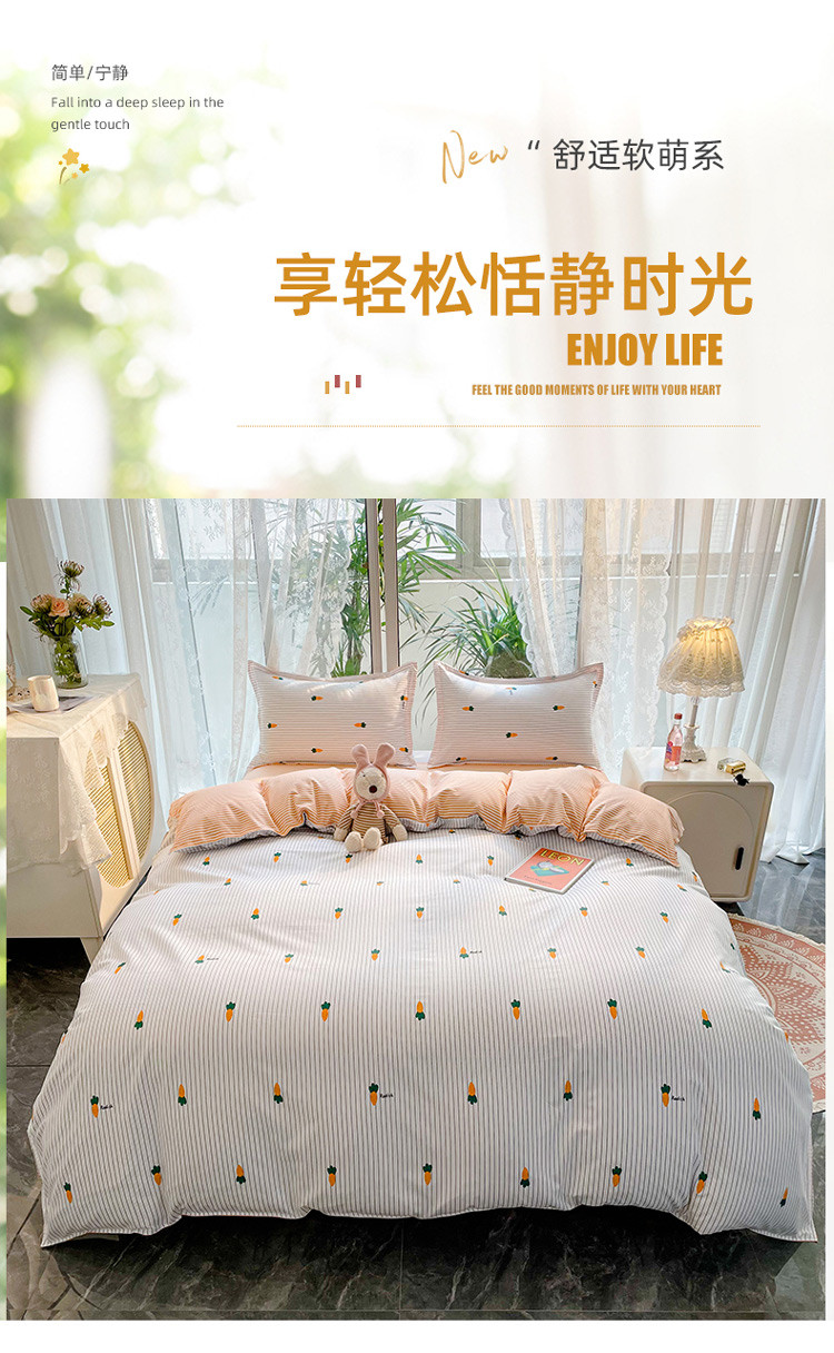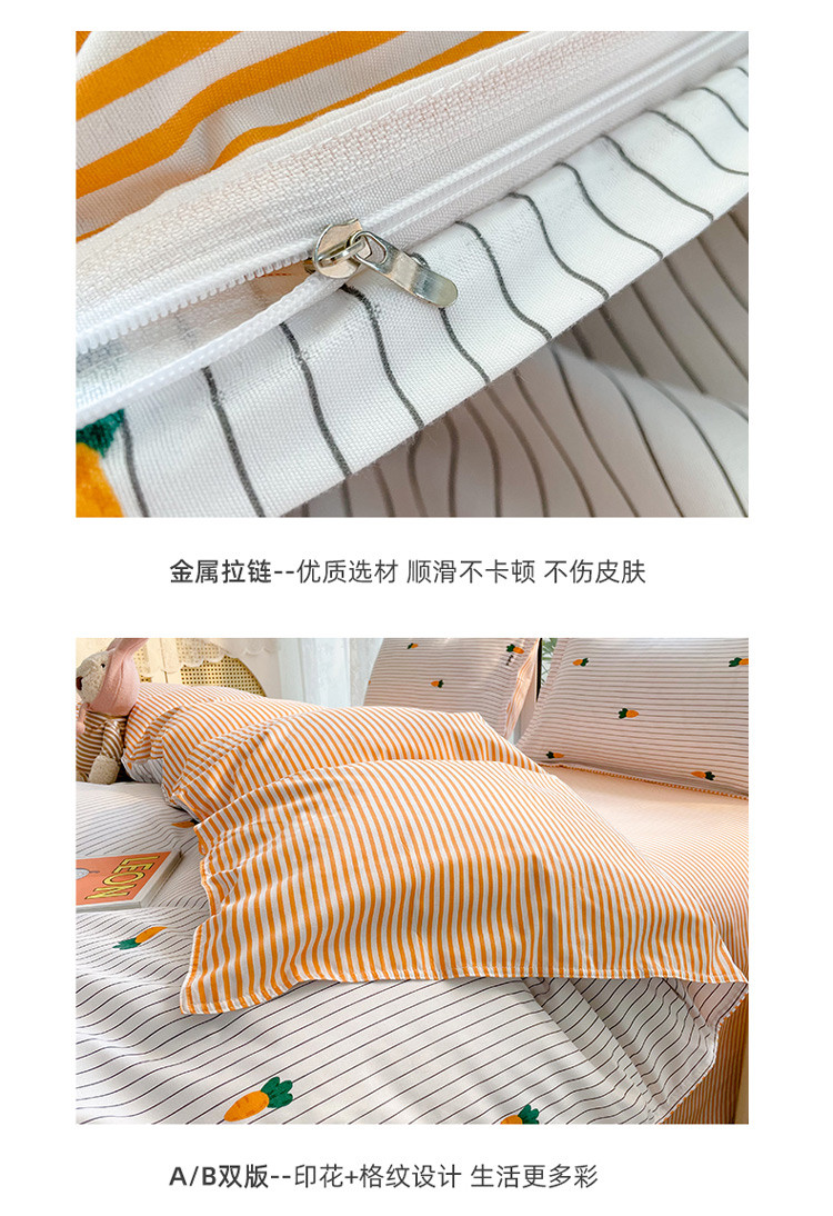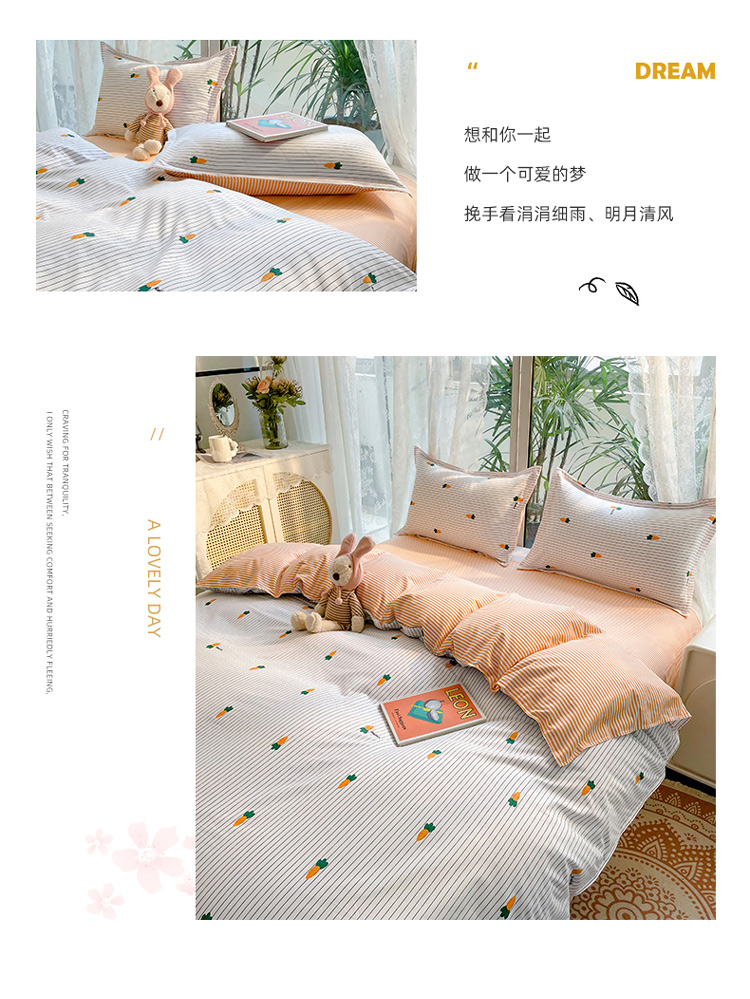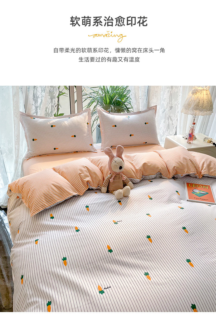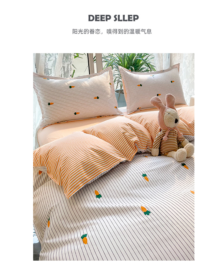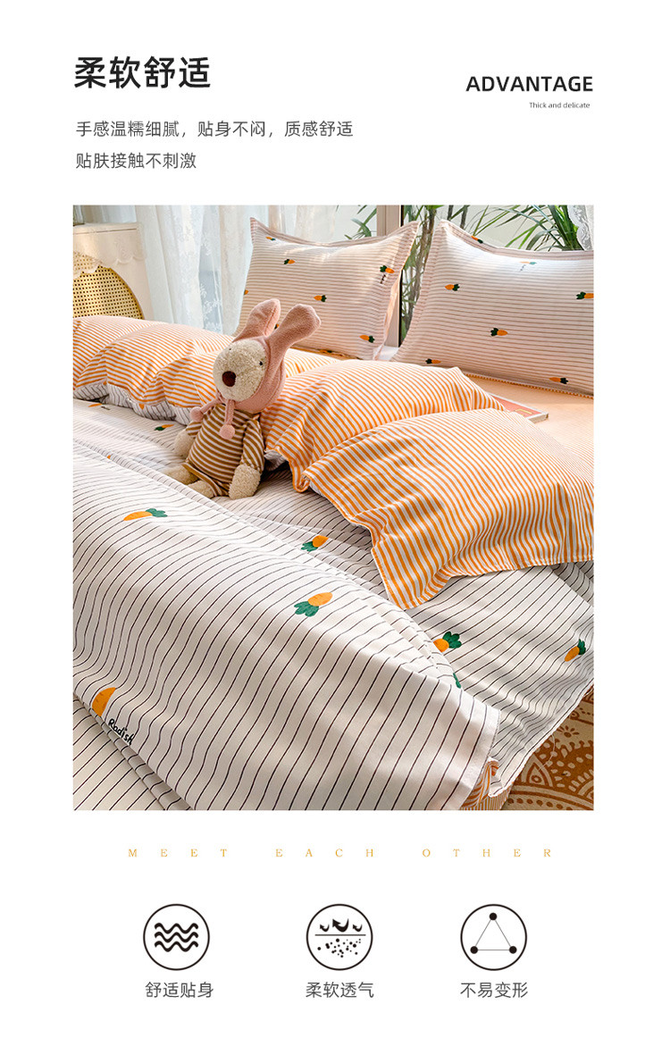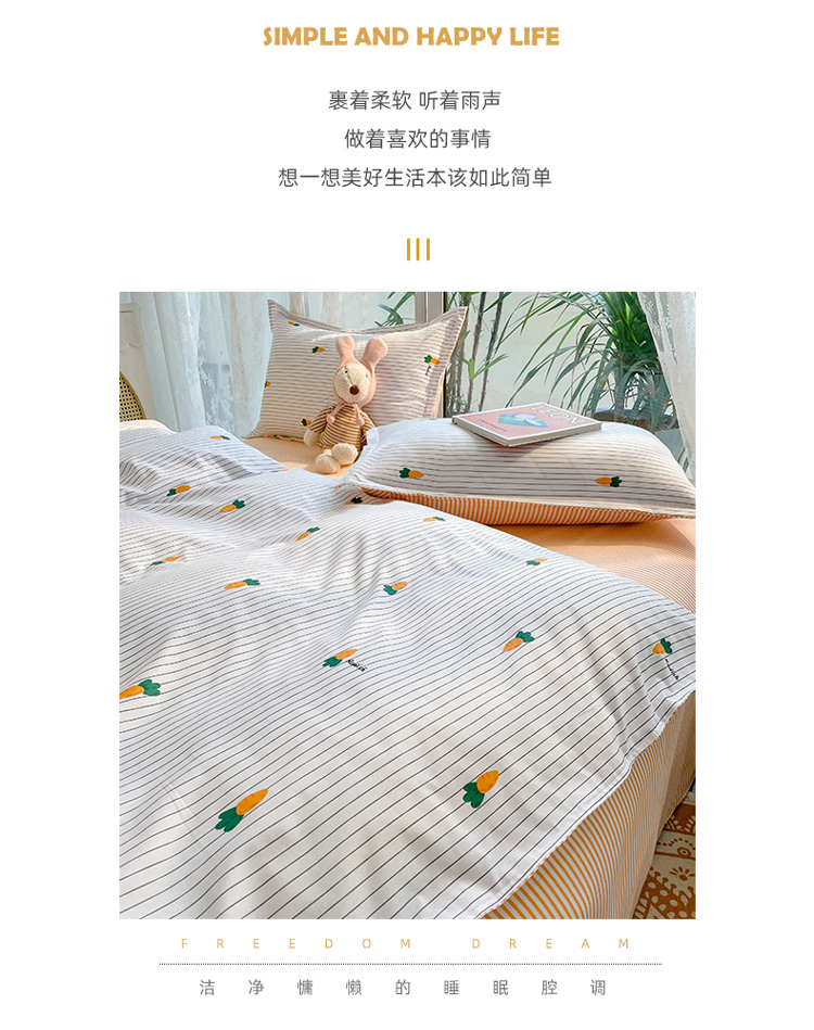 宏源家纺 2022新款亲肤棉芦荟棉四件套7月新花型 条纹小萝卜