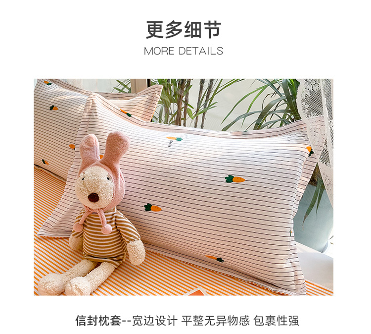 商品名称:宏源家纺 2022新款亲肤棉芦荟棉四件套7月新花型 条纹小萝卜