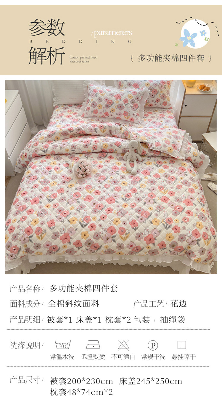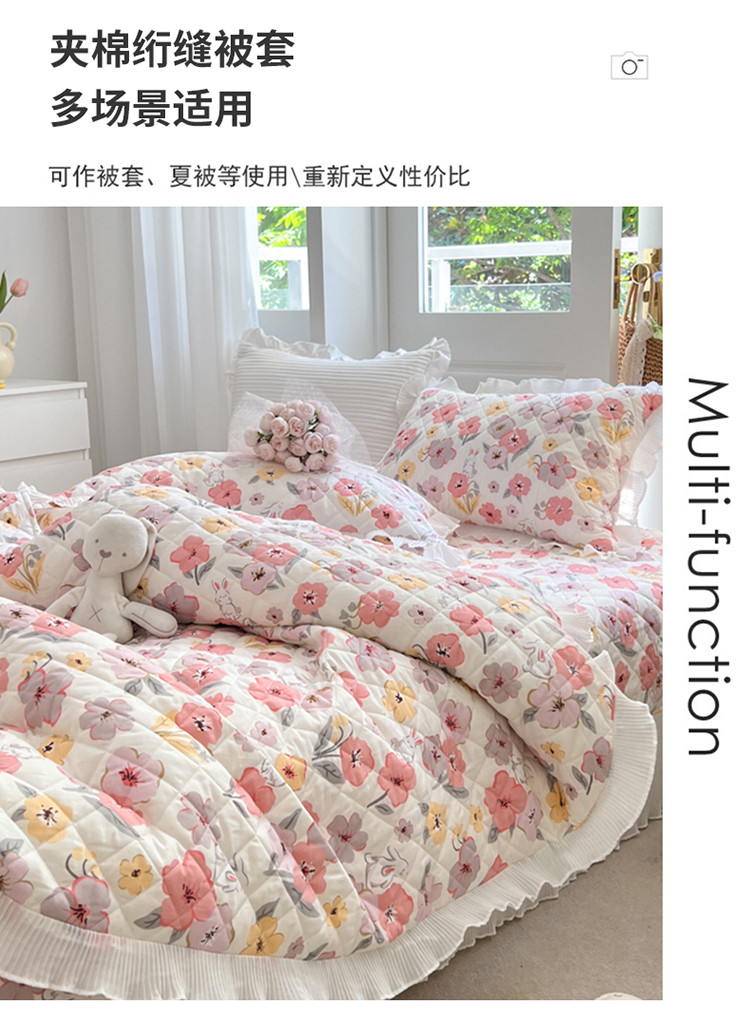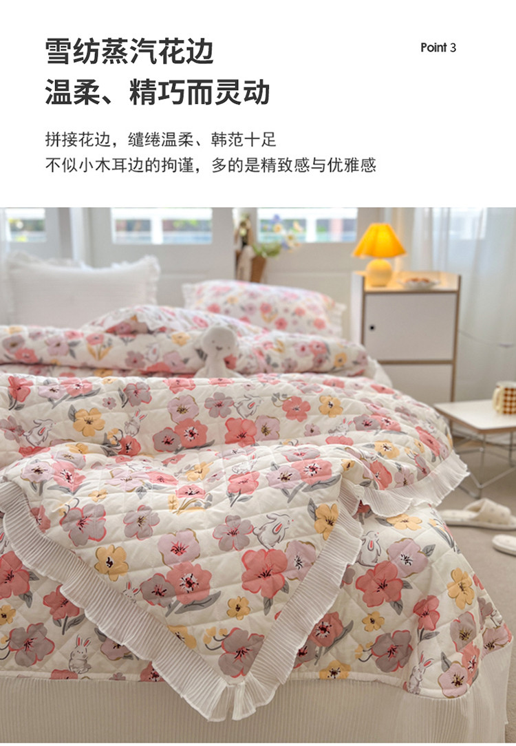 商品名称:淑女公社家纺 2022新款四季多功能全夹棉四件套 花园兔