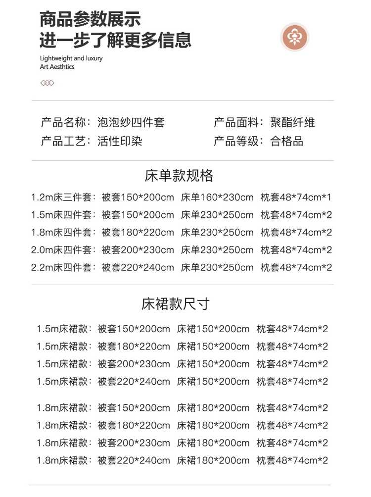 1.8m床裙款四件套(被套180*220cm) | ¥65.00 |
