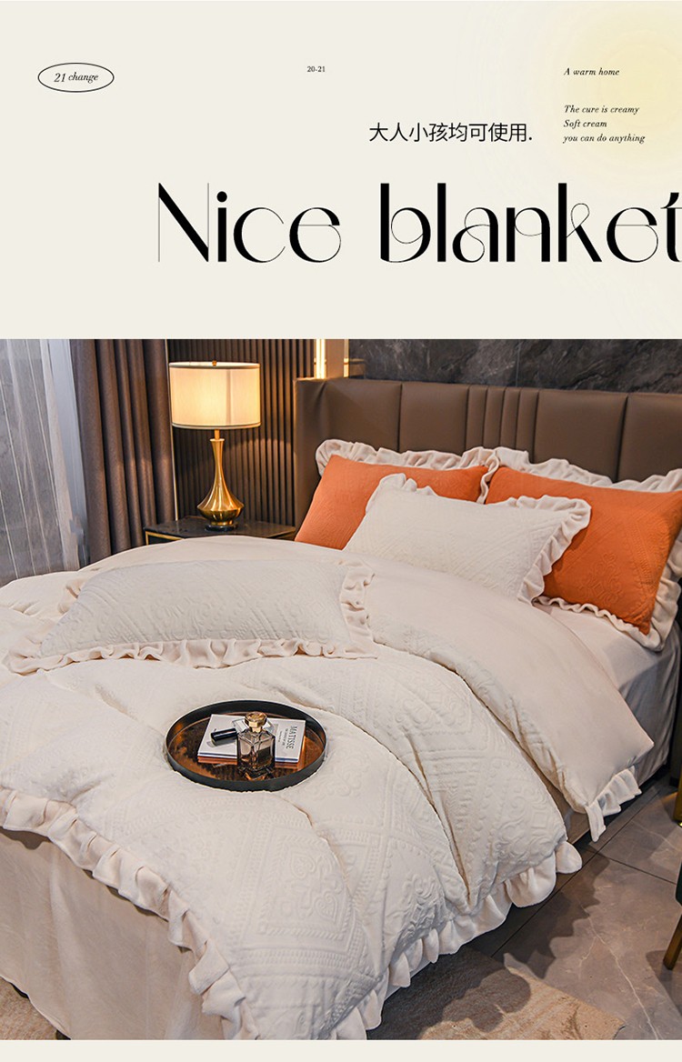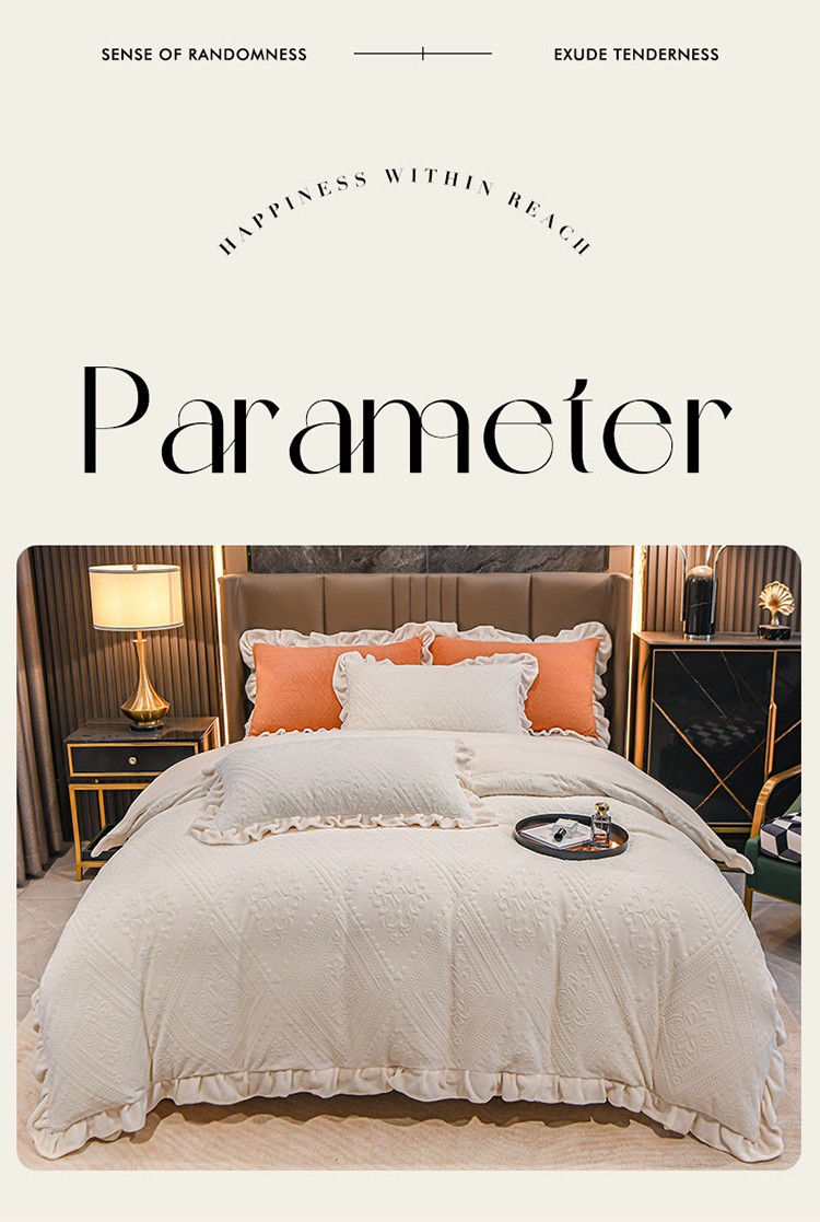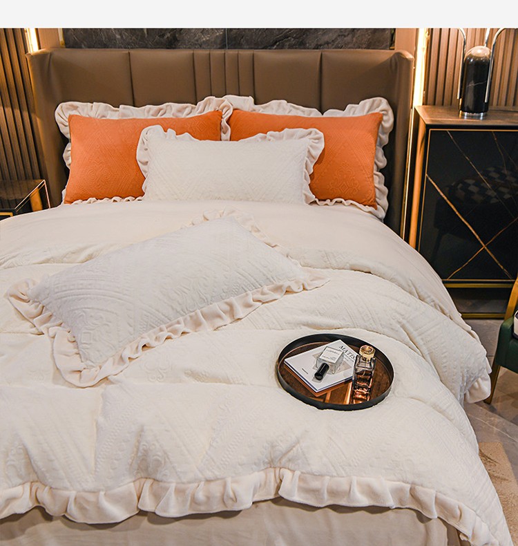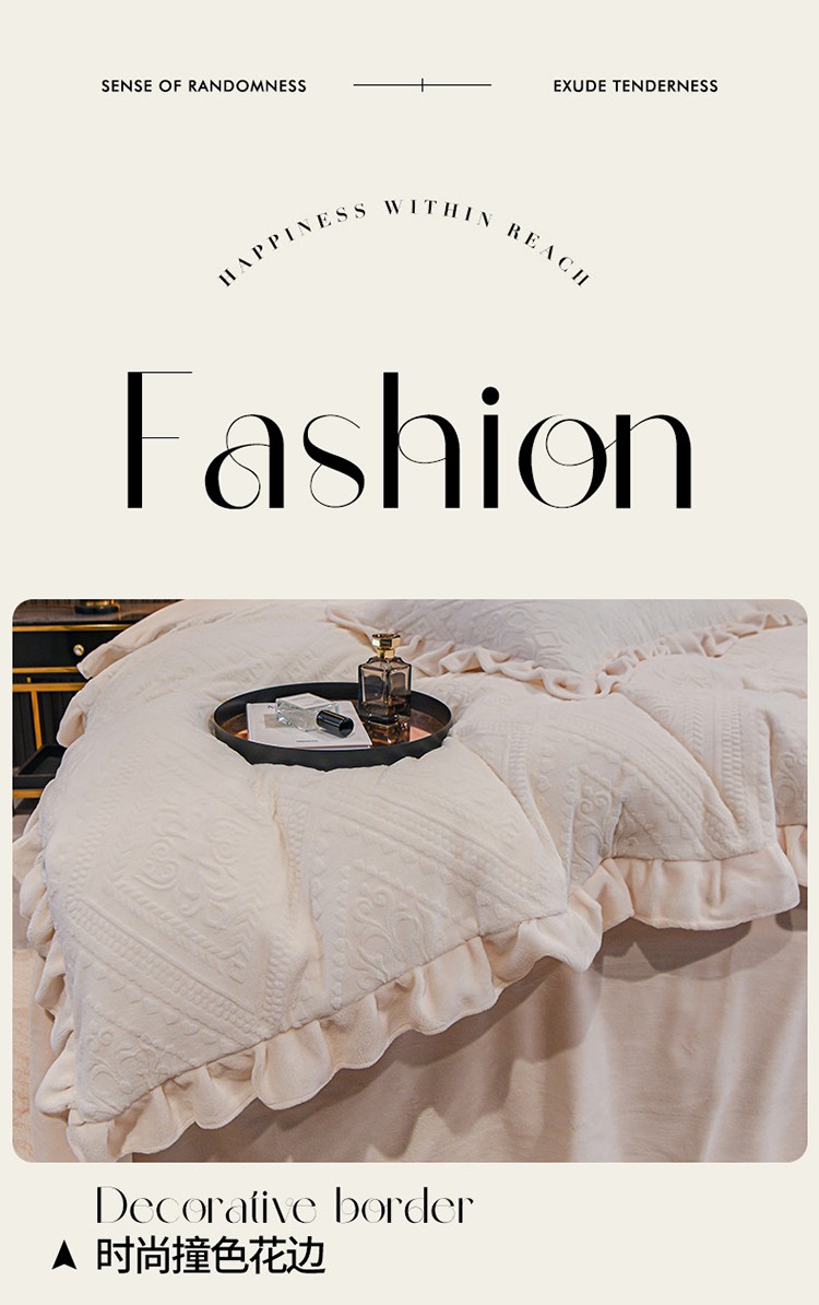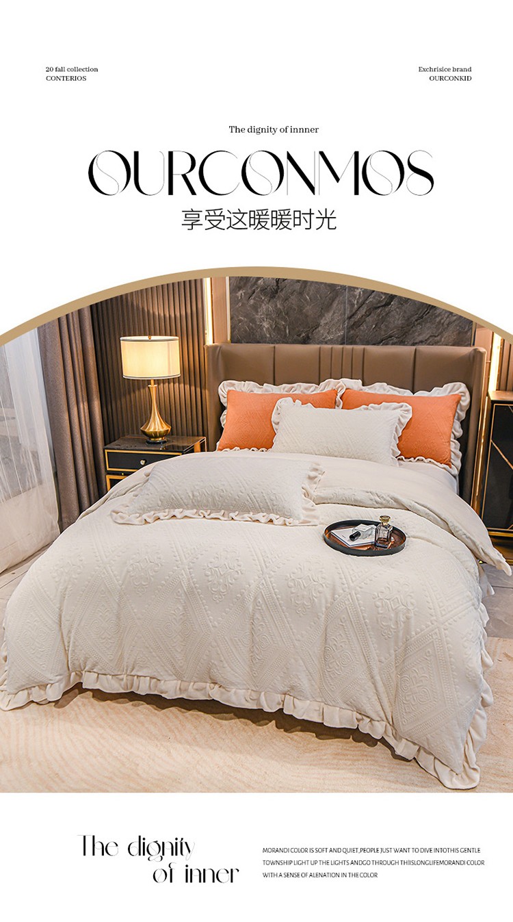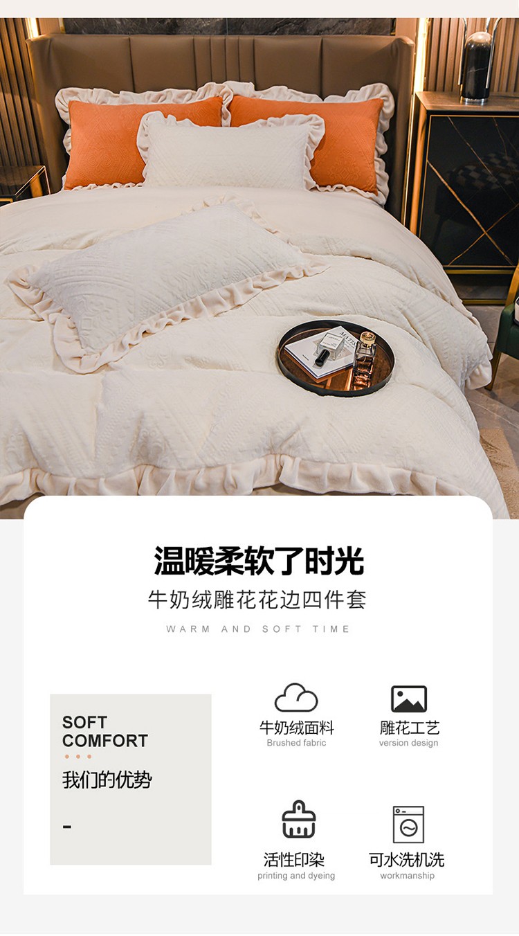 商品名称:珺柔 2022新款220高克重牛奶绒雕花时尚花边款四件套 柏拉图(白)