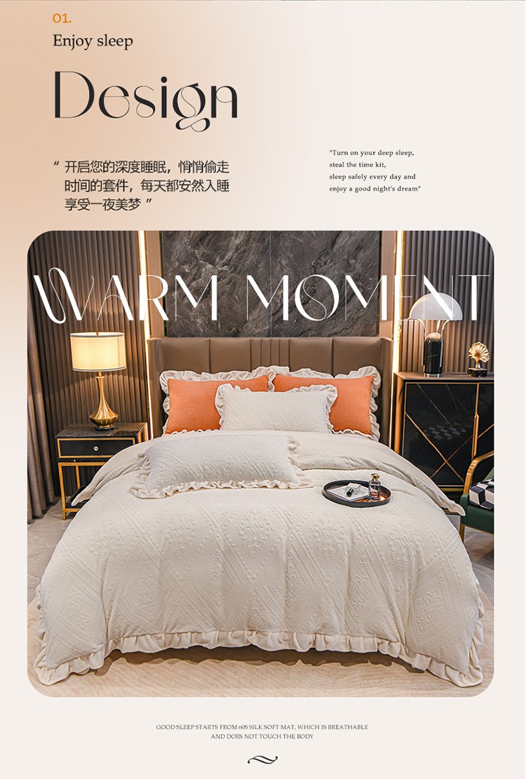 珺柔 2022新款220高克重牛奶绒雕花时尚花边款四件套 柏拉图(白)