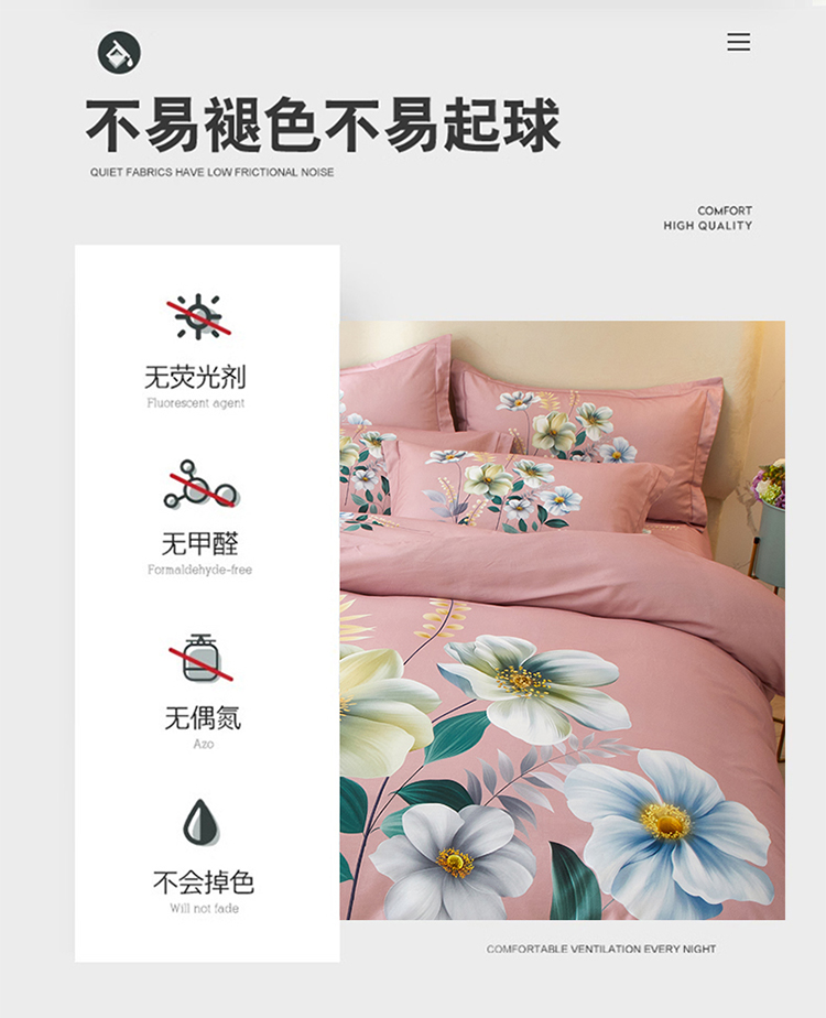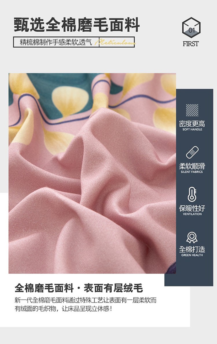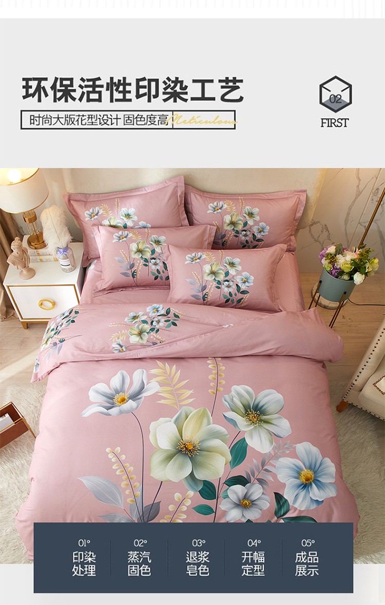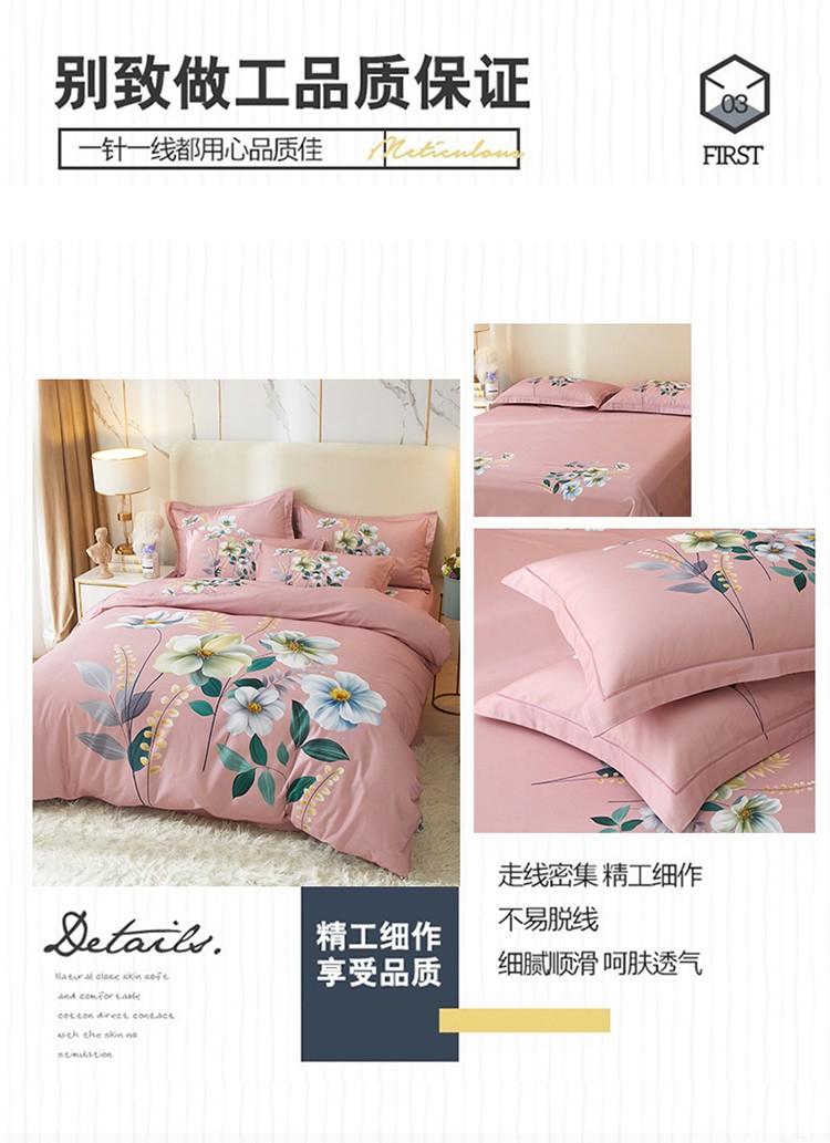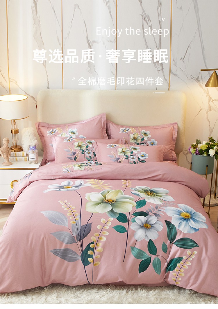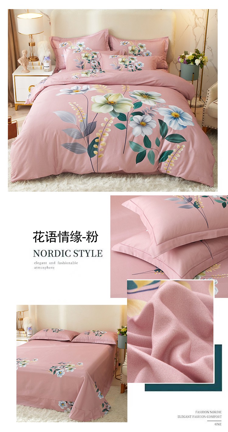 商品名称:金纱玉纺2022新款全棉生态大版磨毛四件套 花语情缘-粉