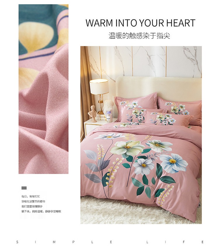 金纱玉纺2022新款全棉生态大版磨毛四件套 花语情缘-粉