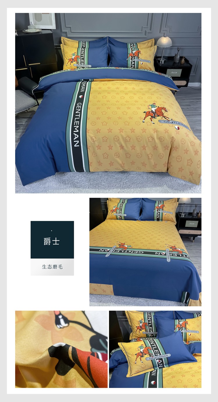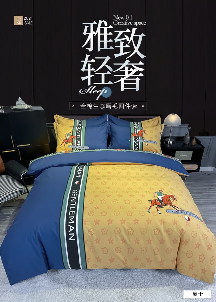 当前位置: 91家纺网 > 商品网购 > 床品套件 > 四件套 > 普通磨毛四件套 > 金爱家 2023新款大阪纯棉生态磨毛条格简约系列四件套 爵士
