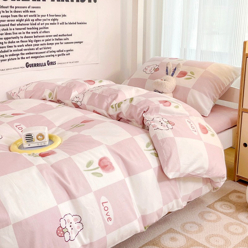 商品名称:昔可 2022新款开学季全棉卡通印花学生三件套 粉格兔