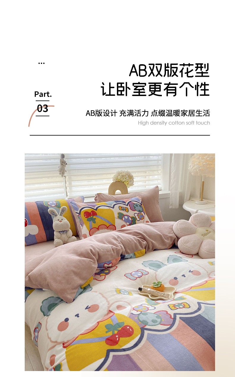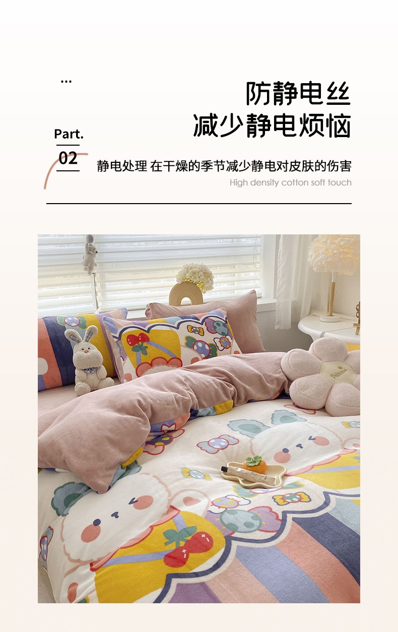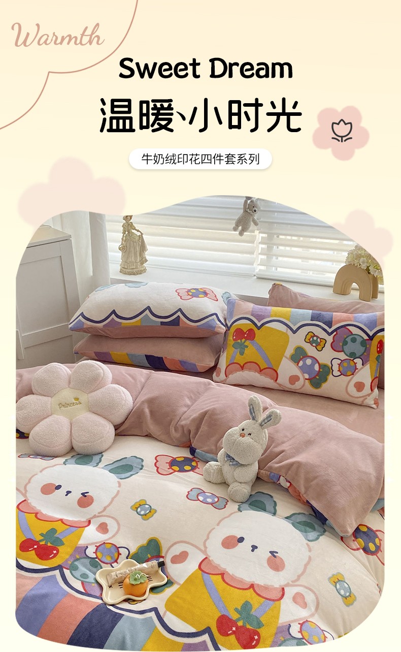 当前位置: 91家纺网 > 商品网购 > 床品套件 > 四件套 > 牛奶绒四件套 > 古吉梦 2022年新款牛奶绒印花四件套 彩虹兔