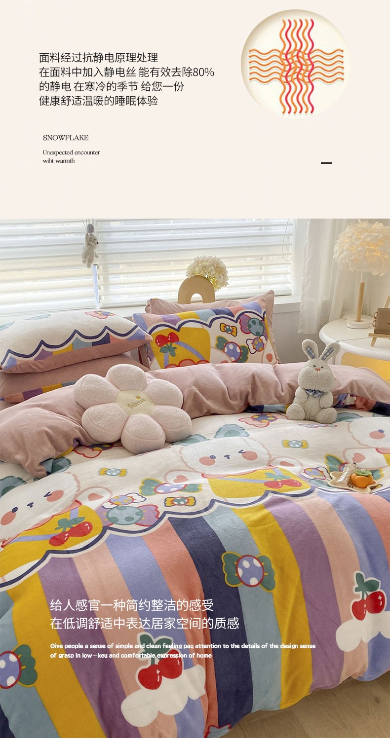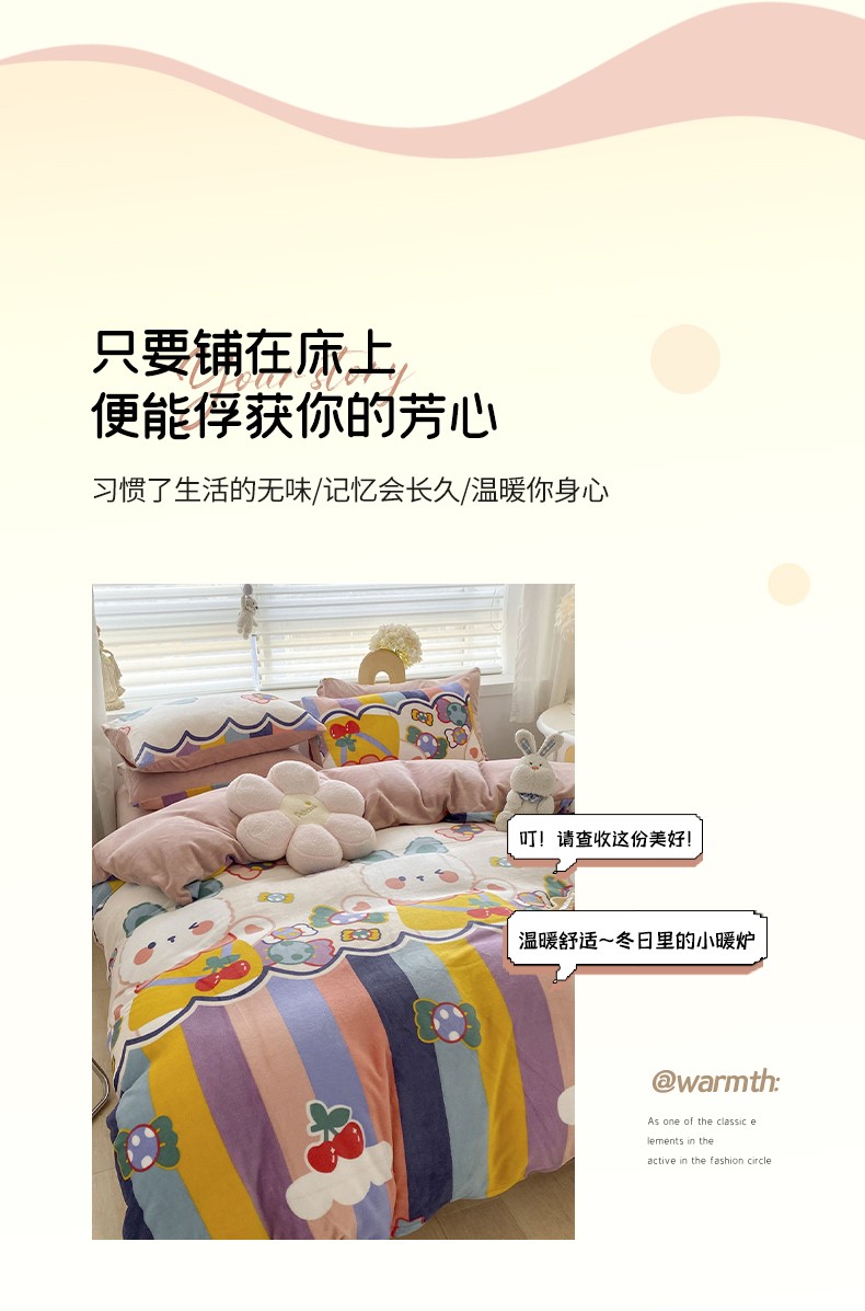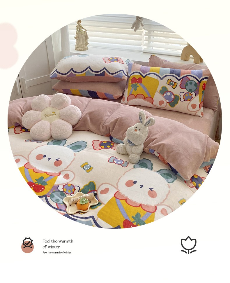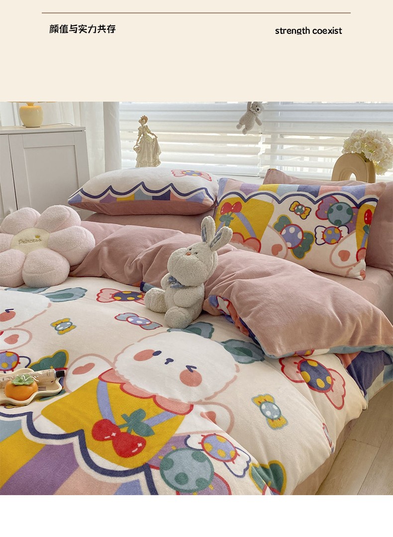 当前位置: 91家纺网 > 商品网购 > 床品套件 > 四件套 > 牛奶绒四件套 > 古吉梦 2022年新款牛奶绒印花四件套 彩虹兔