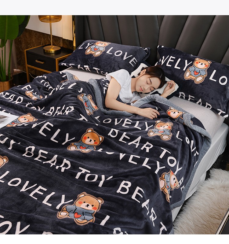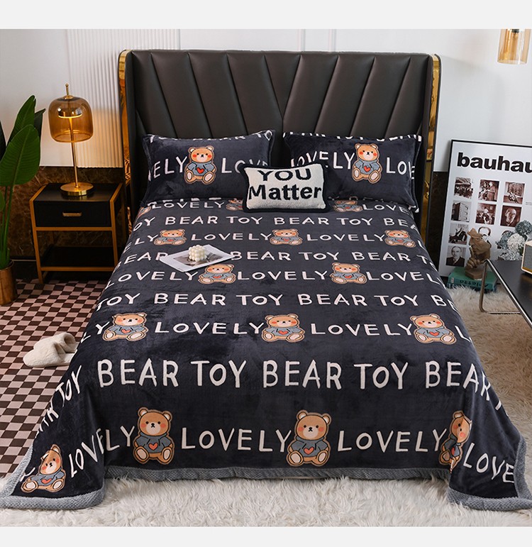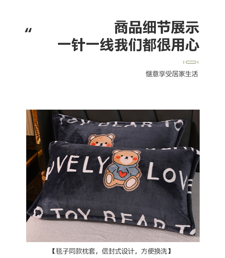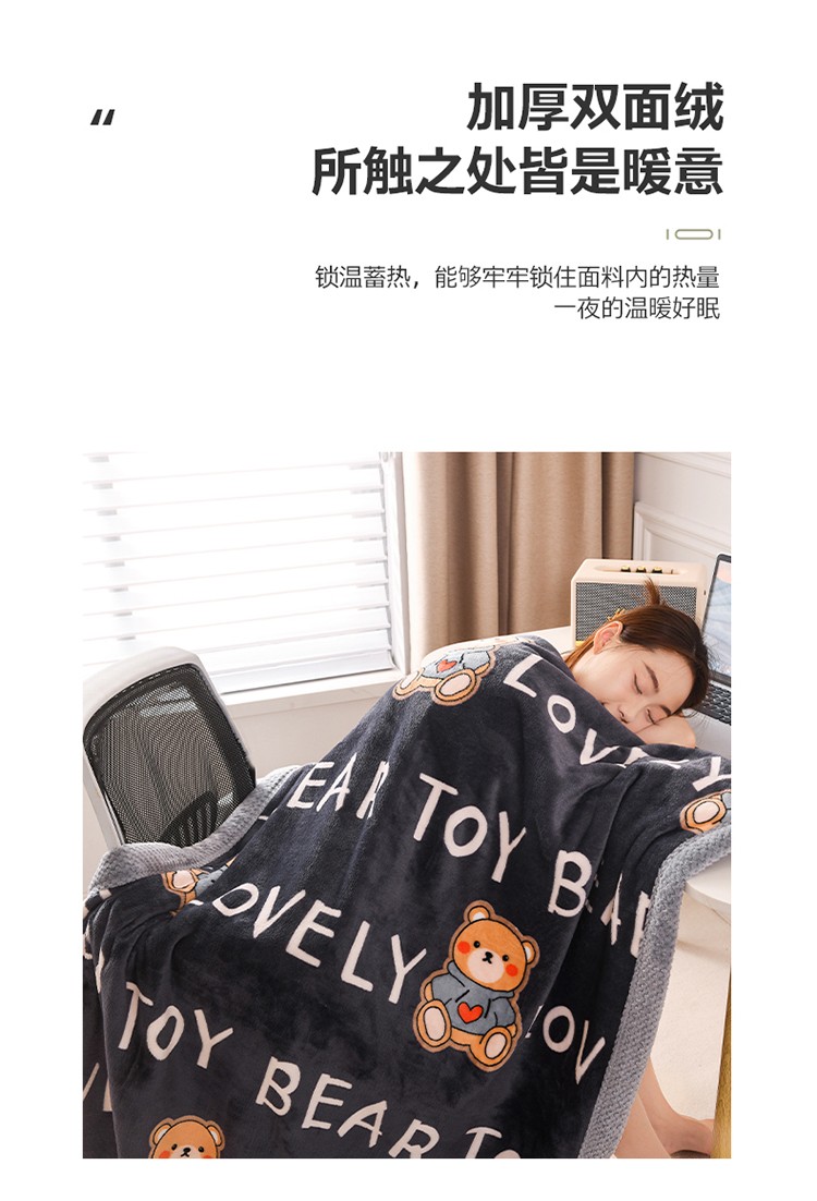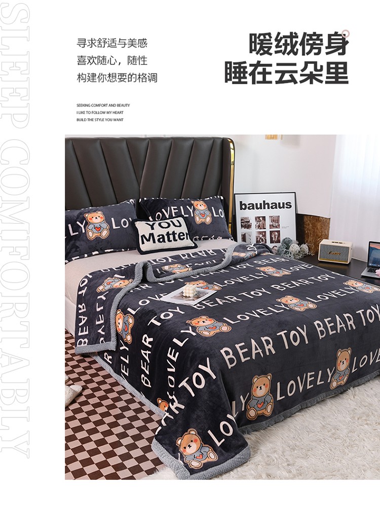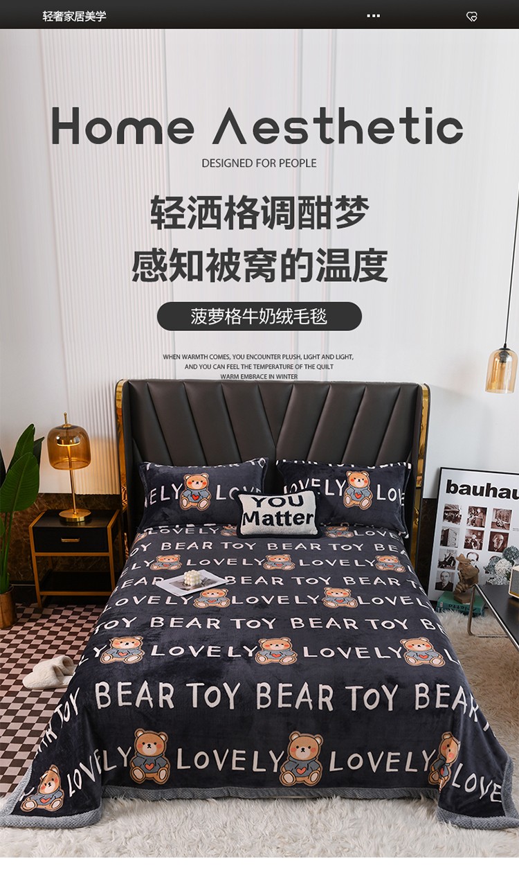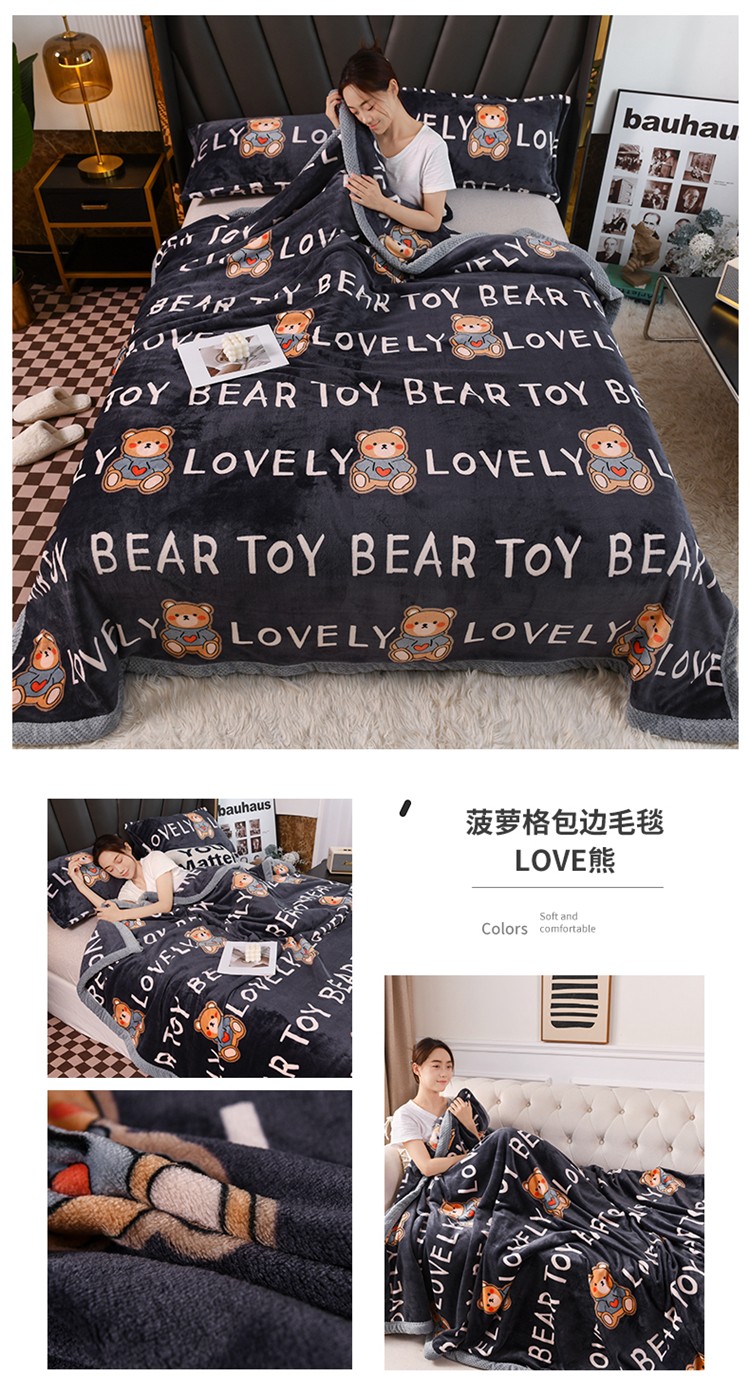 商品名称:雅萱 2024新款菠萝格牛奶绒包边毛毯 LOVE熊