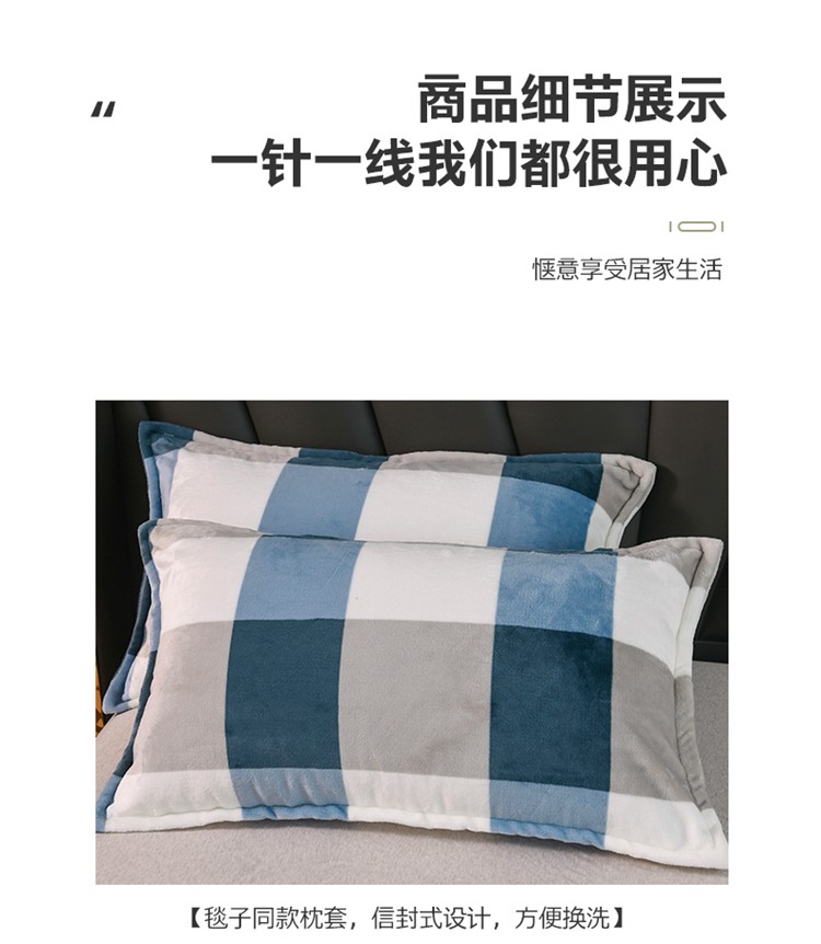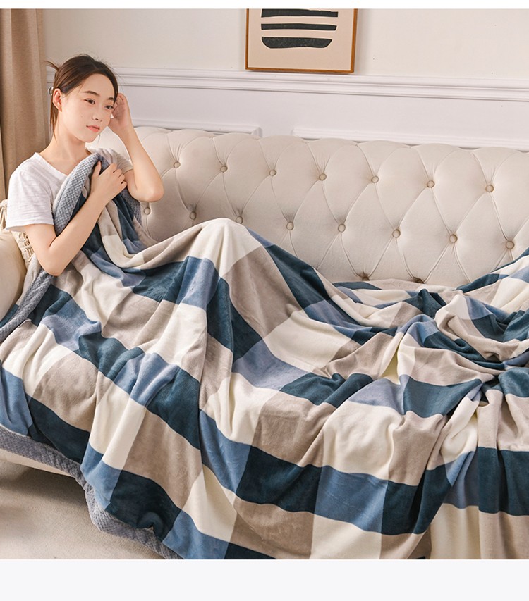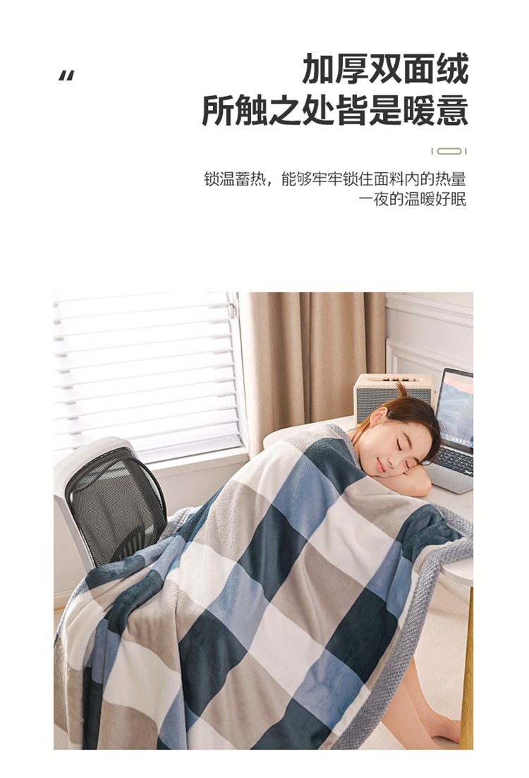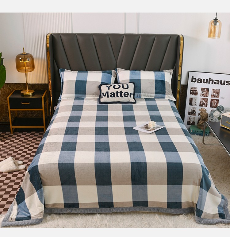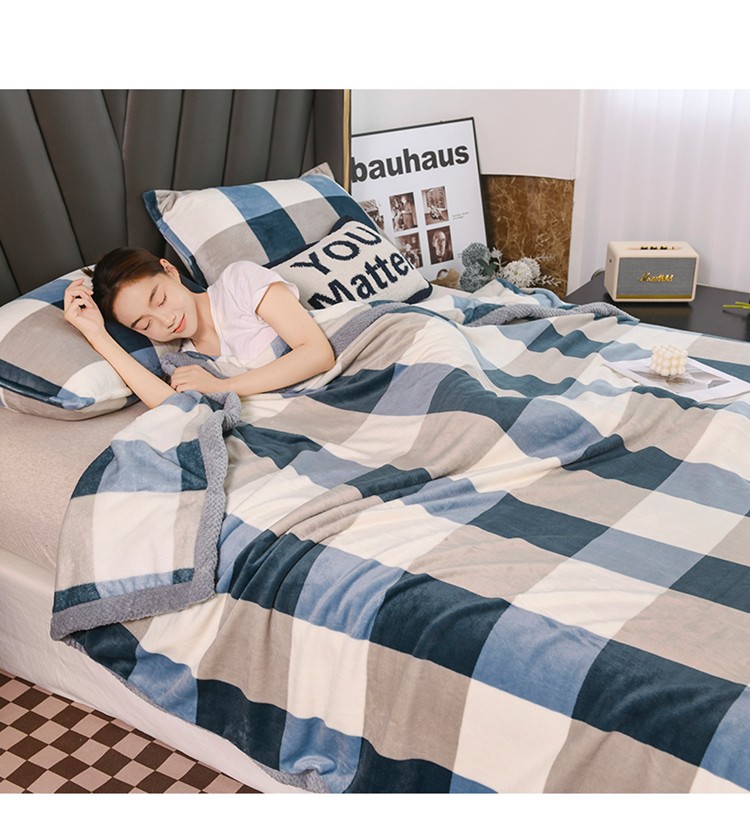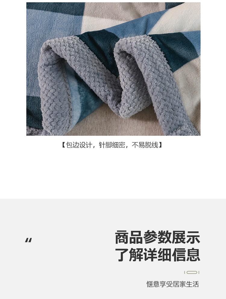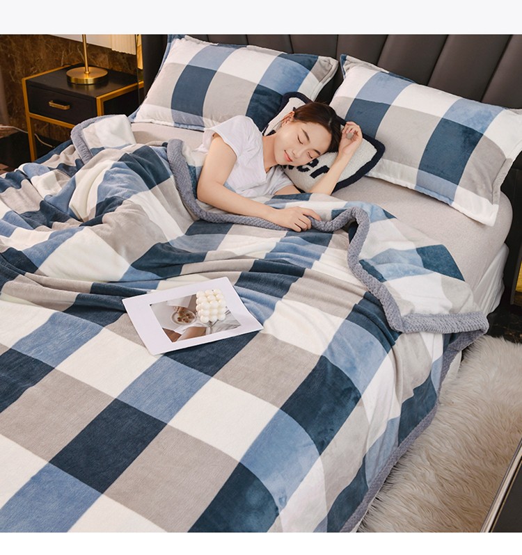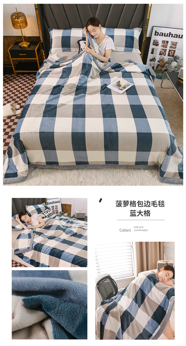 商品名称:雅萱 2024新款菠萝格牛奶绒包边毛毯 蓝大格