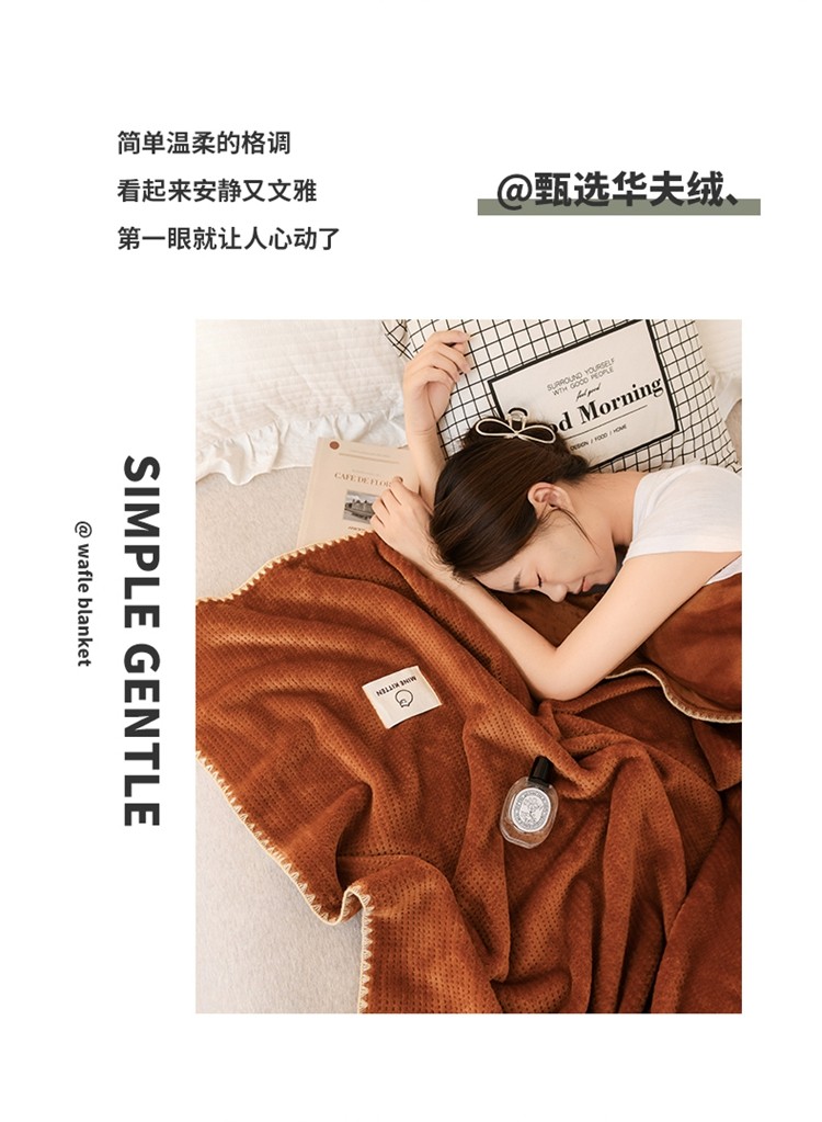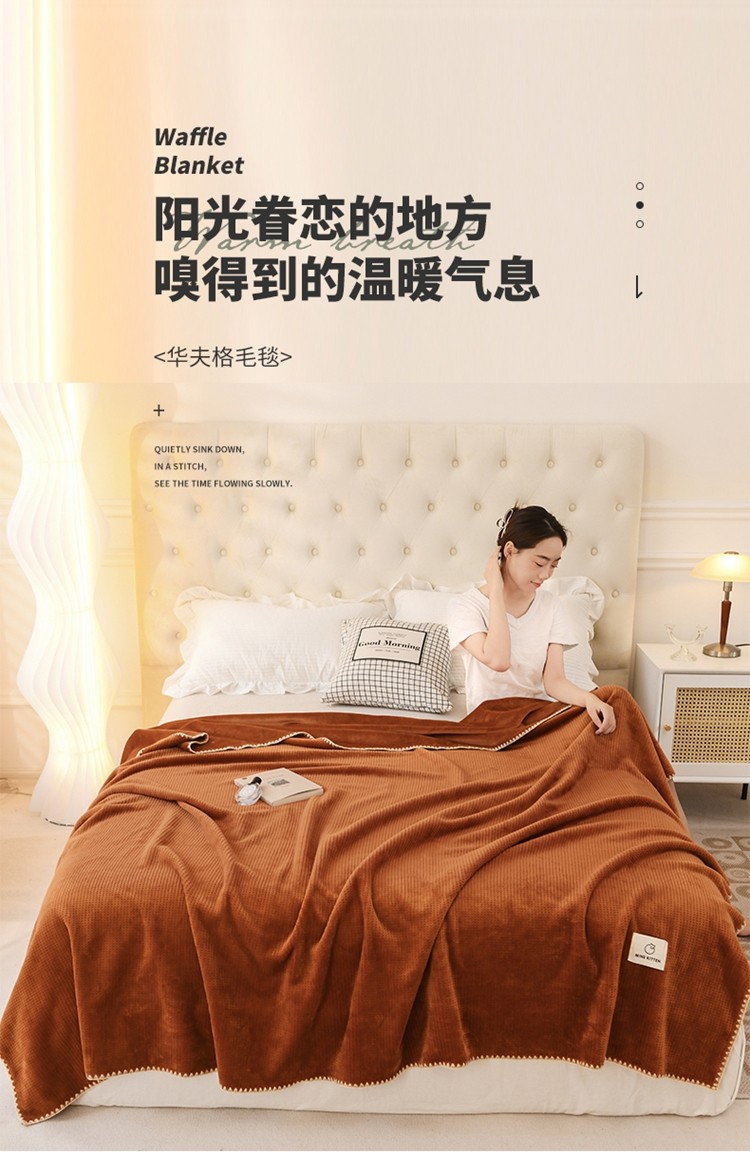 商品名称:雅萱 2022新款双面加厚华夫格毛毯 焦糖