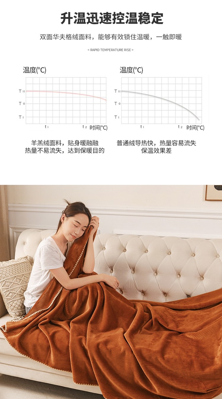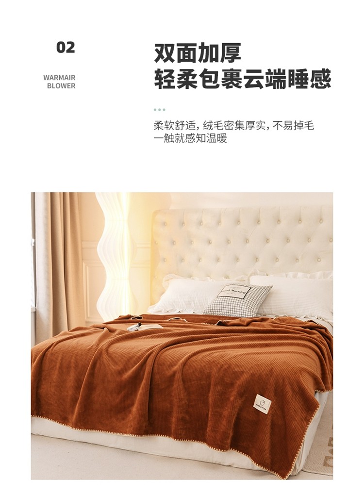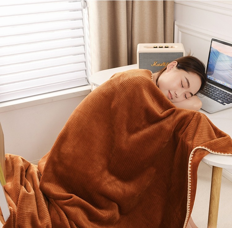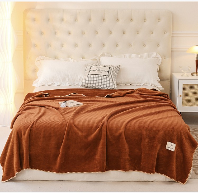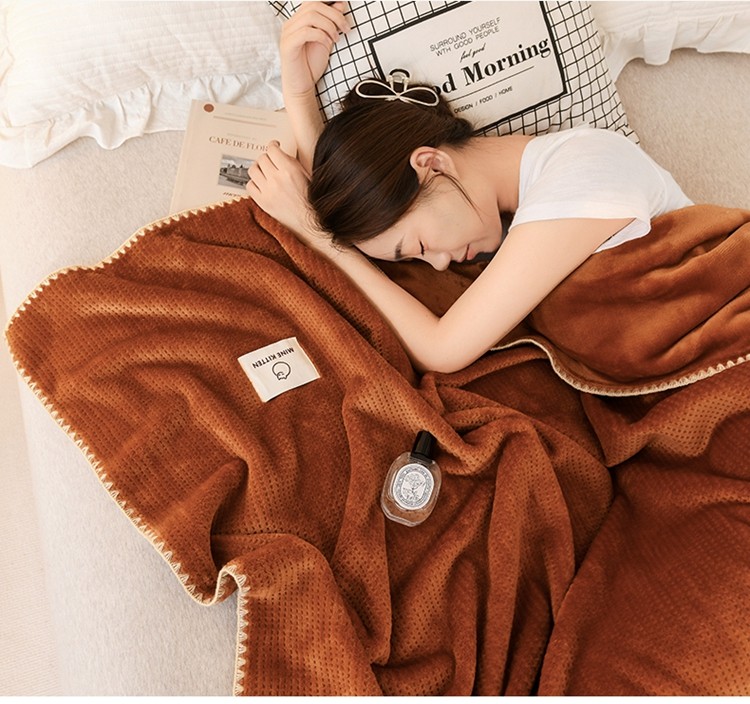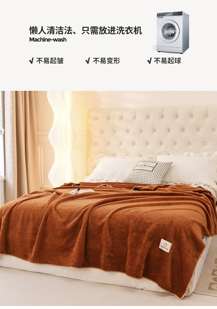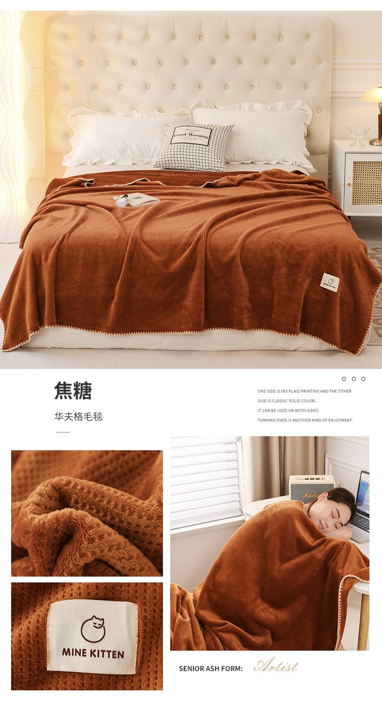 雅萱 2022新款双面加厚华夫格毛毯 焦糖