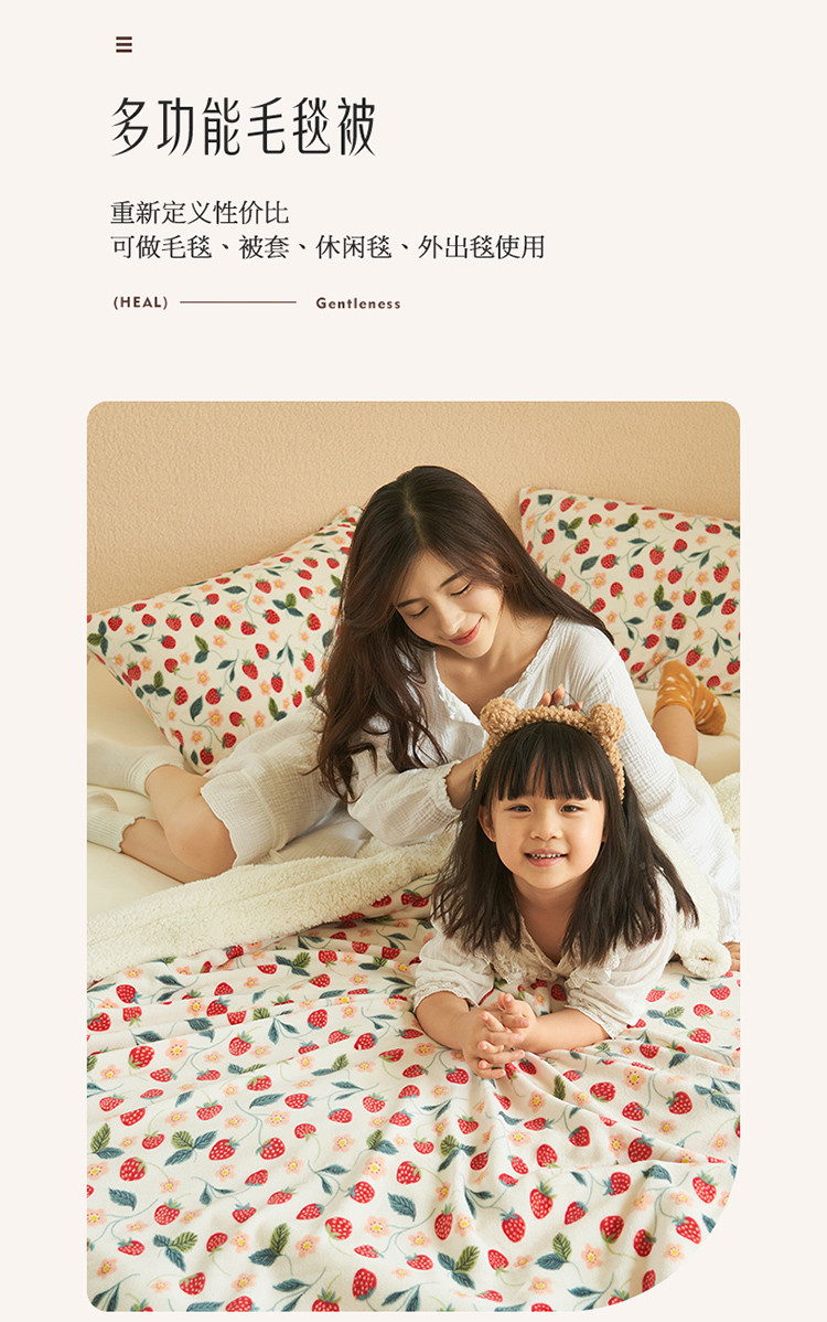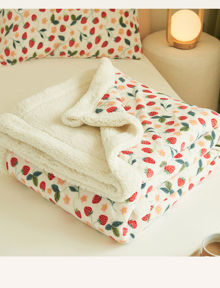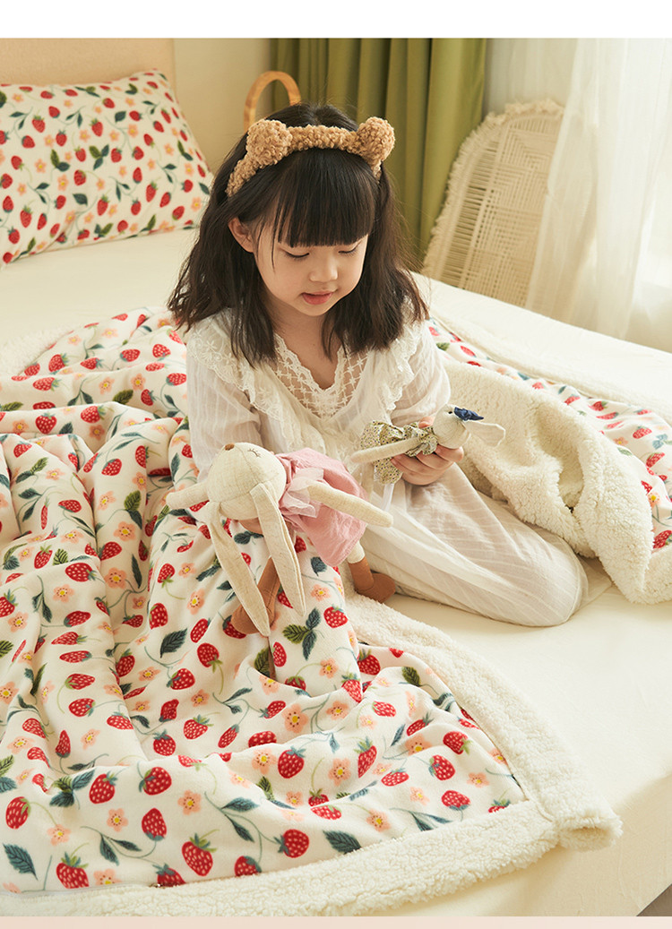 晨曦家纺 2022新款法式田园风牛奶绒羊羔绒被套毯 乔野椿莓