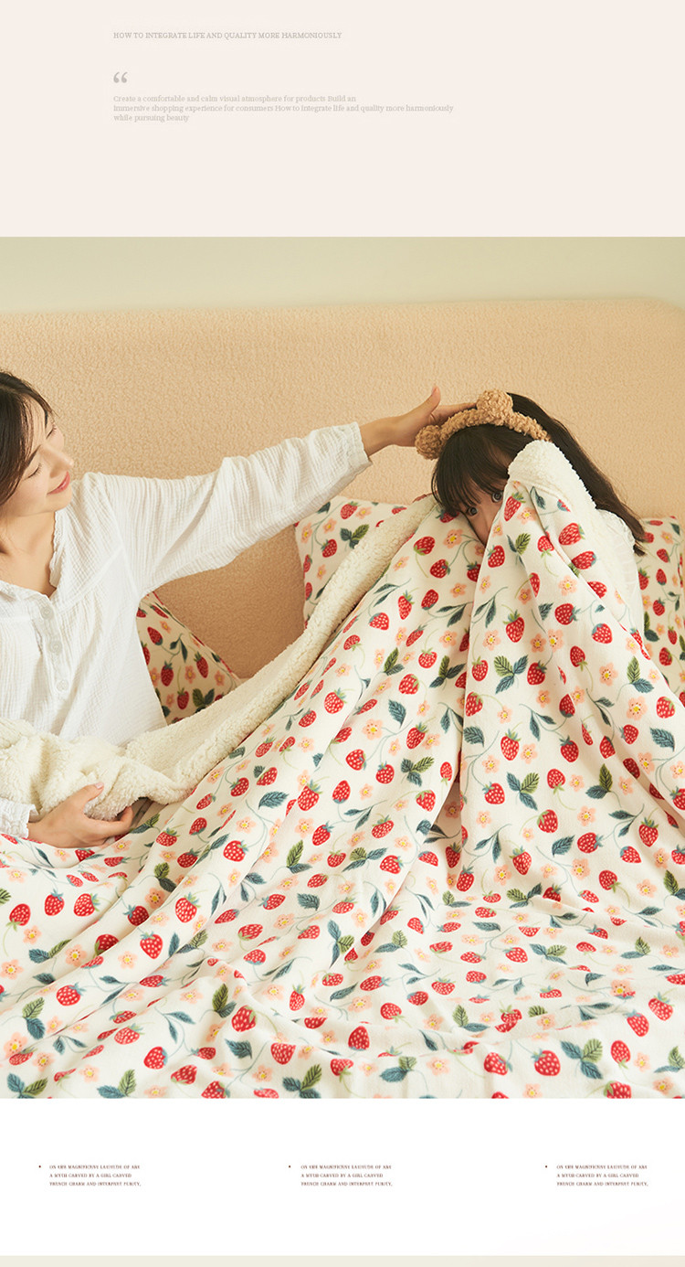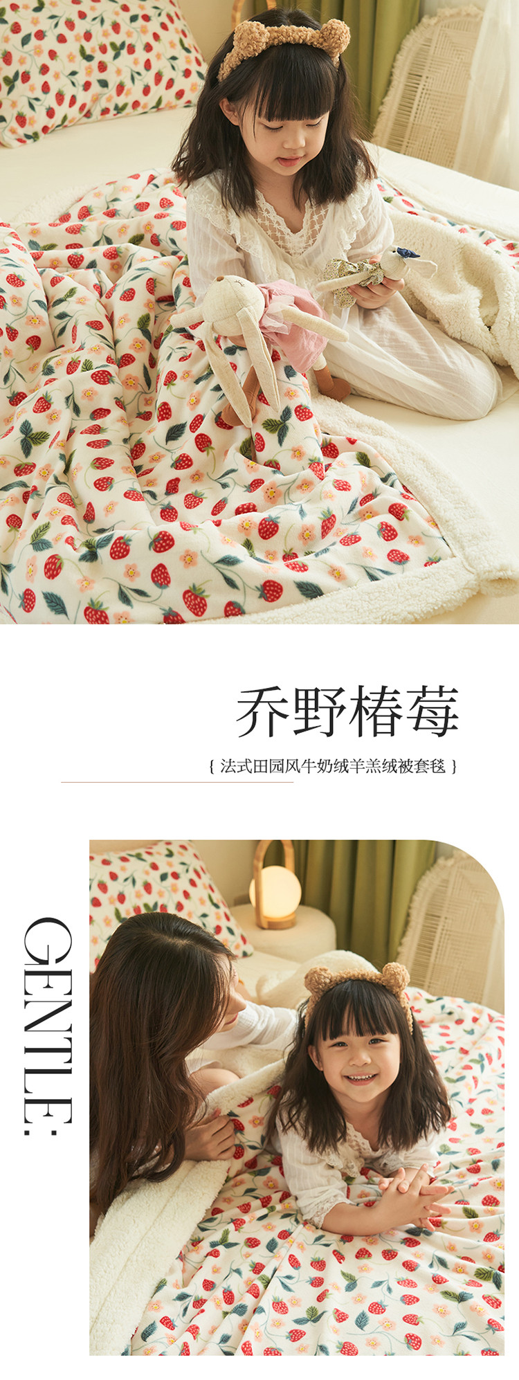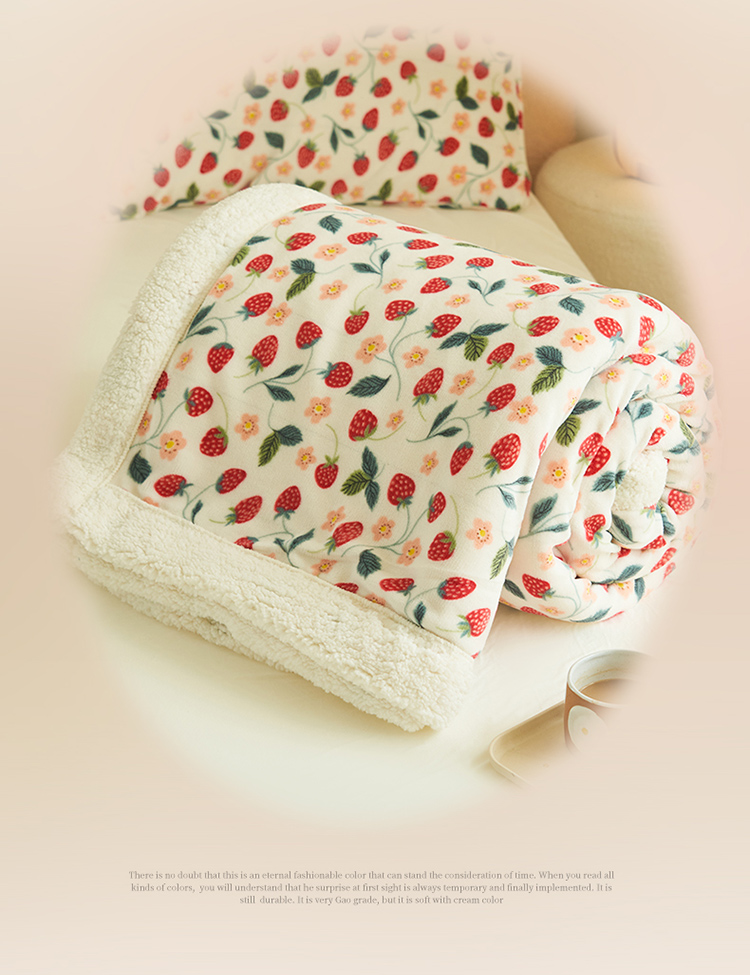 商品名称:晨曦家纺 2022新款法式田园风牛奶绒羊羔绒被套毯 乔野椿莓