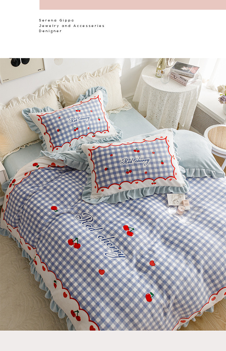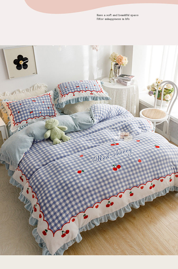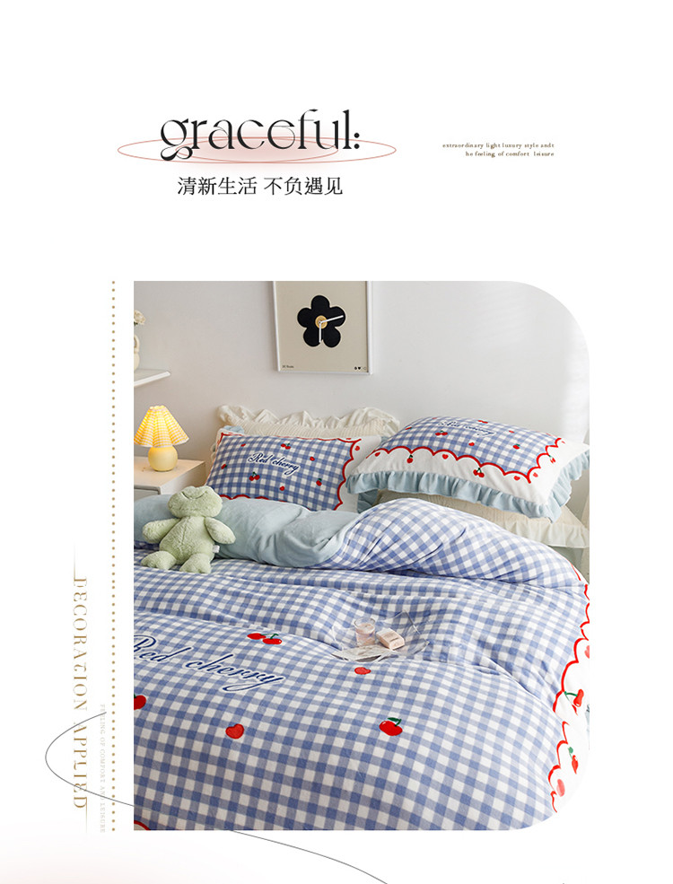兄弟坊 2022新款大版牛奶绒韩版四件套 花边--樱桃奶油