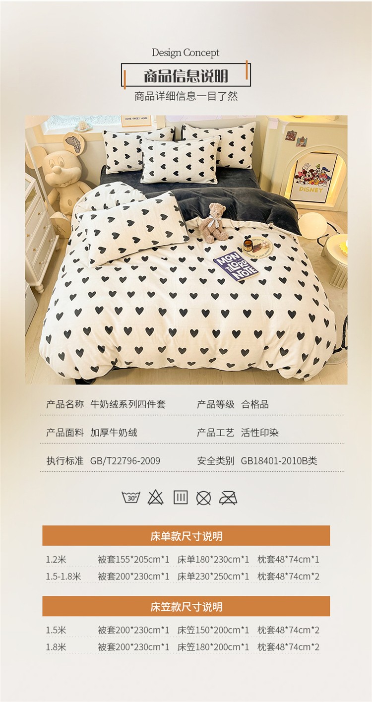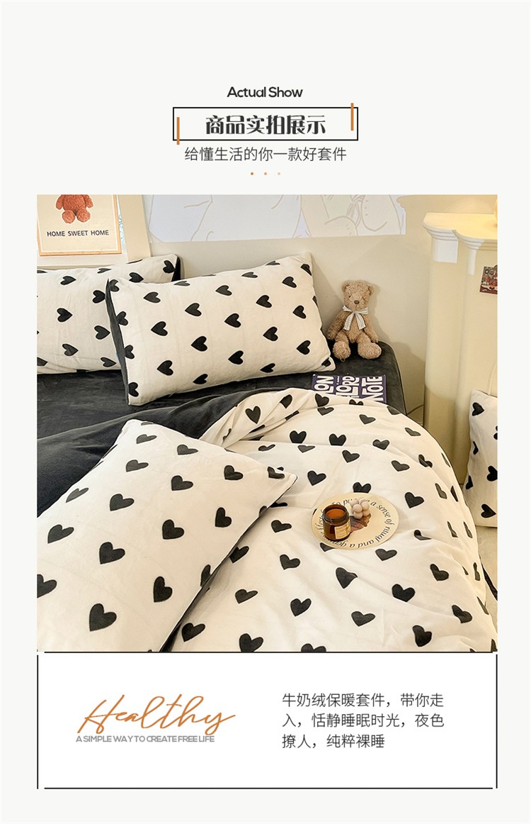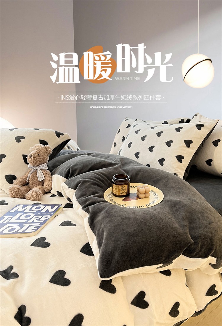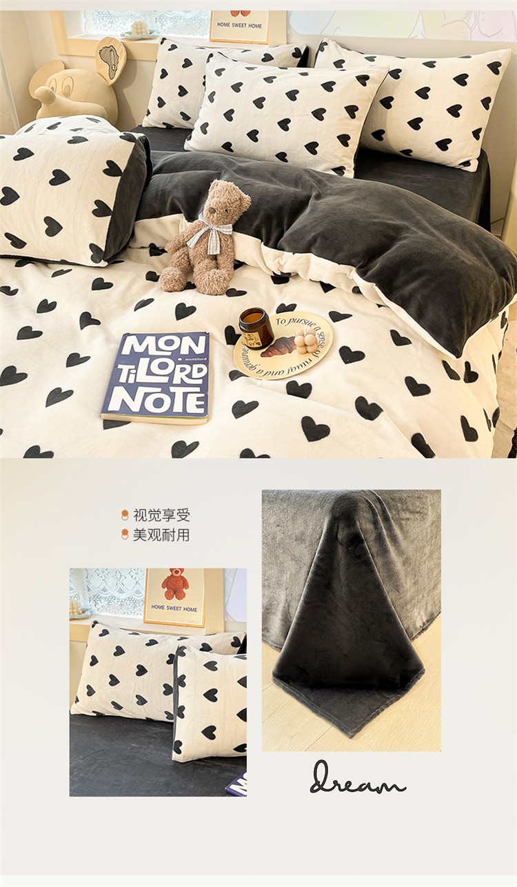 商品名称:桃子 2022新款ins爱心轻奢复古加厚牛奶绒系列四件套 绒-爱心深灰