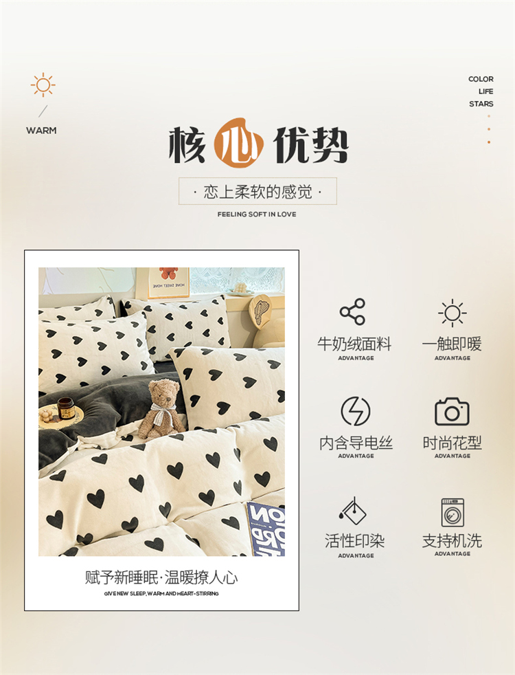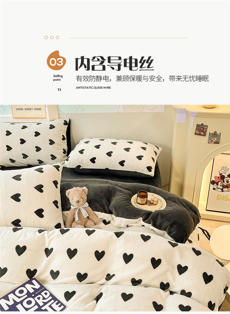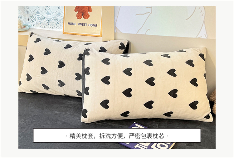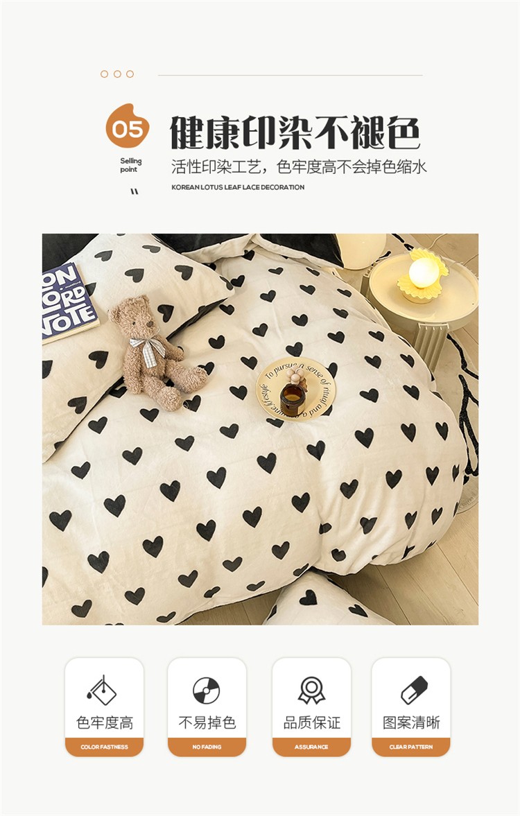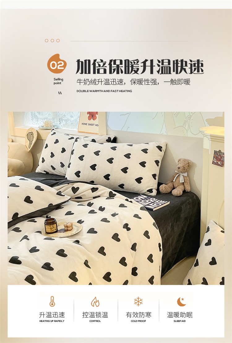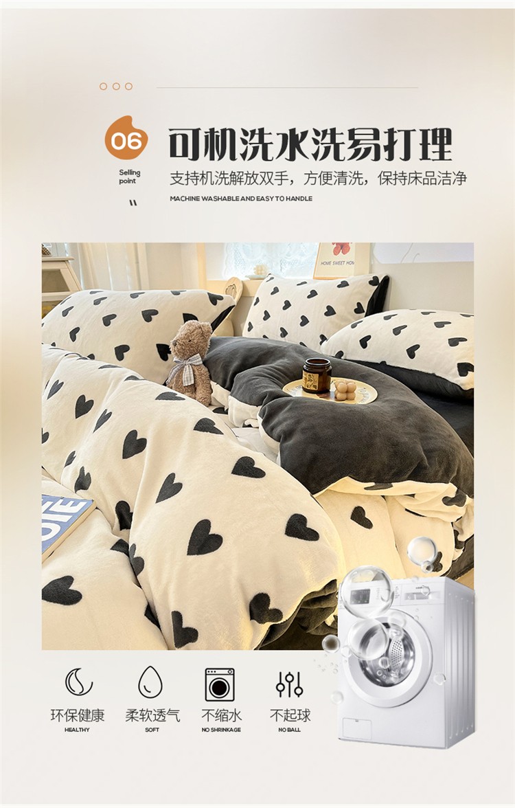 商品名称:桃子 2022新款ins爱心轻奢复古加厚牛奶绒系列四件套 绒-爱心深灰