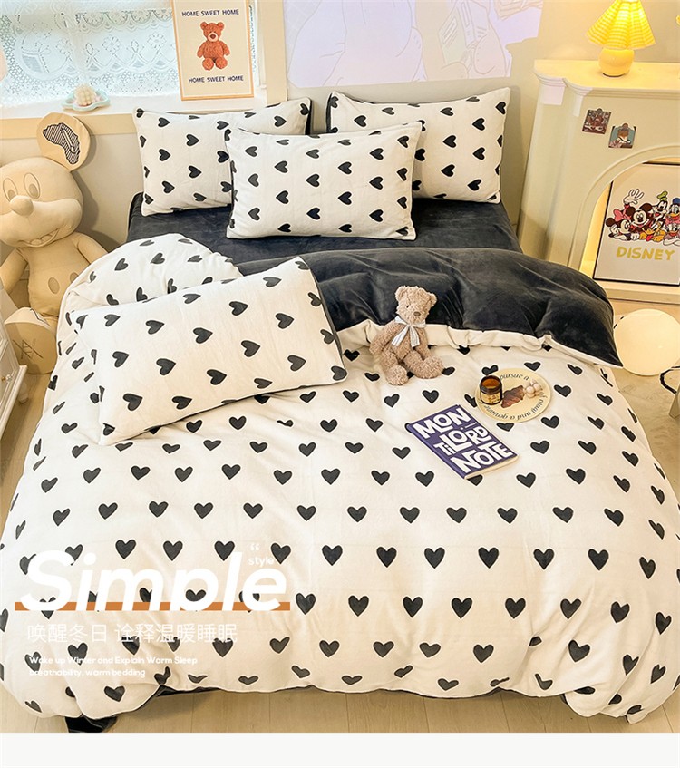 桃子 2022新款ins爱心轻奢复古加厚牛奶绒系列四件套 绒-爱心深灰