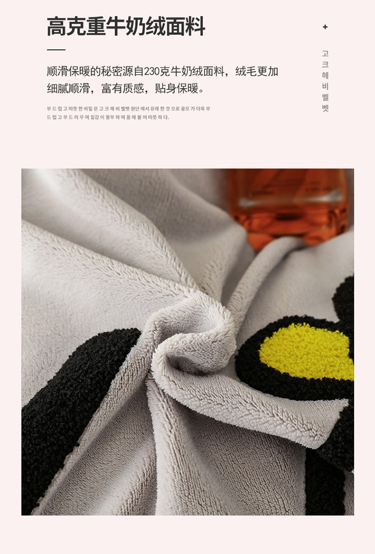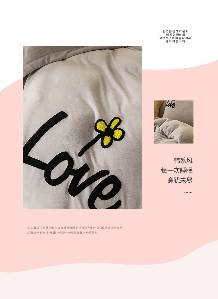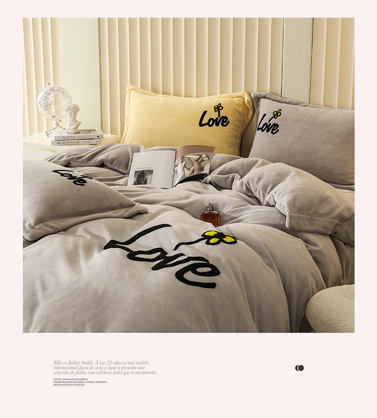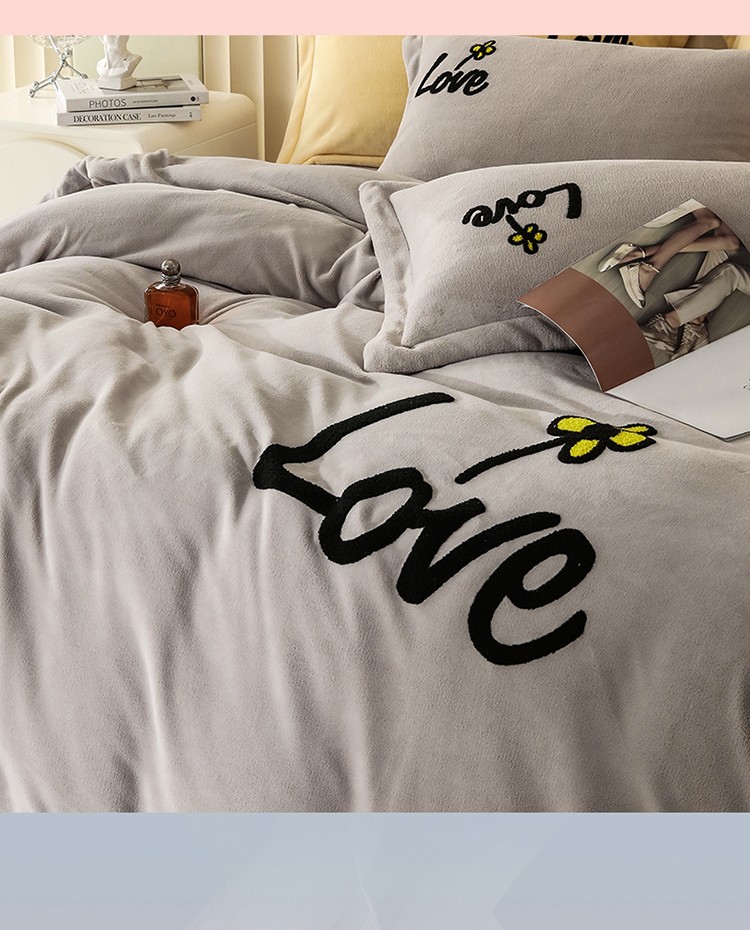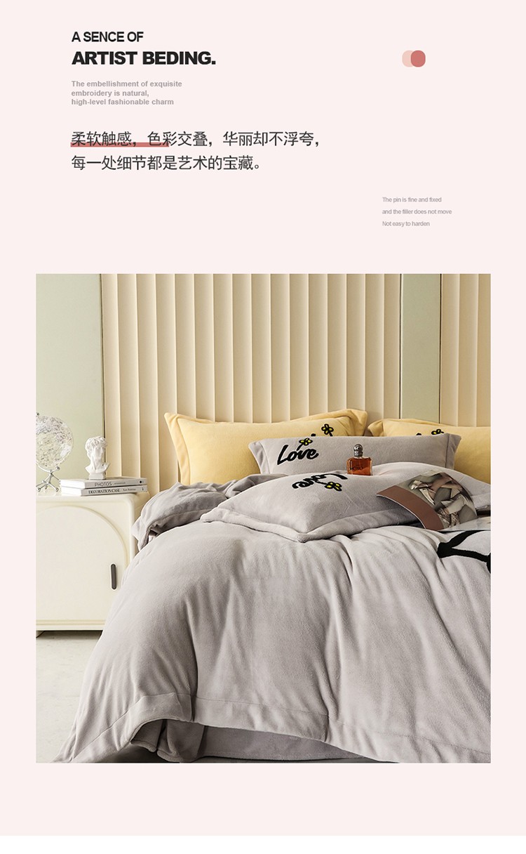 名品优仓2022新款牛奶绒230克毛巾绣四件套LOVE 浅灰