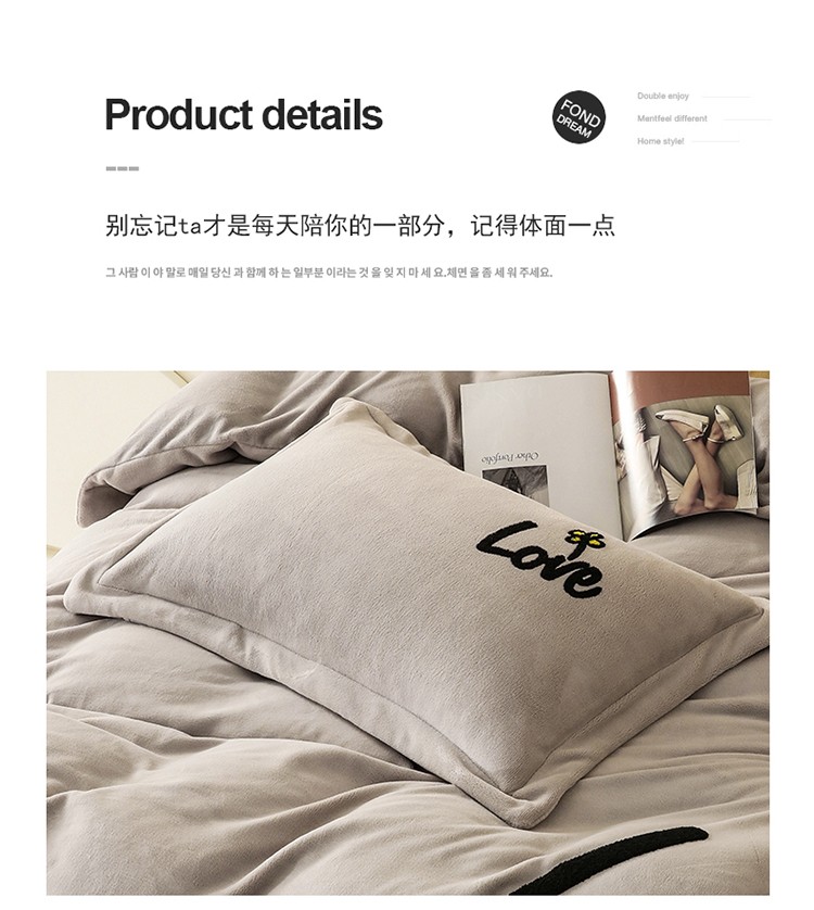商品名称:名品优仓2022新款牛奶绒230克毛巾绣四件套LOVE 浅灰