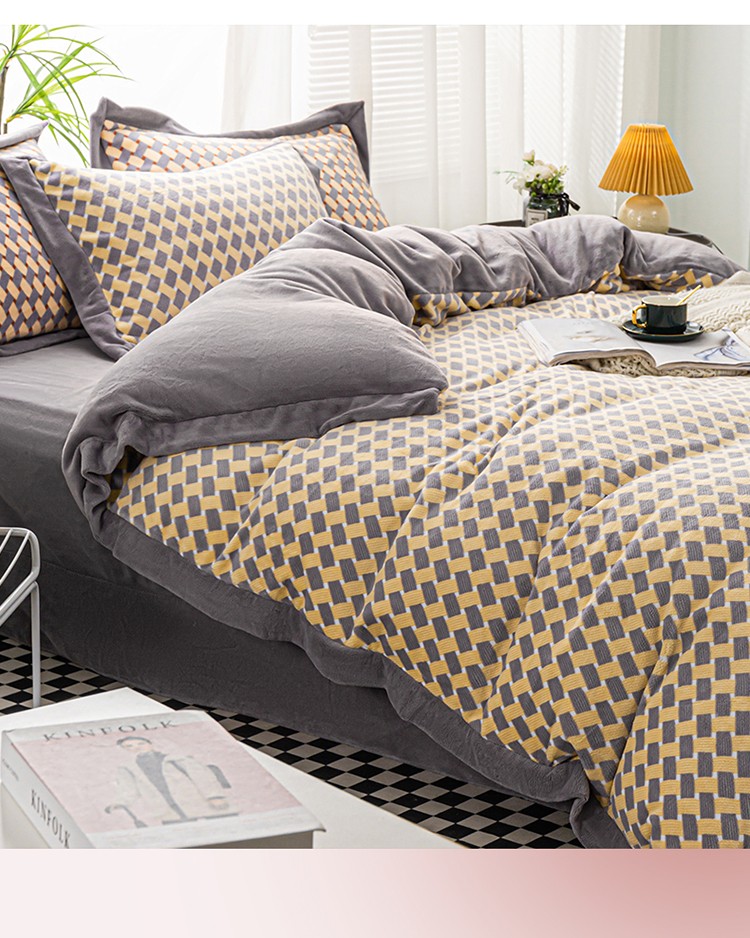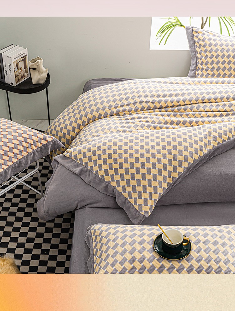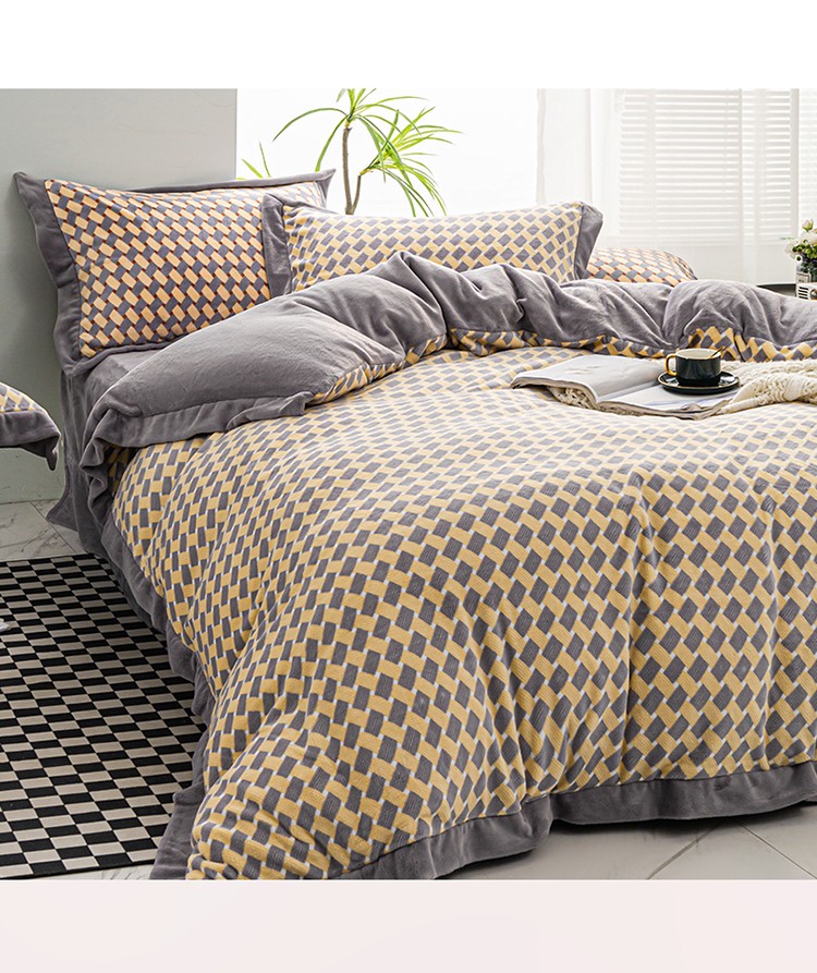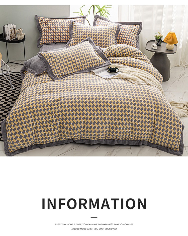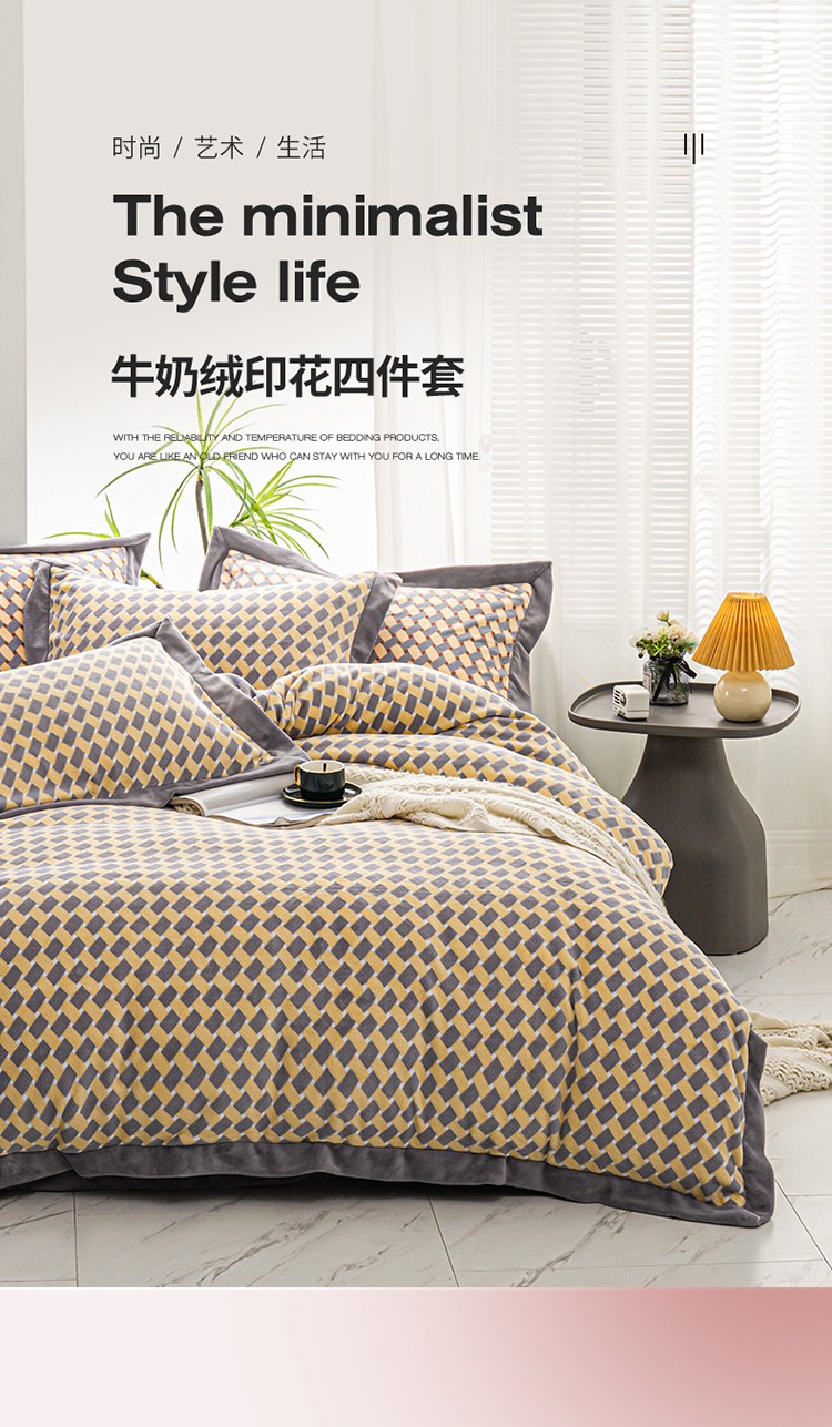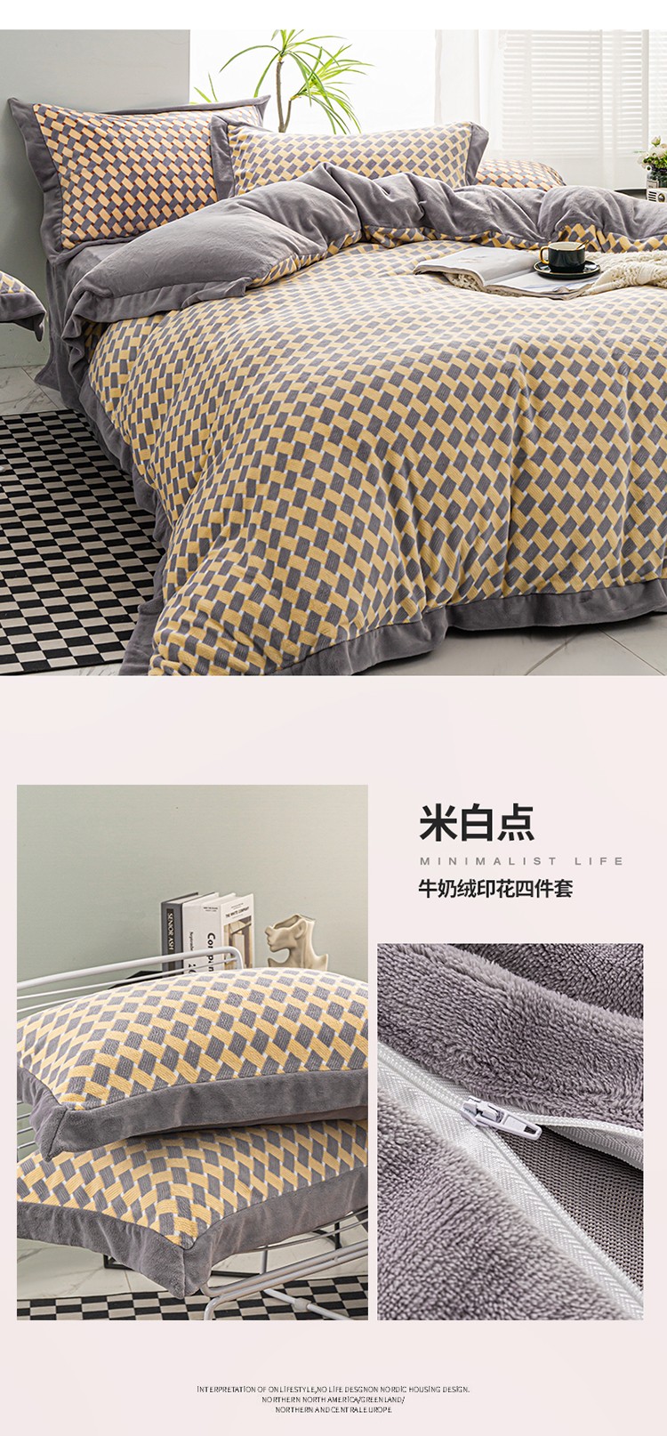 名品优仓2022新款牛奶绒印花款230克四件套-麦瑞格 米白点