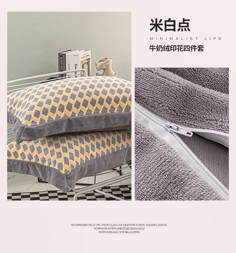 商品名称:名品优仓2022新款牛奶绒印花款230克四件套-麦瑞格 米白点