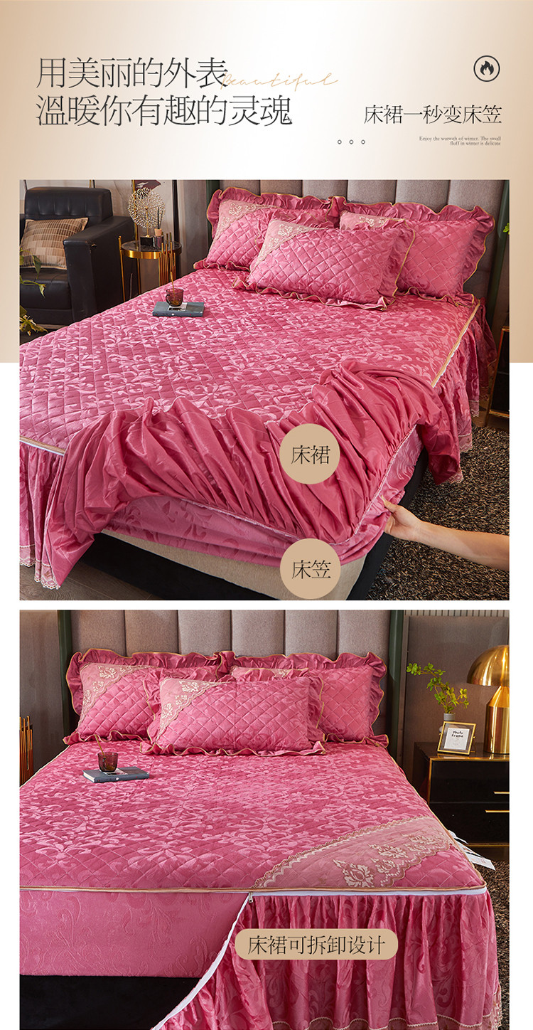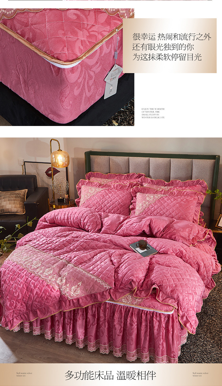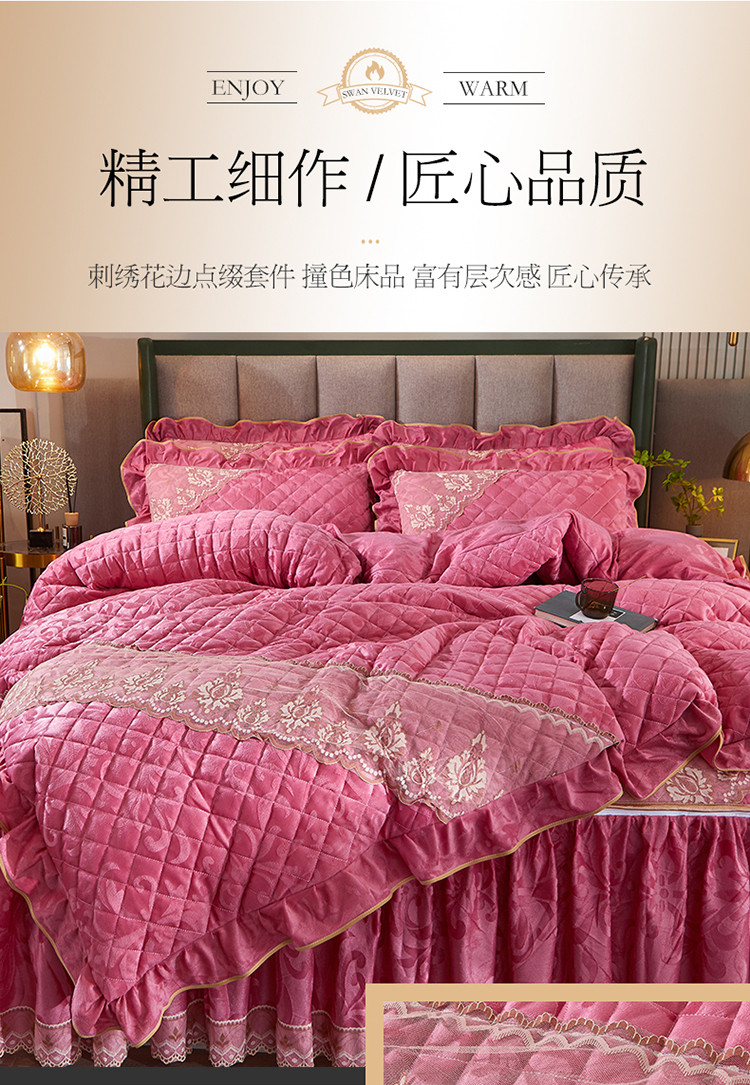 当前位置: 91家纺网 > 商品网购 > 床品套件 > 四件套 > 天鹅绒四件套 > 网红馆 2025新品天鹅绒夹棉床裙四件套 幻城巴黎 胭脂