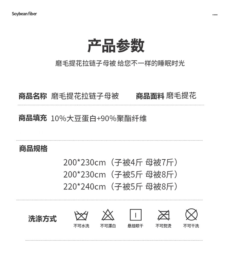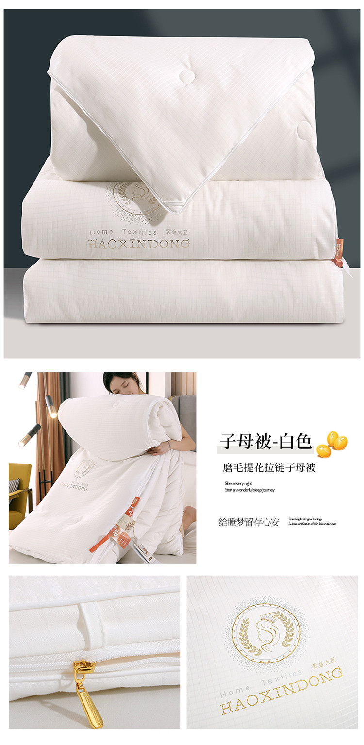 商品名称:伊被源 2022新款磨毛提花拉链意尔丝子母被被子被芯 意尔丝字母被 白