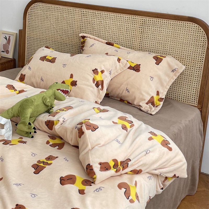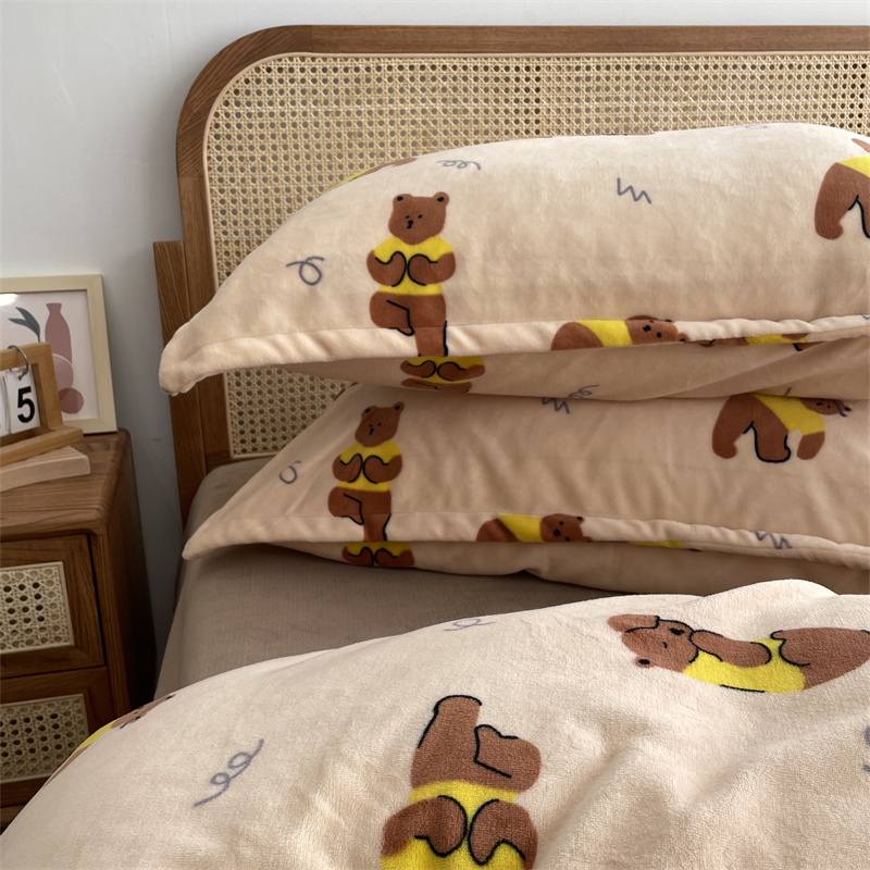 源启生活 2022新款230g全消光高克重牛奶绒四件套 瑜伽熊