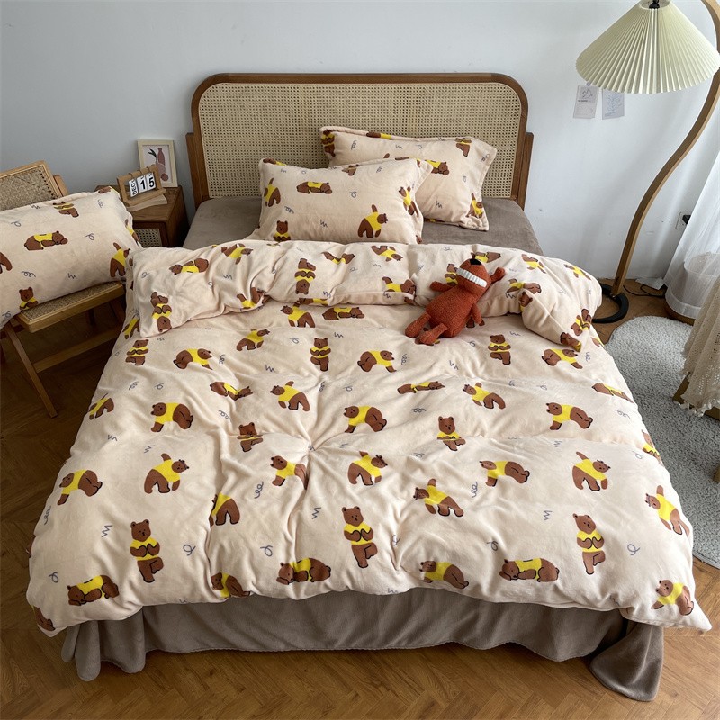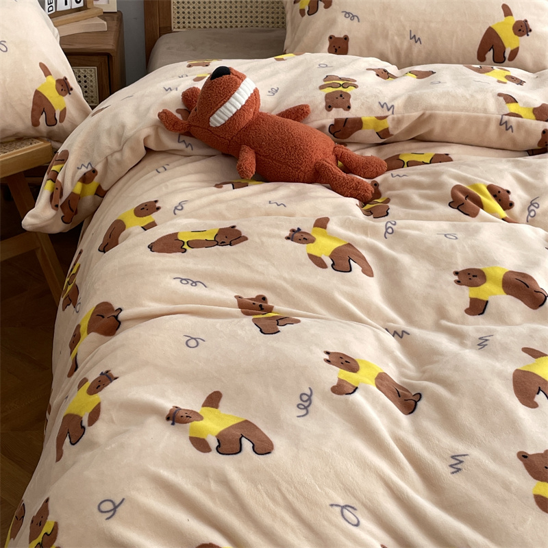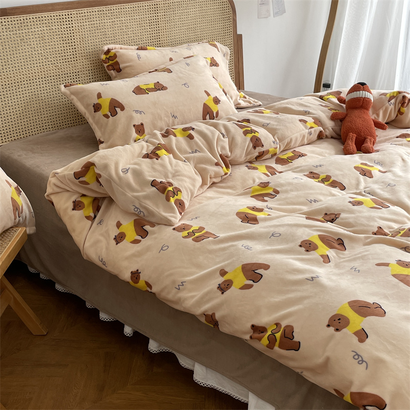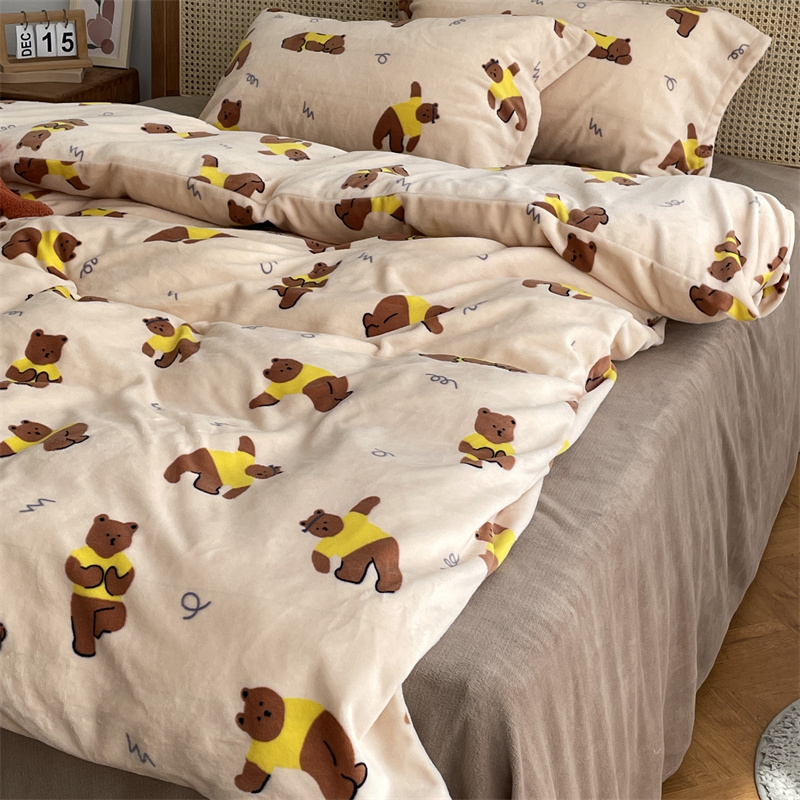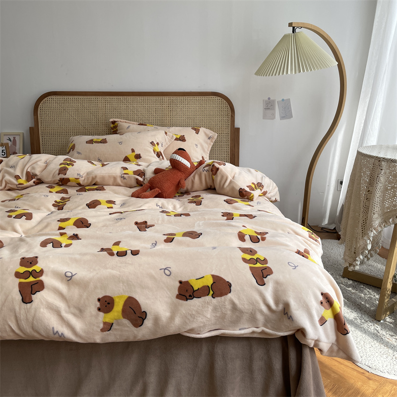 商品名称:源启生活 2022新款230g全消光高克重牛奶绒四件套 瑜伽熊