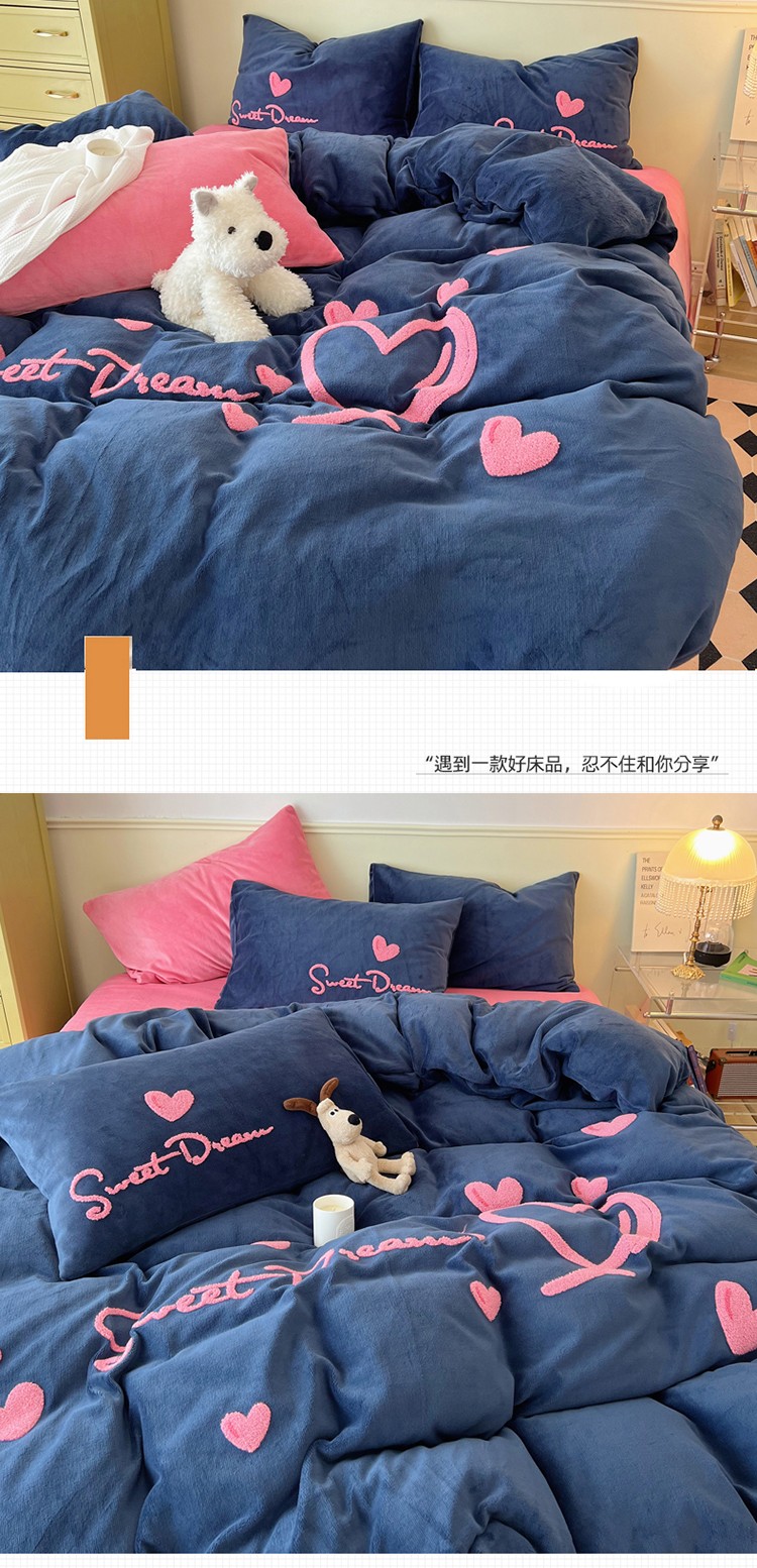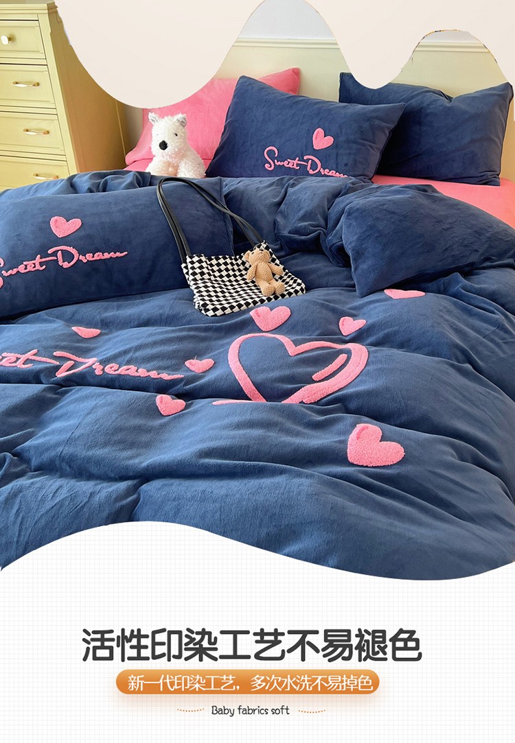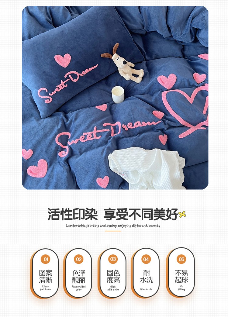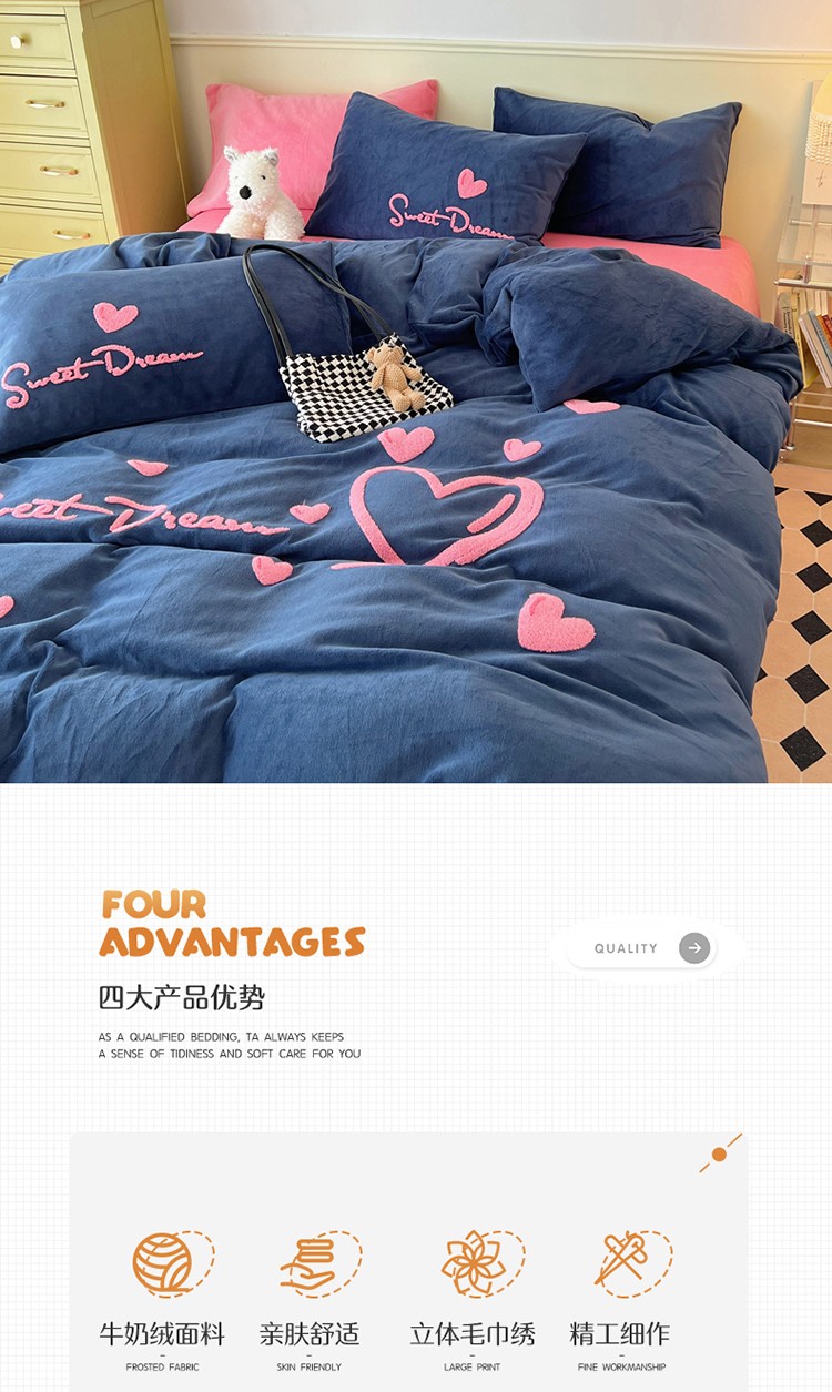 三朵2022新款牛奶绒绣花四件套 心情布鲁蓝