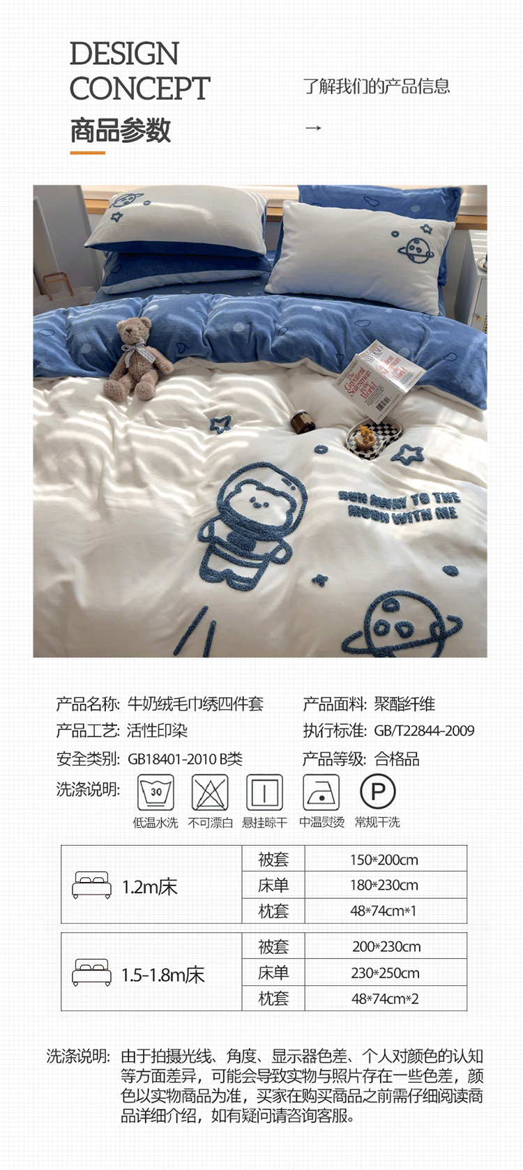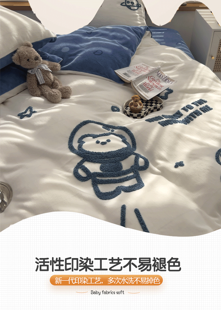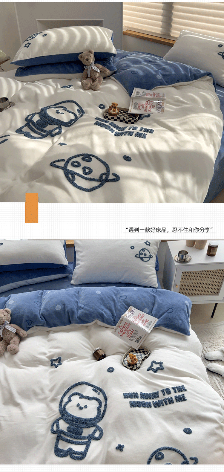 三朵 2022新款牛奶绒绣花四件套-场景二 宇航员