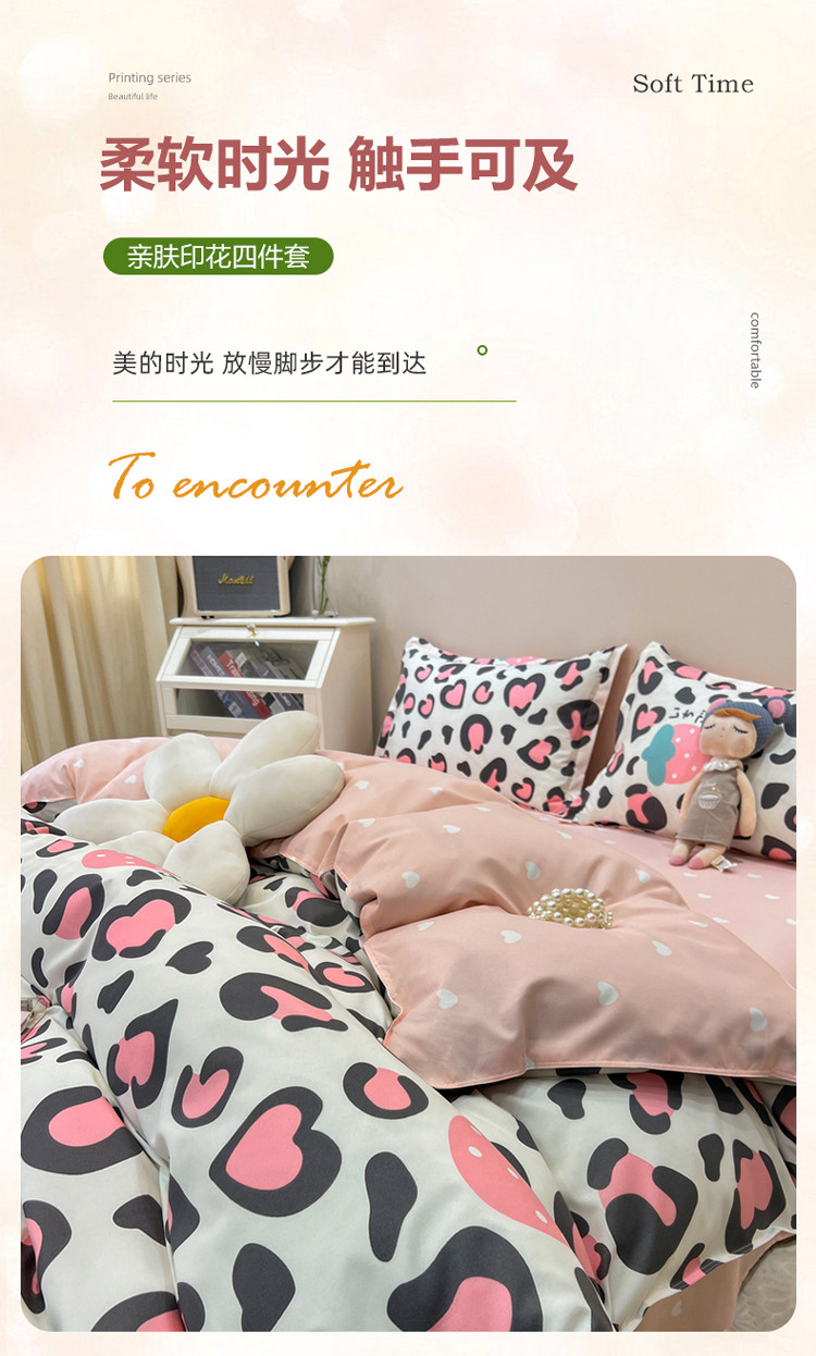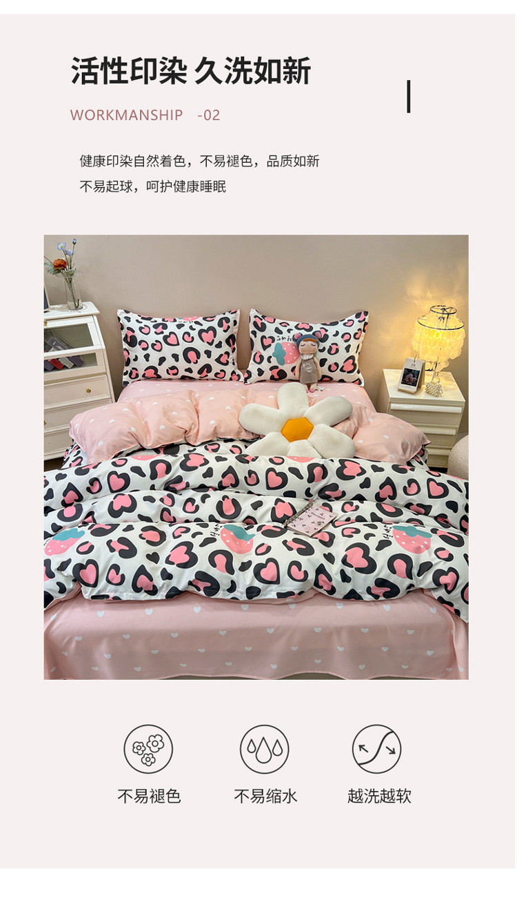 宏源 2022新款芦荟棉亲肤印花四件套10月新花型 草莓豹纹
