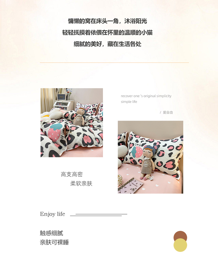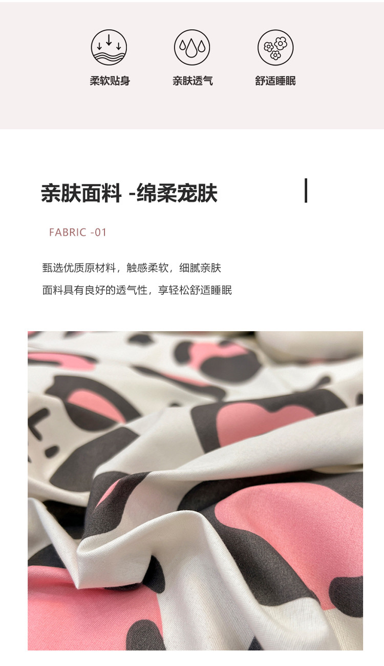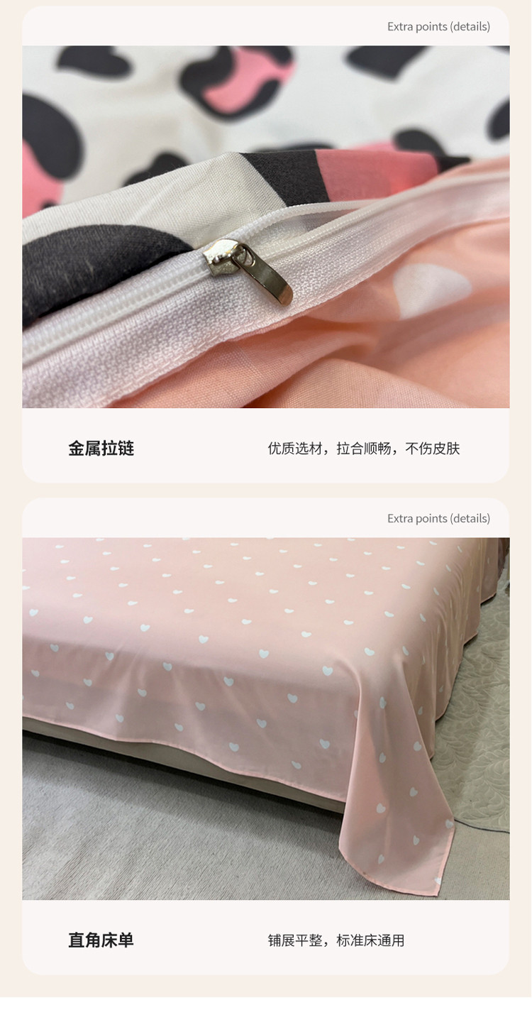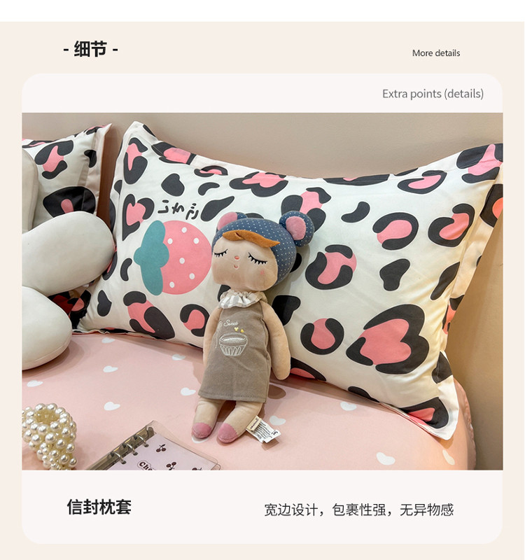 商品名称:宏源 2022新款芦荟棉亲肤印花四件套10月新花型 草莓豹纹