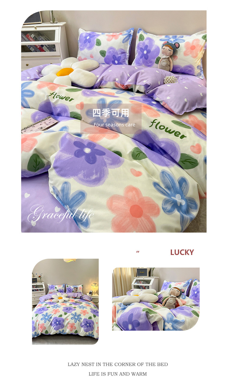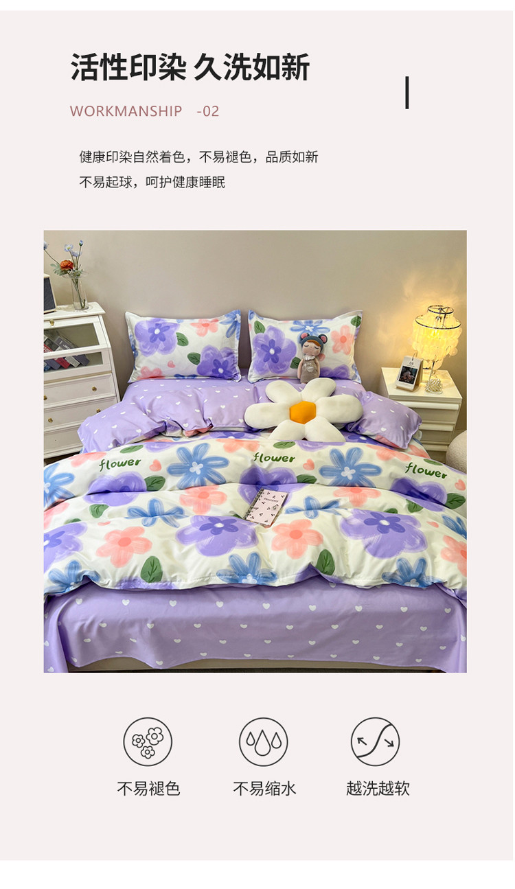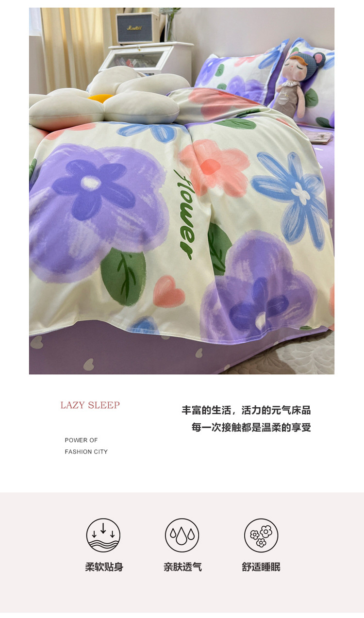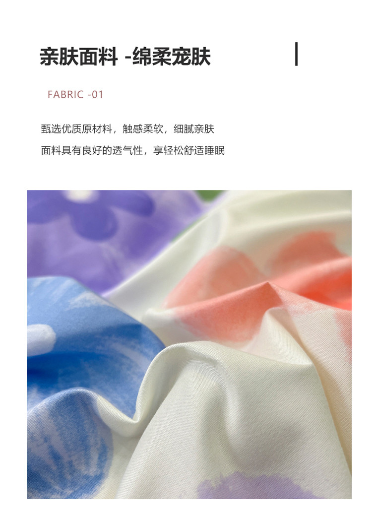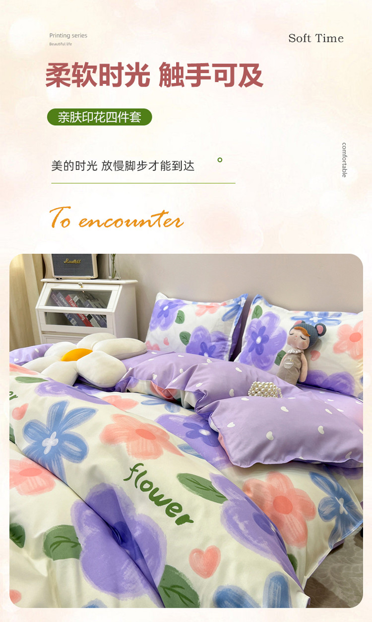 宏源 2022新款芦荟棉亲肤印花四件套10月新花型 炫彩时光