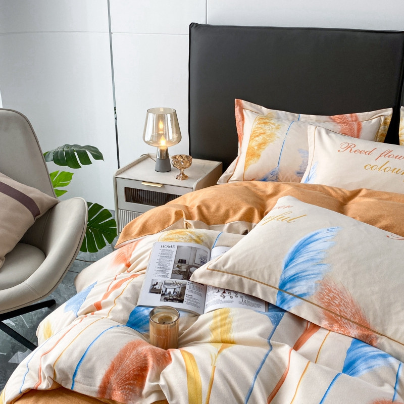 当前位置: 91家纺网 > 商品网购 > 床品套件 > 四件套 > 普通磨毛四件套 > 棉生活 2022新款铂金全棉磨毛系列AB版设计)幸运草 桔