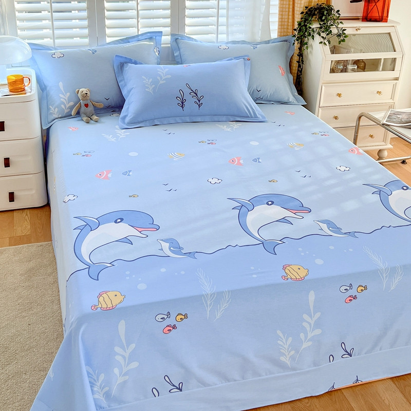 (总)金鑫汇家纺 2026新款全棉印花小清新单品床单系列-可露丽,海盐可露丽,浅咖可露丽,浅绿可露丽,月下花影-桔,月下花影-蓝,月下花影-绿
