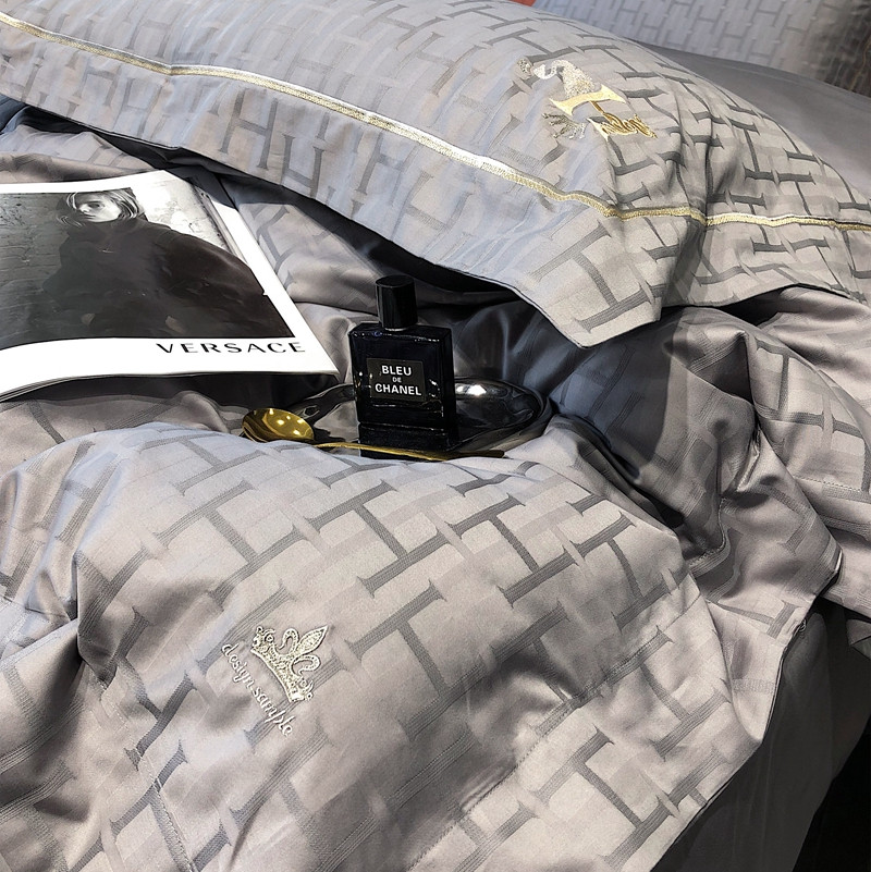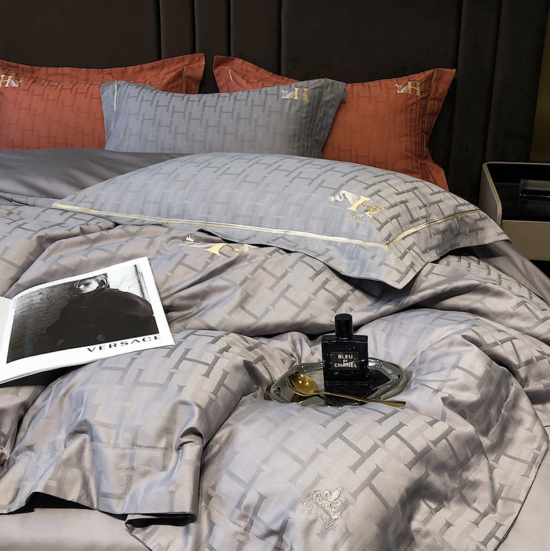 玖玖爱 2023新款120支贡缎提花四件套 约瑟灰