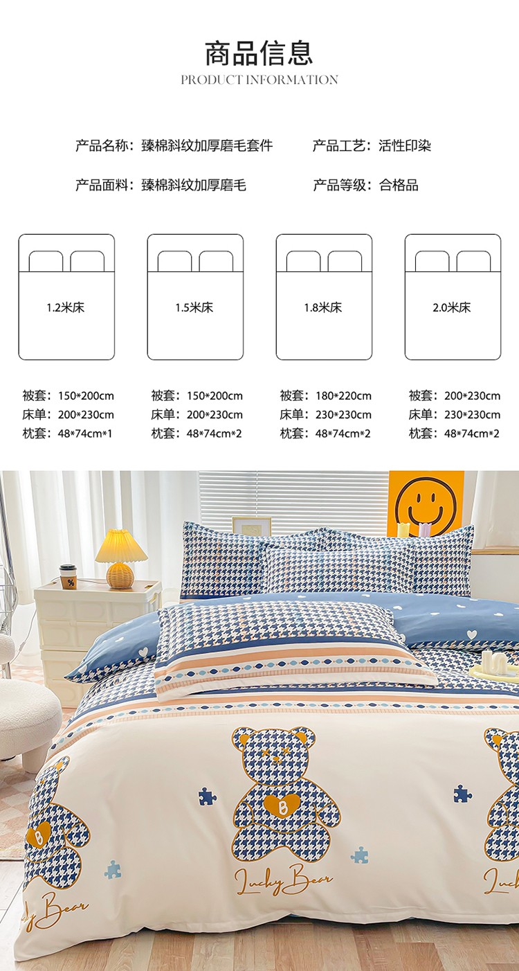 商品名称:棠颂 2023新款高克重加厚植物羊绒斜纹磨毛四件套 大牌熊