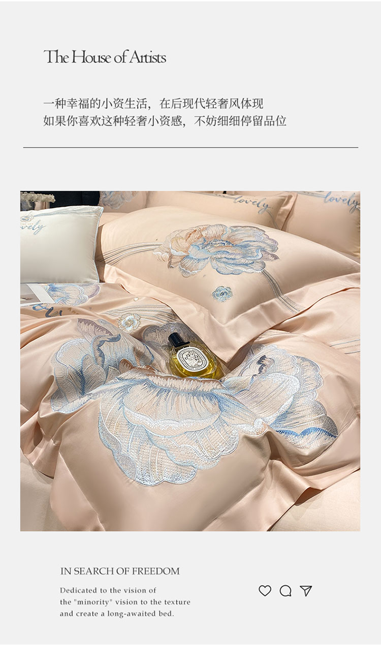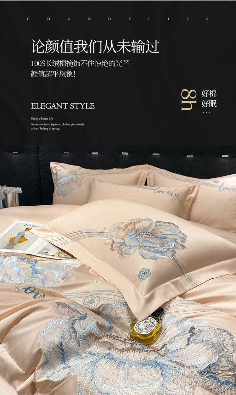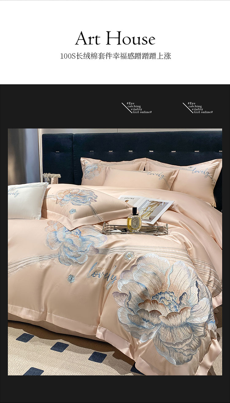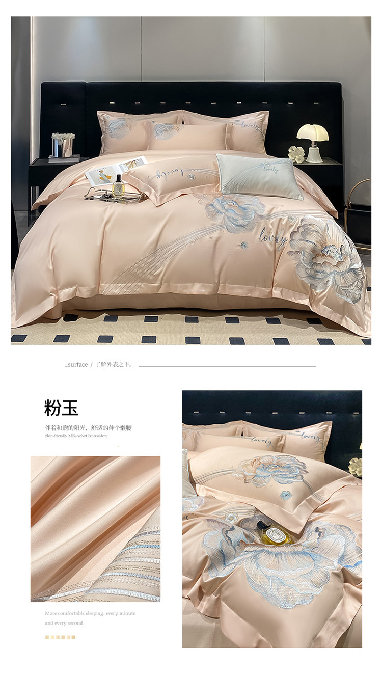 魅都 100阿克苏长绒棉刺绣四件套-素兮娆眉 素兮娆眉-粉玉